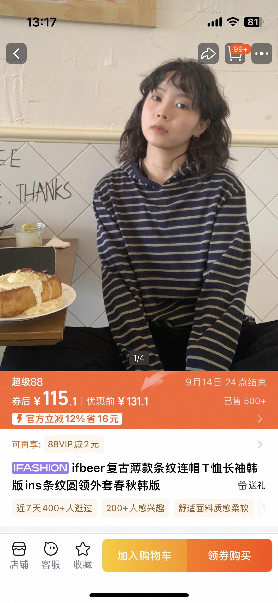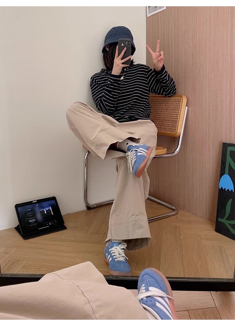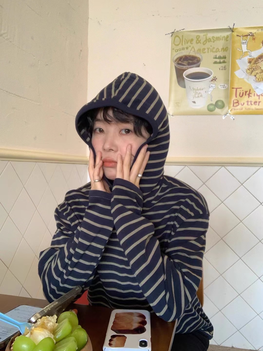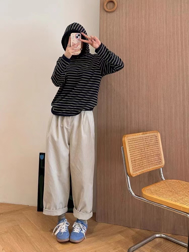 藏青条纹连帽衫,入秋不知穿什么,选它肯定没错,