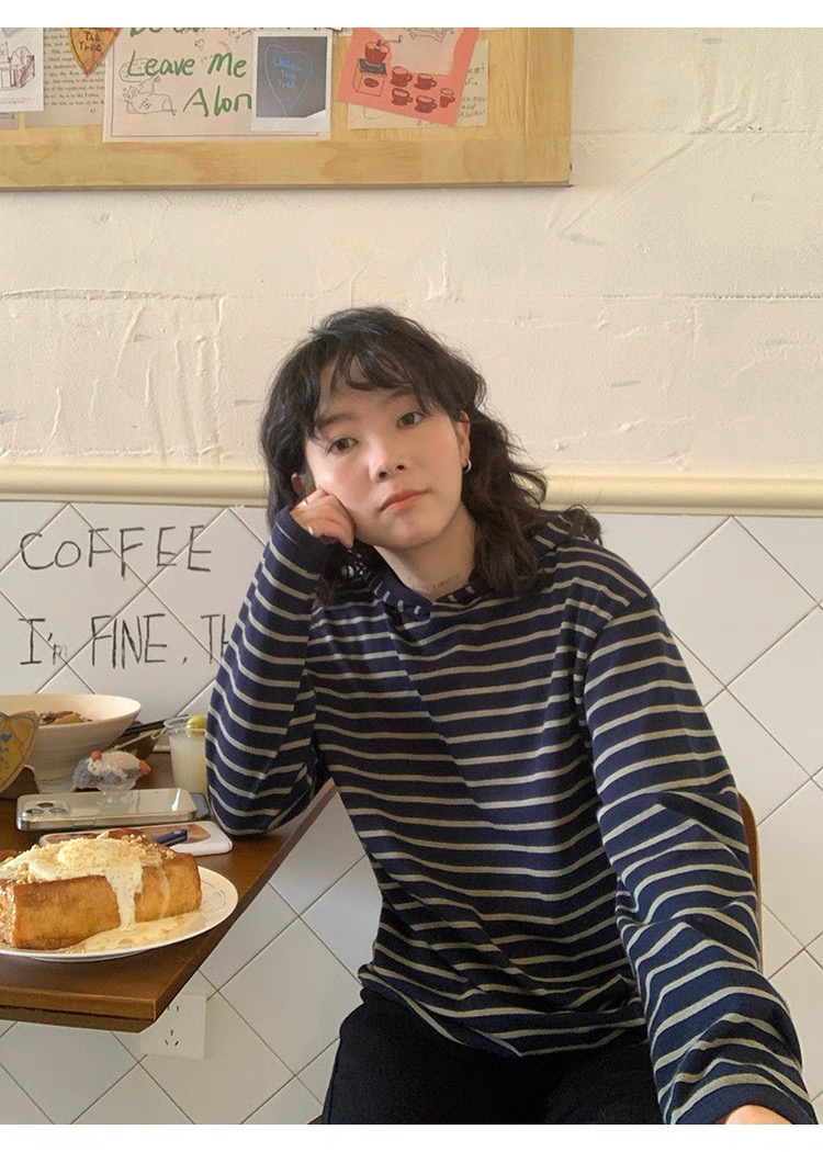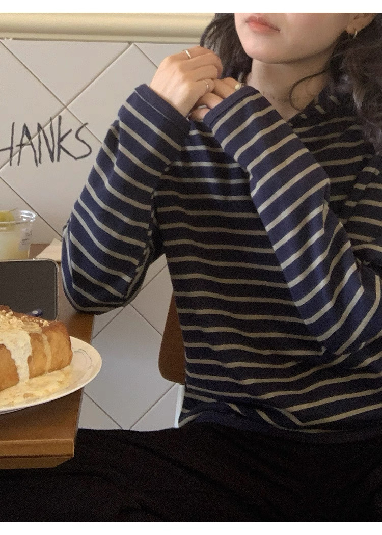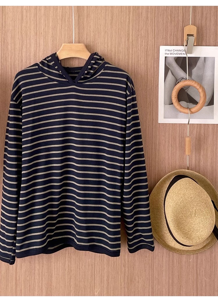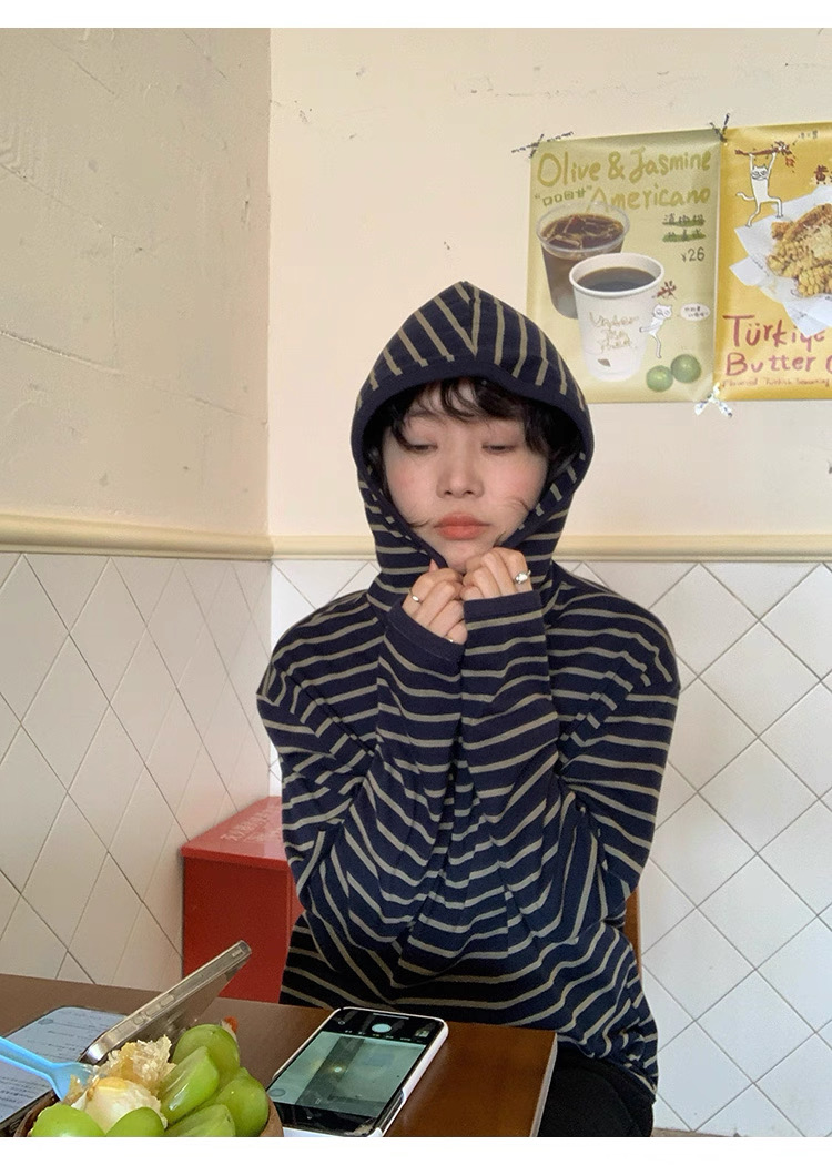 老米优品🎈3-5天!秋日文艺感穿上身《复古条纹连帽卫衣TEE》宽松显瘦,慵懒随性~ T250910A