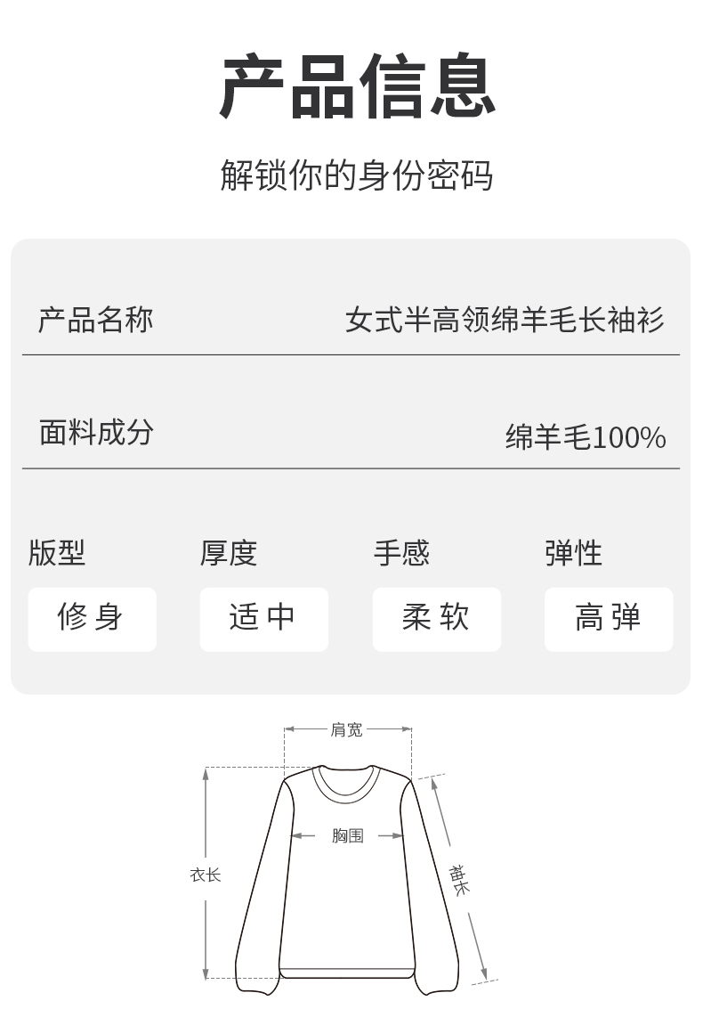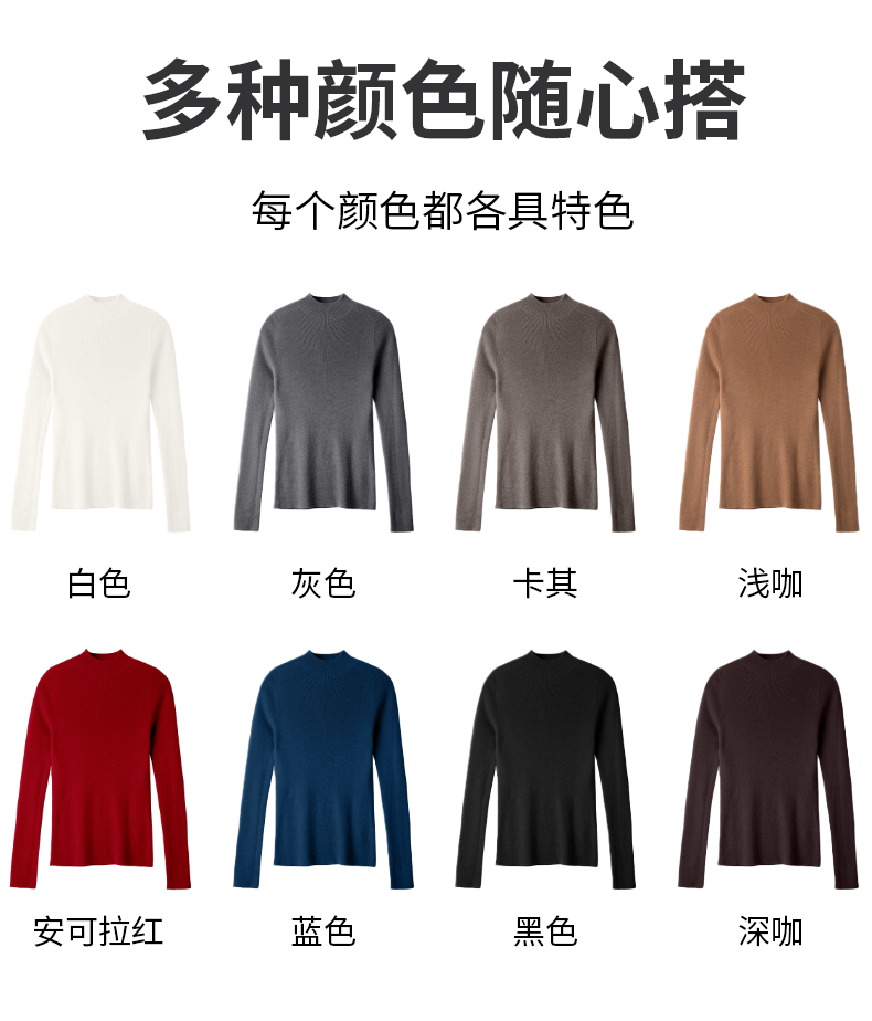 爱帝100%绵羊毛美丽诺羊毛衫高领女士打底衫