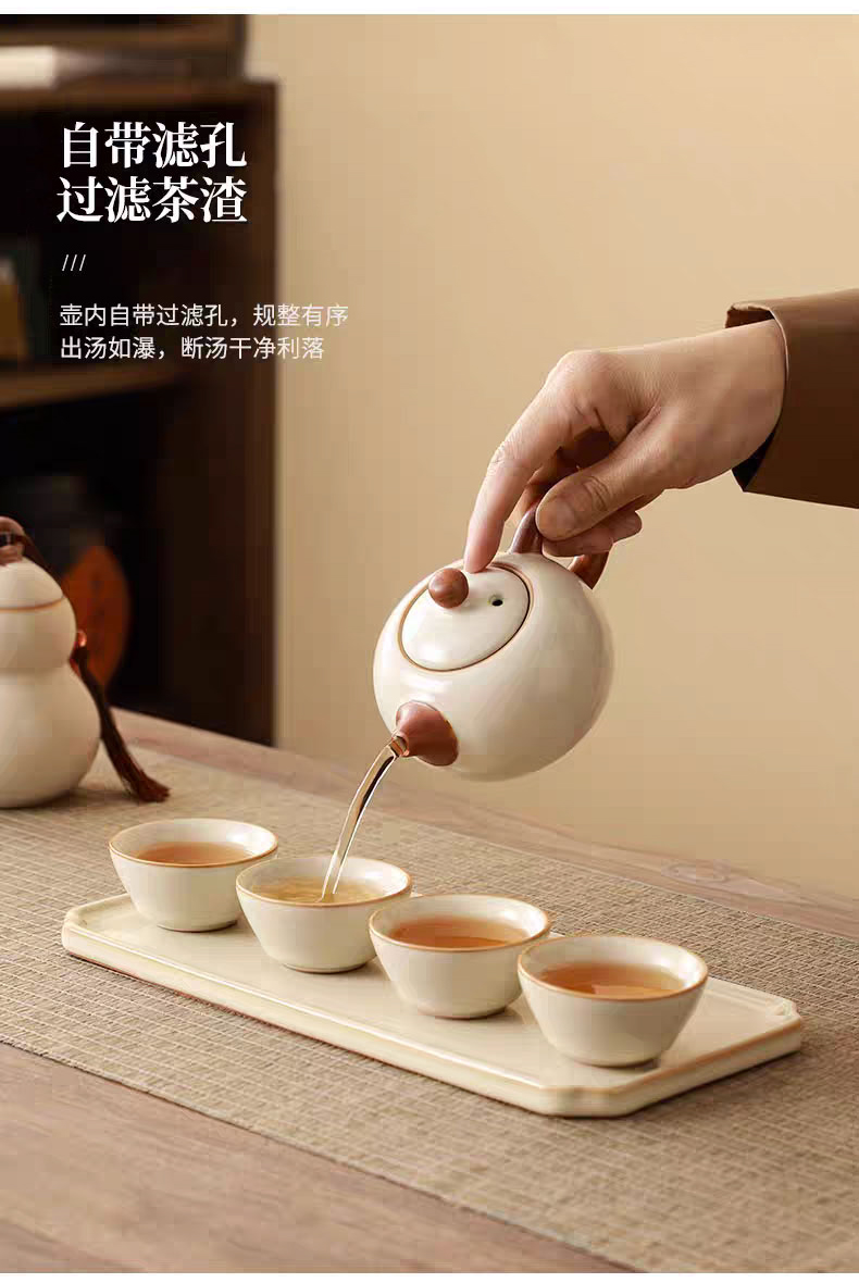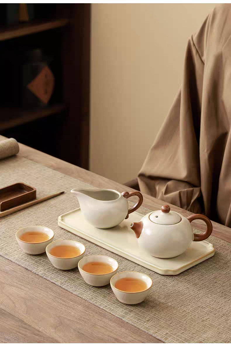 【地铁礼物】汝窑茶具礼盒清雅上新/汝窑茶具套装(公道杯)/礼盒装/一壶一杯四盏