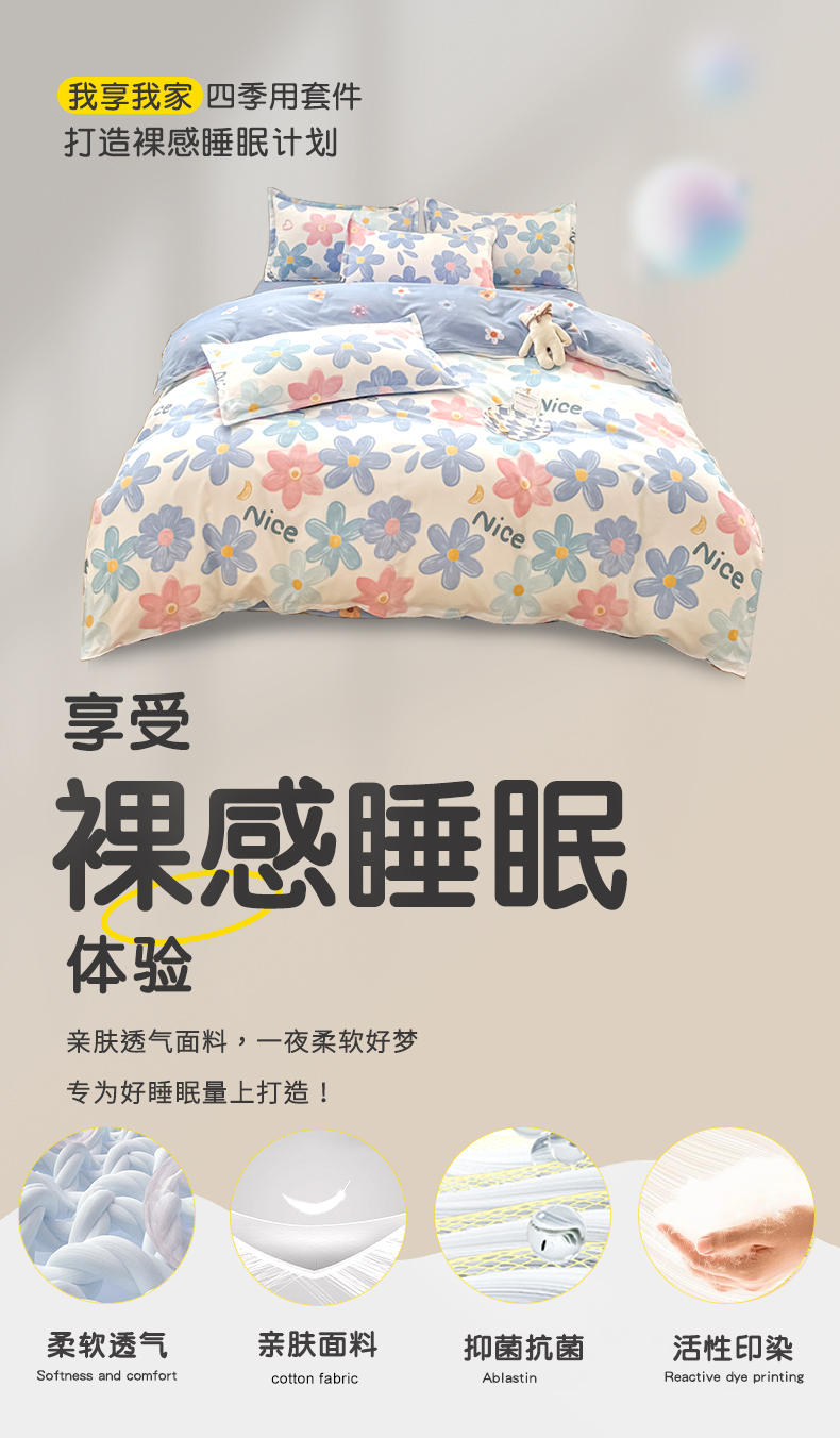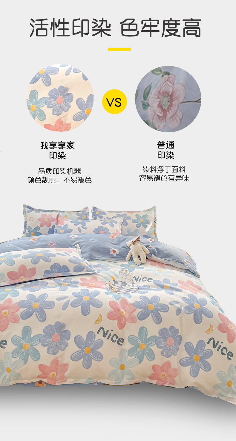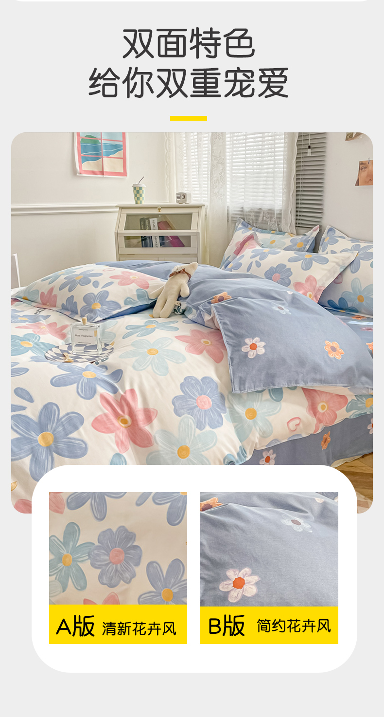 全棉印花AB版清新印花风格纯棉学生宿舍三/四件套床上用品可机洗