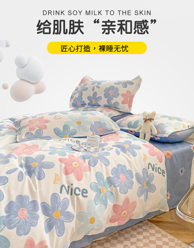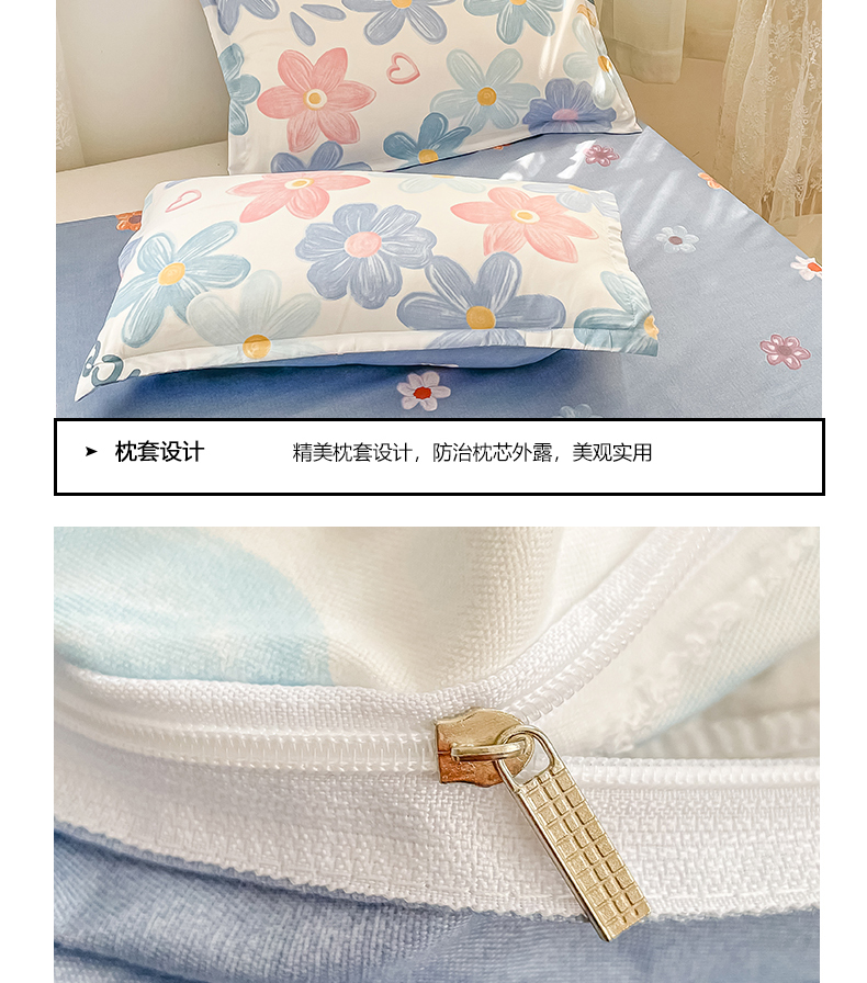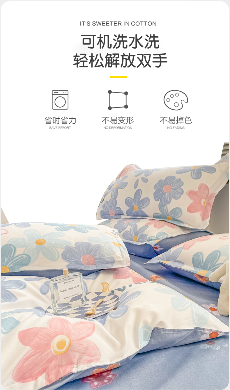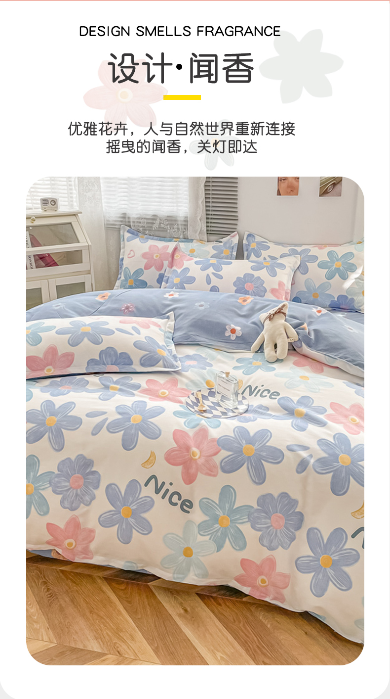 全棉印花AB版清新印花风格纯棉学生宿舍三/四件套床上用品可机洗