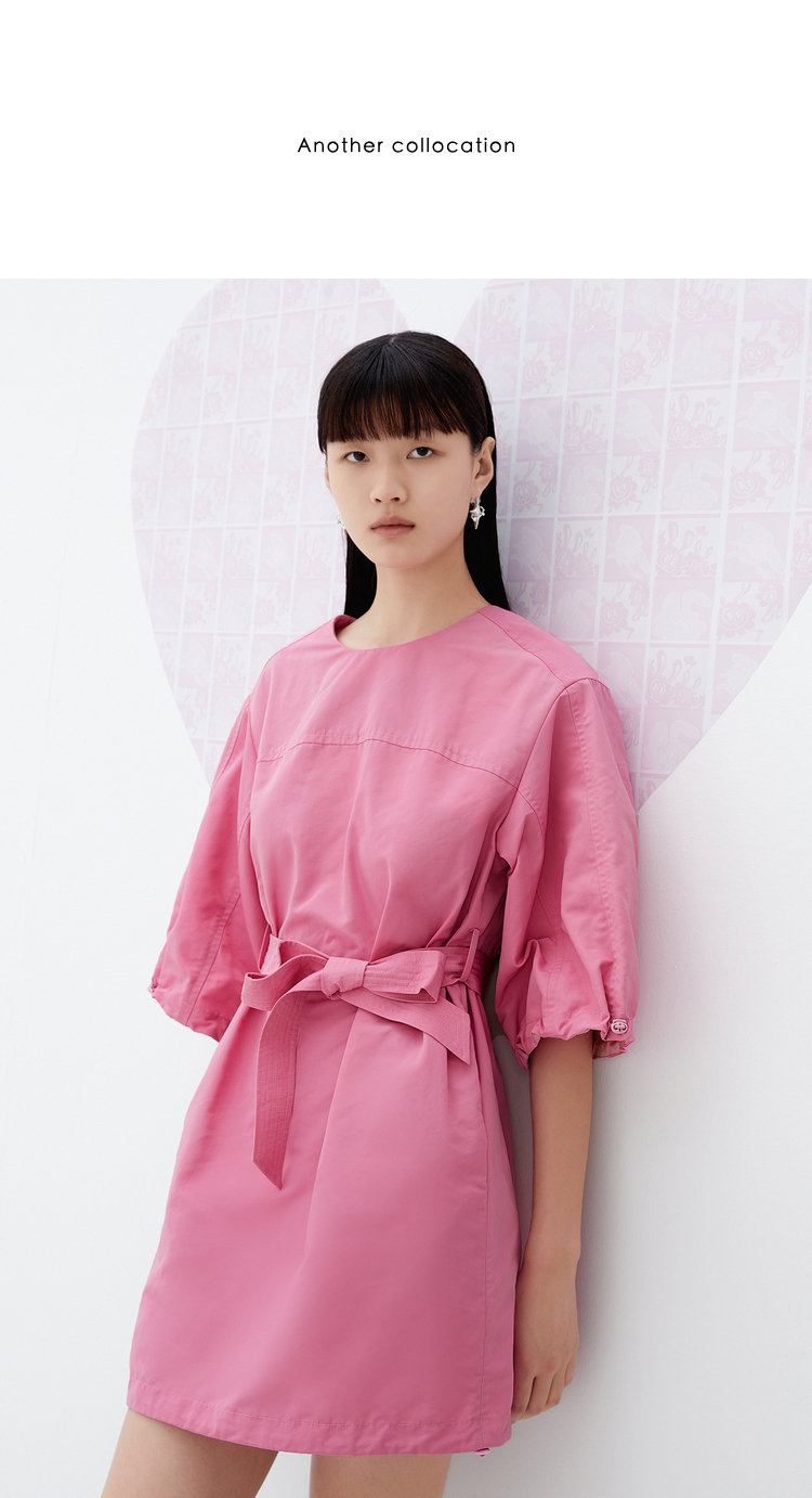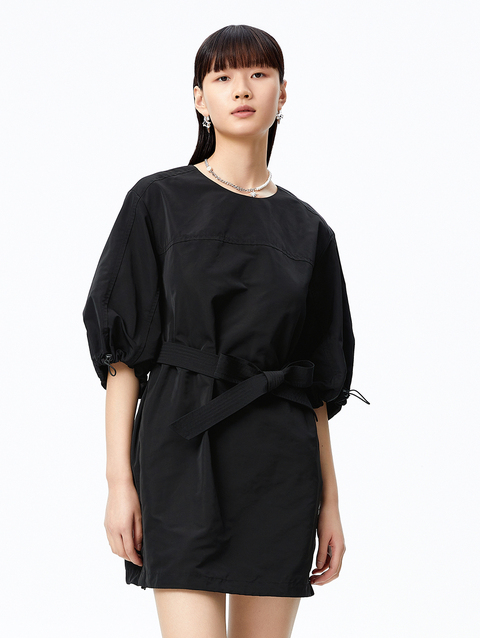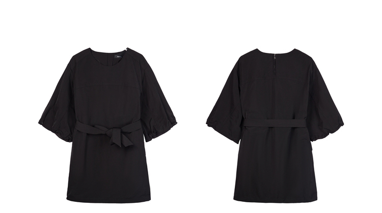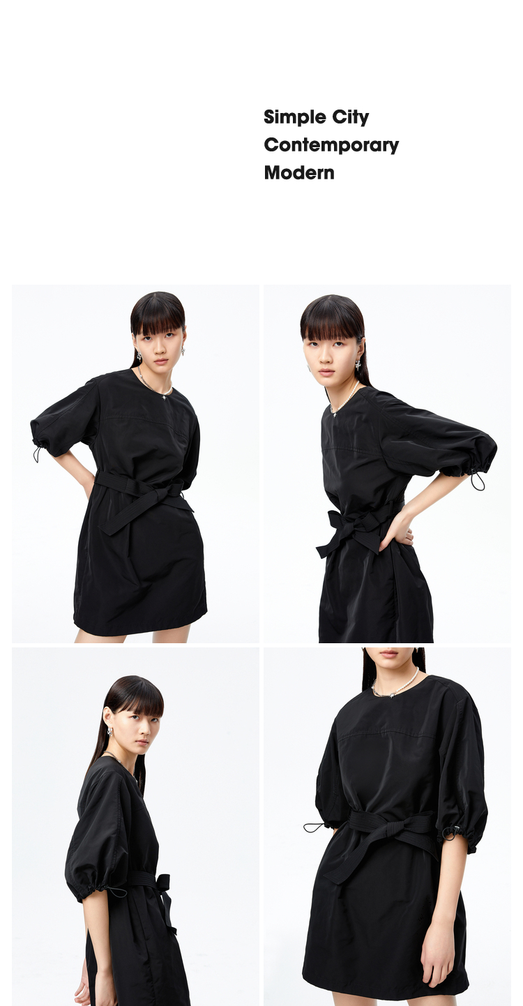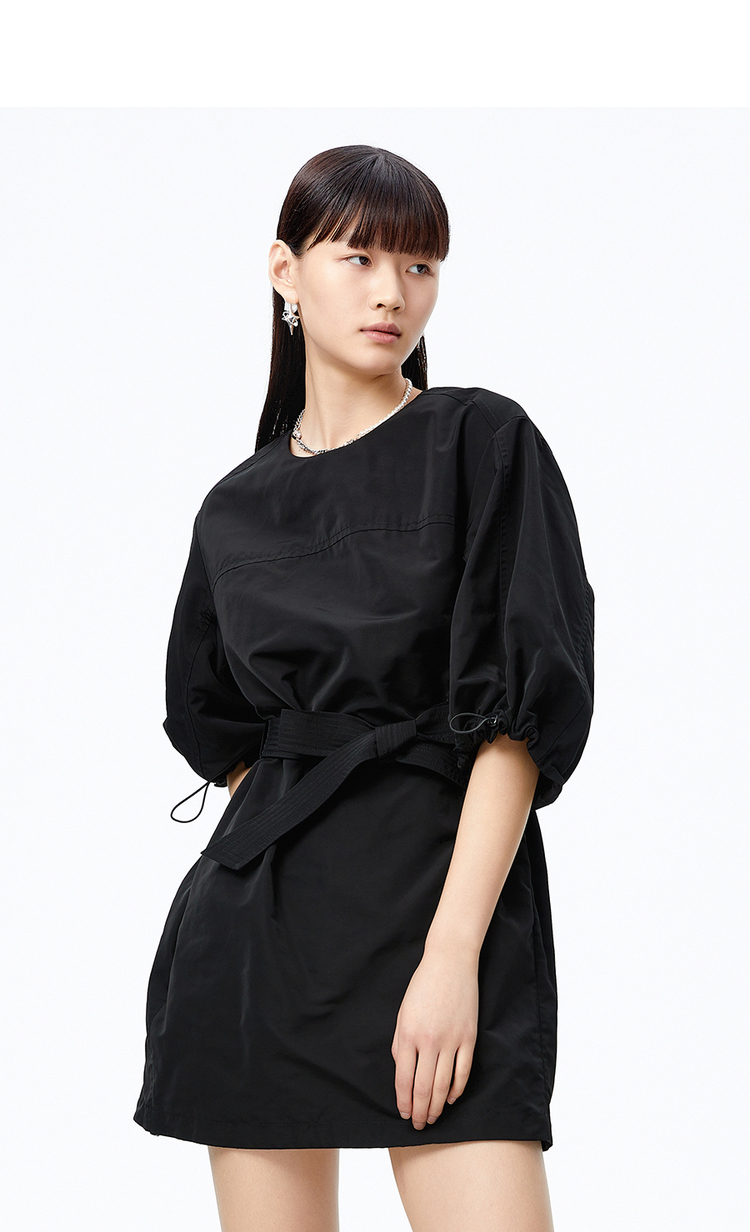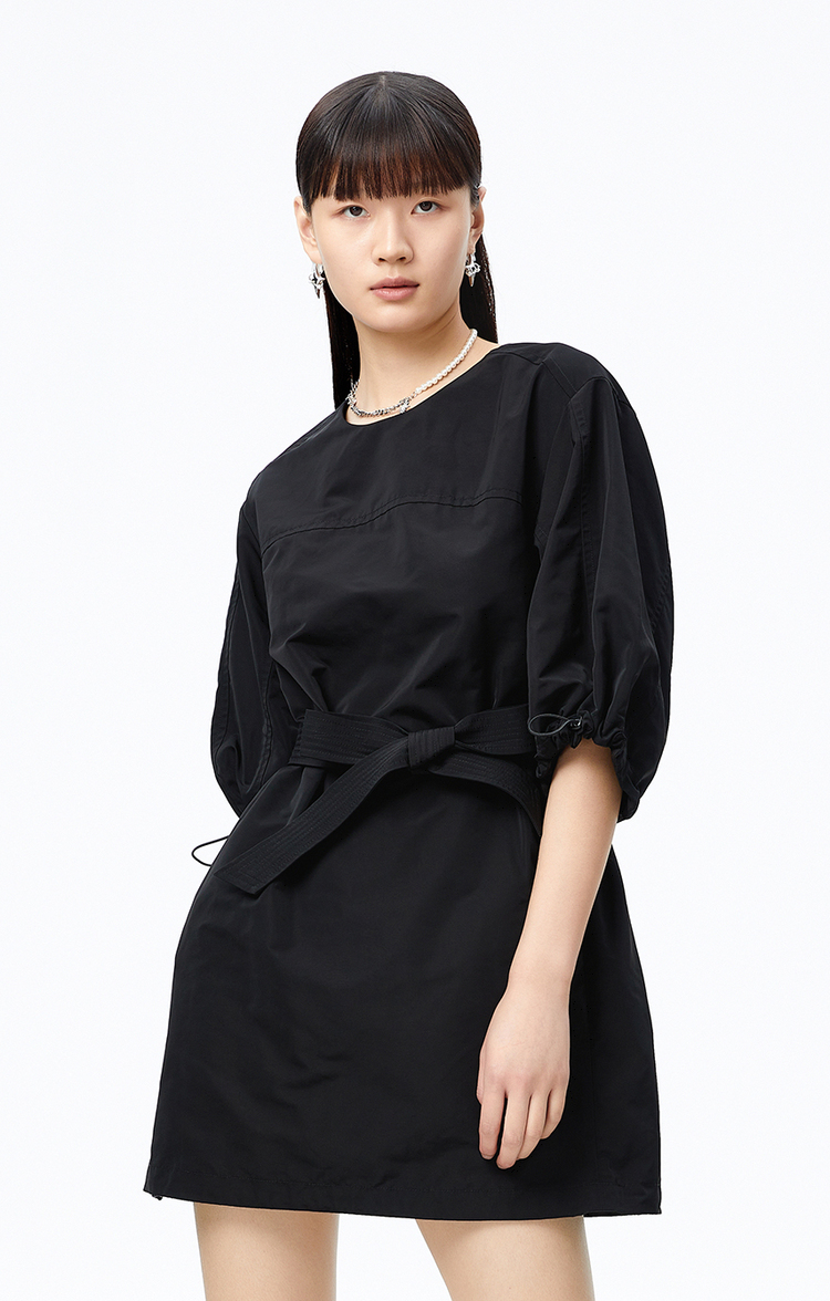 NEELLY纳俪2022秋季新品圆领连衣裙女休闲收腰系带七分袖A字裙N22081Y01065