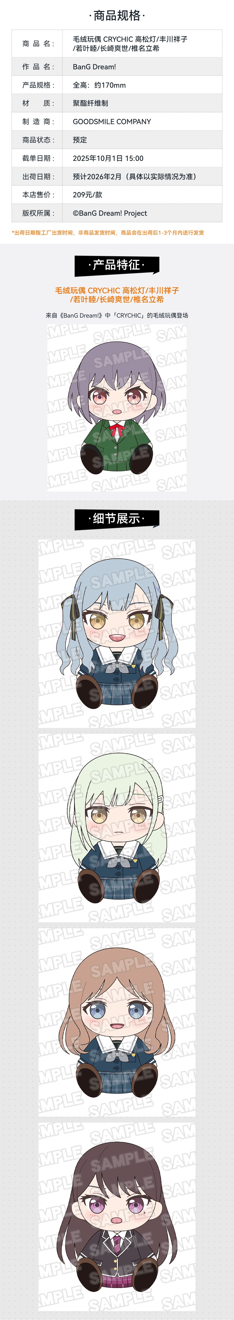 【GSC现货】毛绒玩偶 CRYCHIC 高松灯/丰川祥子/若叶睦/长崎爽世/椎名立希 BanG Dream!