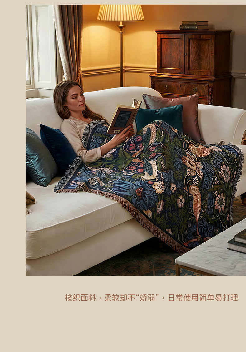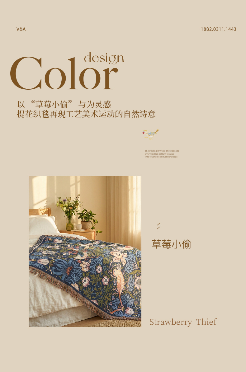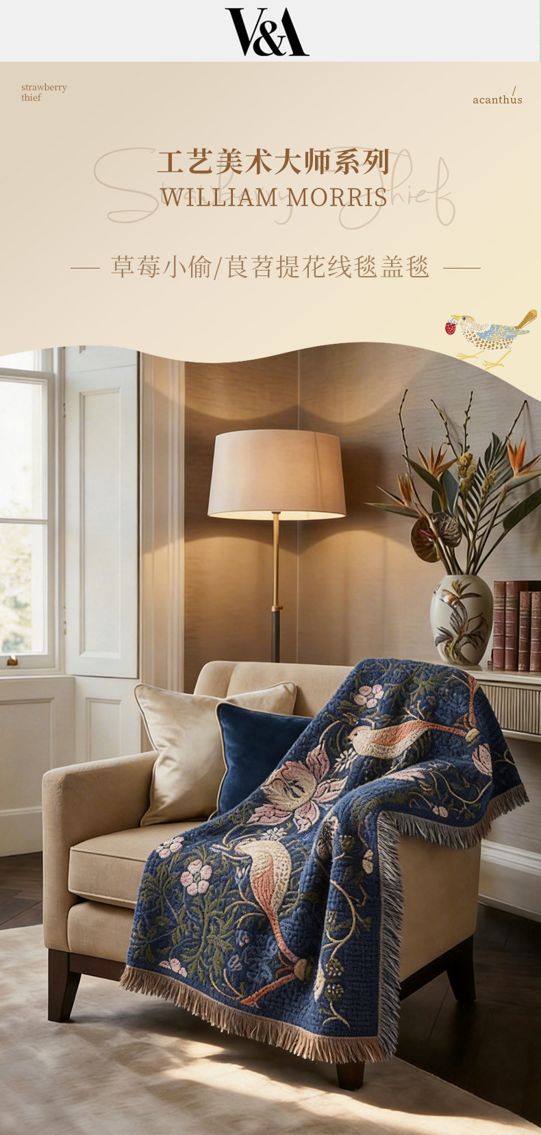 V&A博物馆 工艺美术大师系列草莓小偷提花线毯盖毯 茛苕提花线毯盖毯