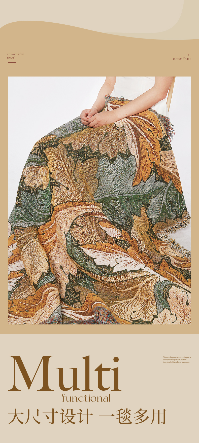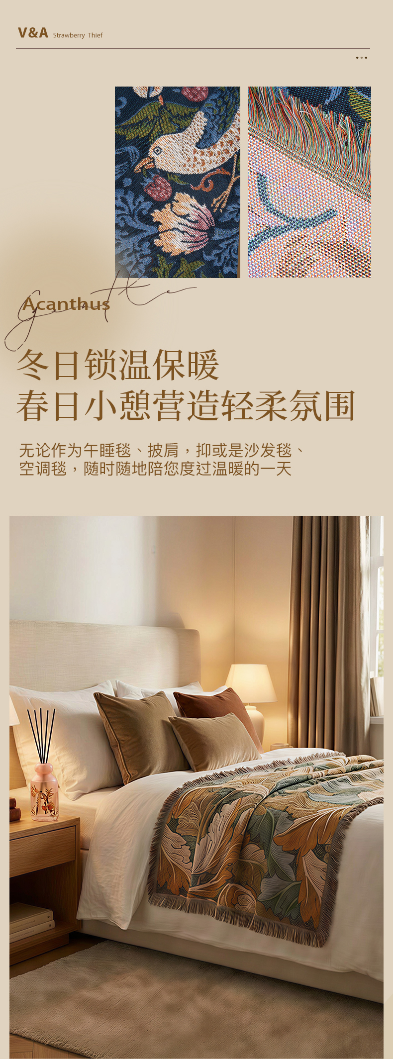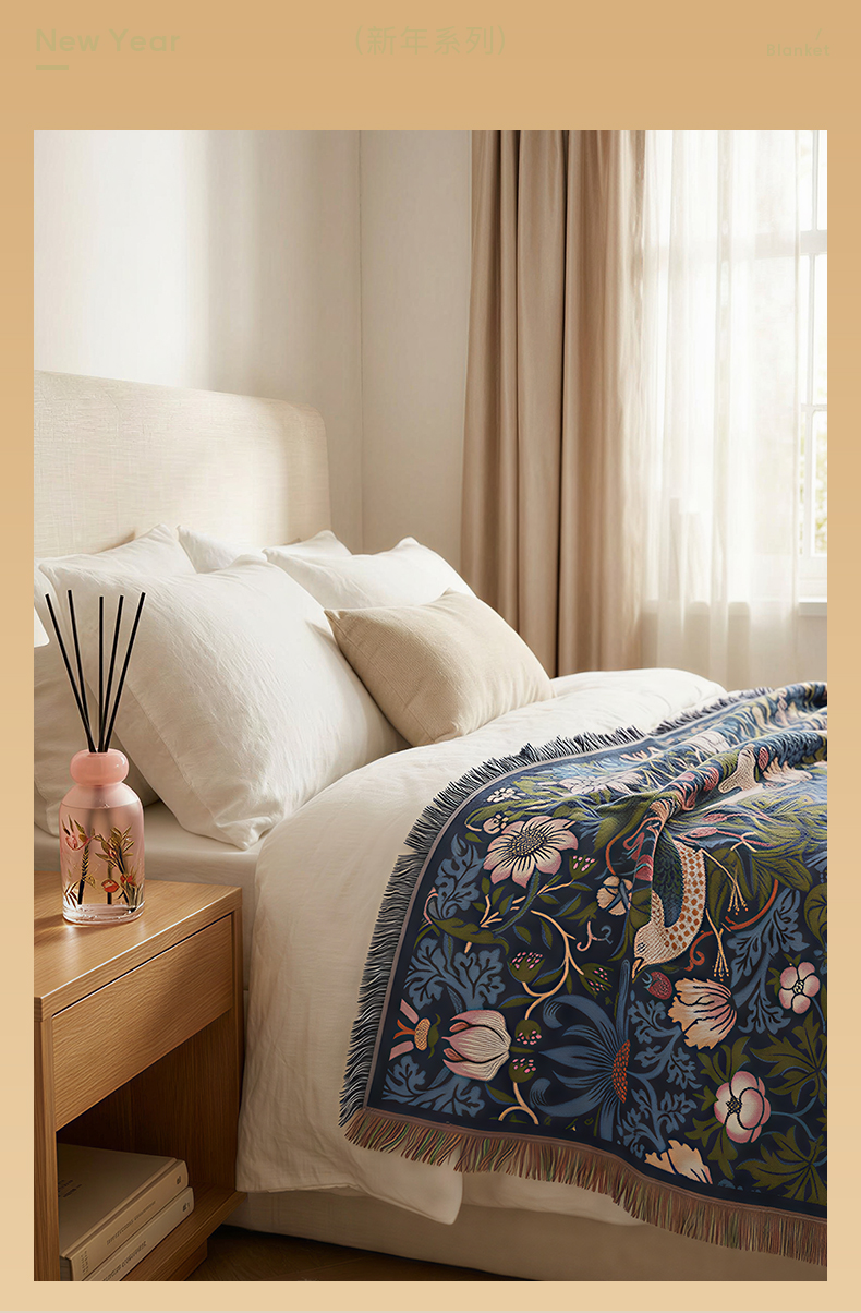 V&A博物馆 工艺美术大师系列草莓小偷提花线毯盖毯 茛苕提花线毯盖毯