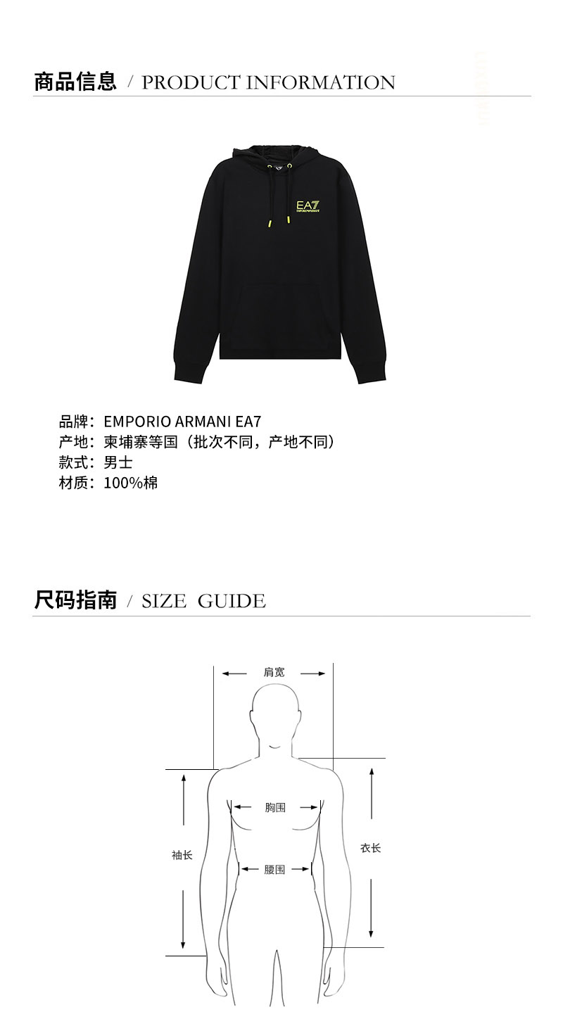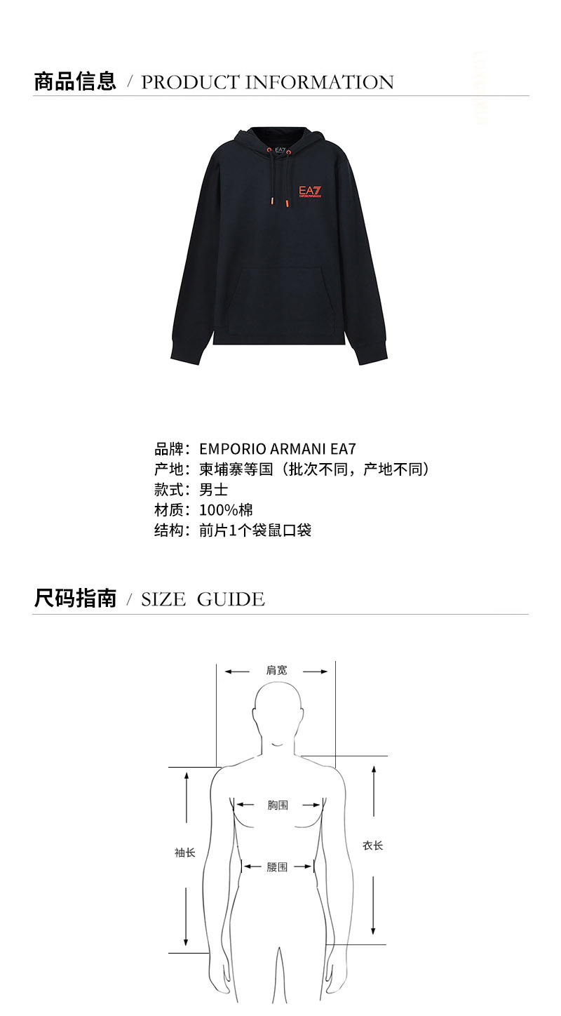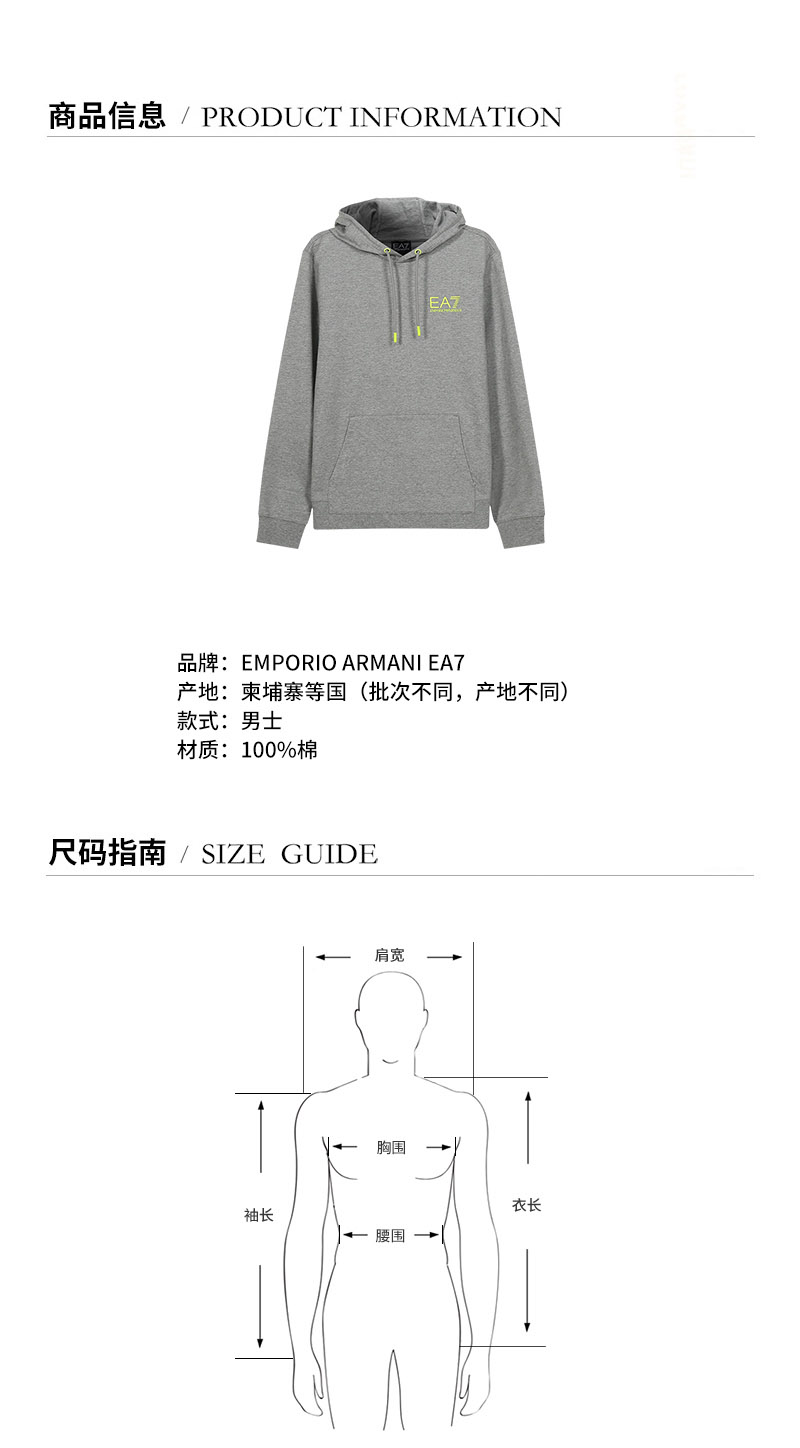 EA7/EA7阿玛尼 男卫衣 男士棉质连帽长袖卫衣运动衫 6KPM47 PJ05Z