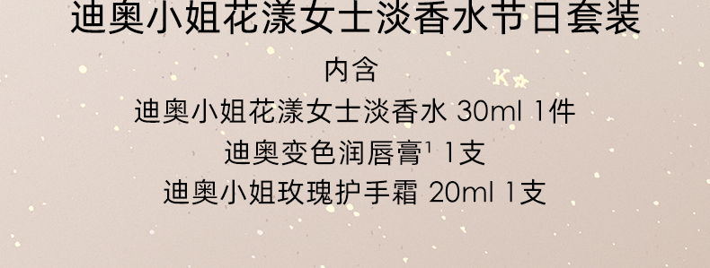 【情人节礼物】Dior迪奥小姐花漾淡香水节日套装润唇膏护手霜 花漾女士淡香水30ml+魅惑润唇膏0013.2g+润手霜20ml