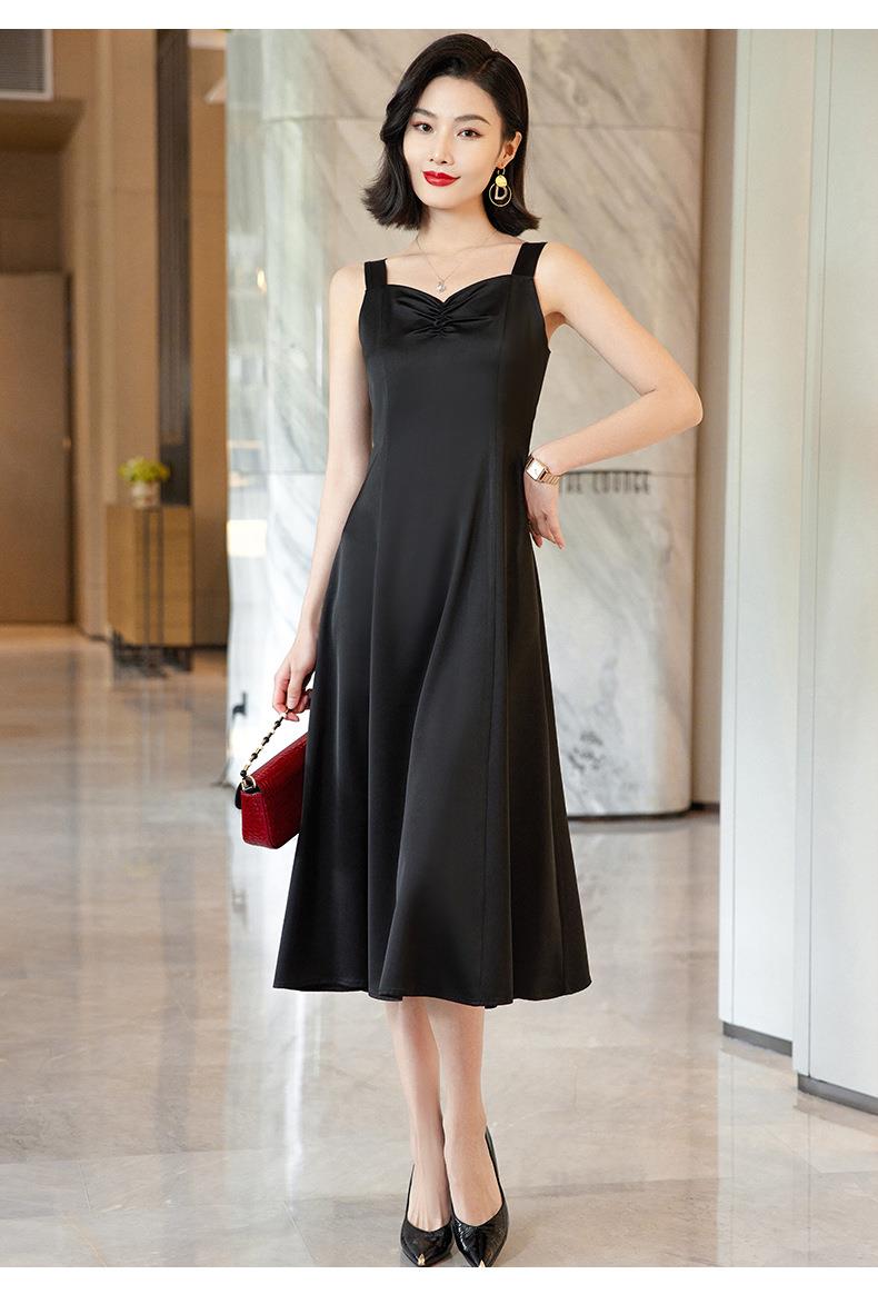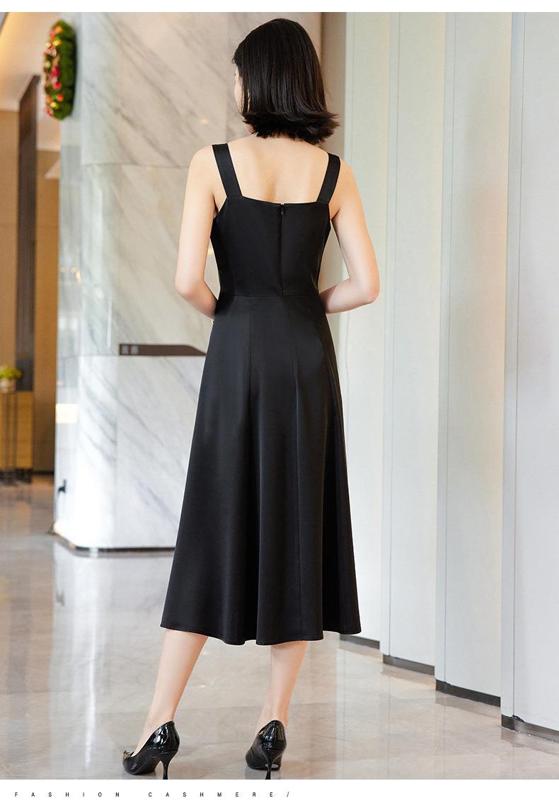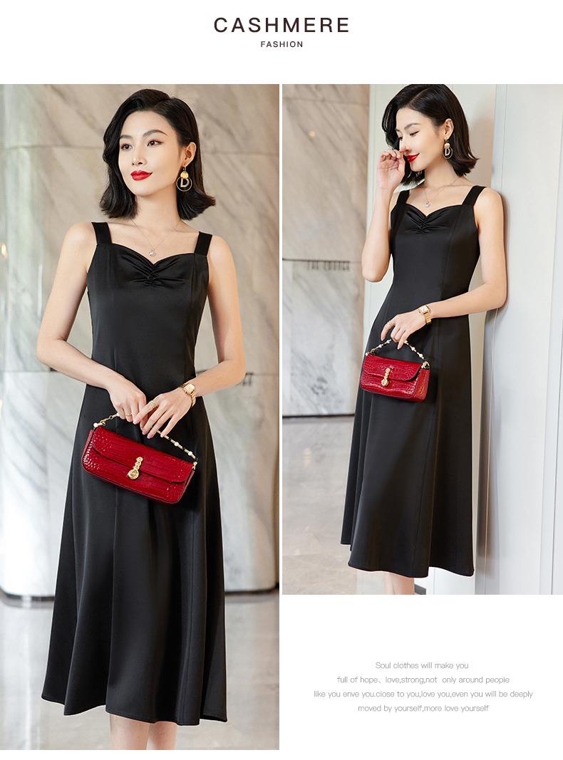 娜璐多 法式高级感连衣裙2023夏季时尚中长裙子宽肩带背心裙洋气显瘦百搭