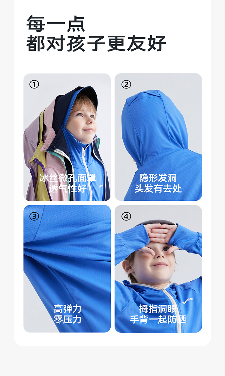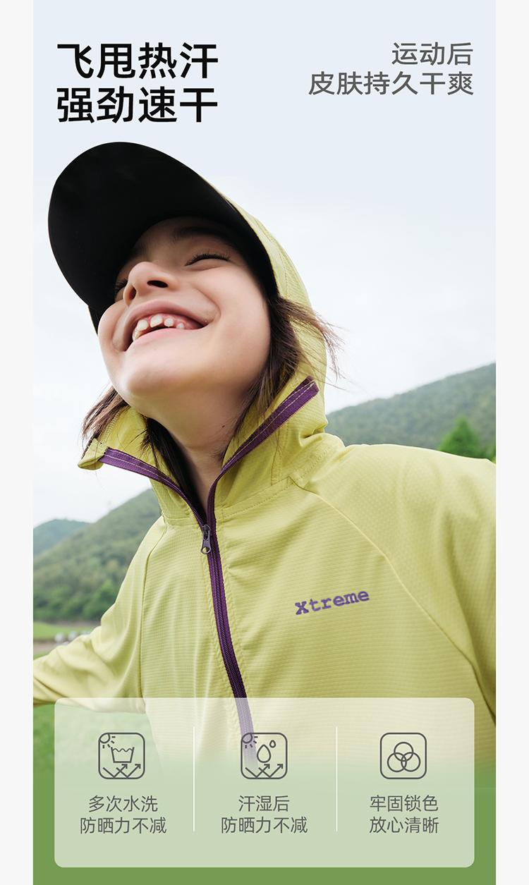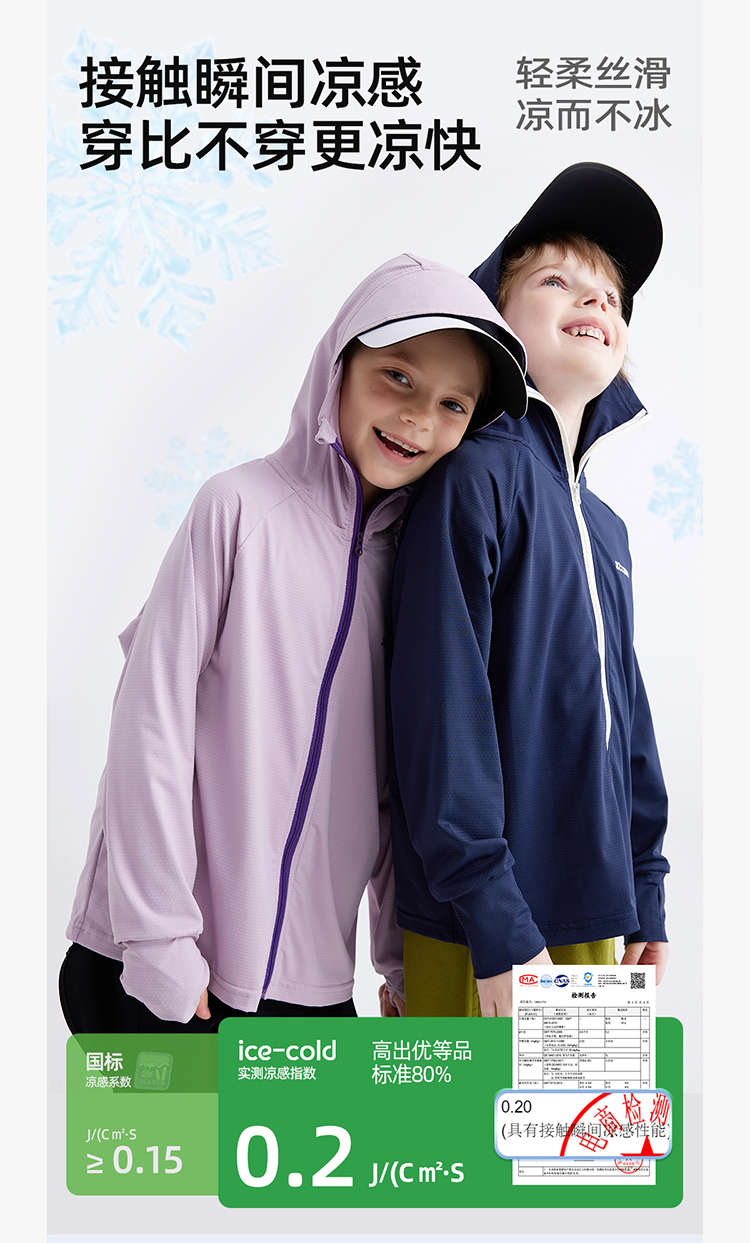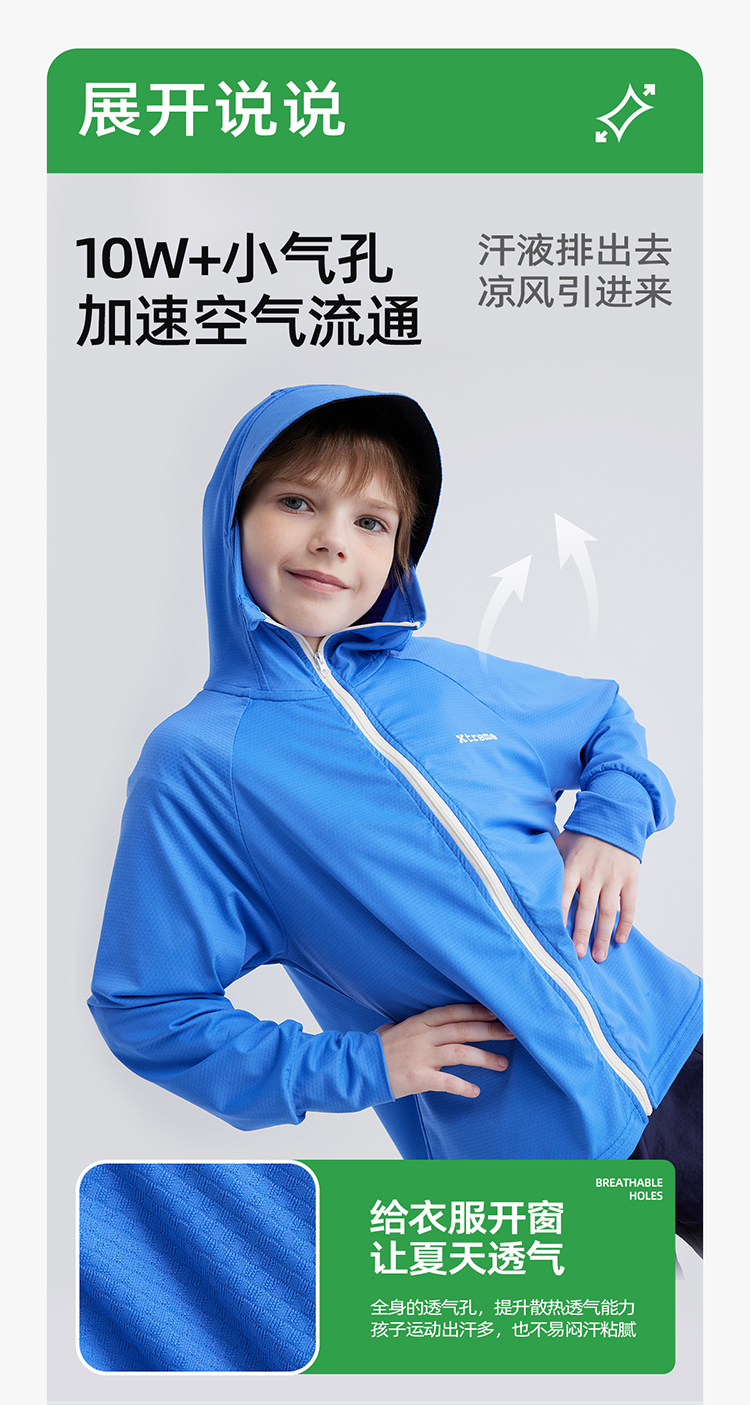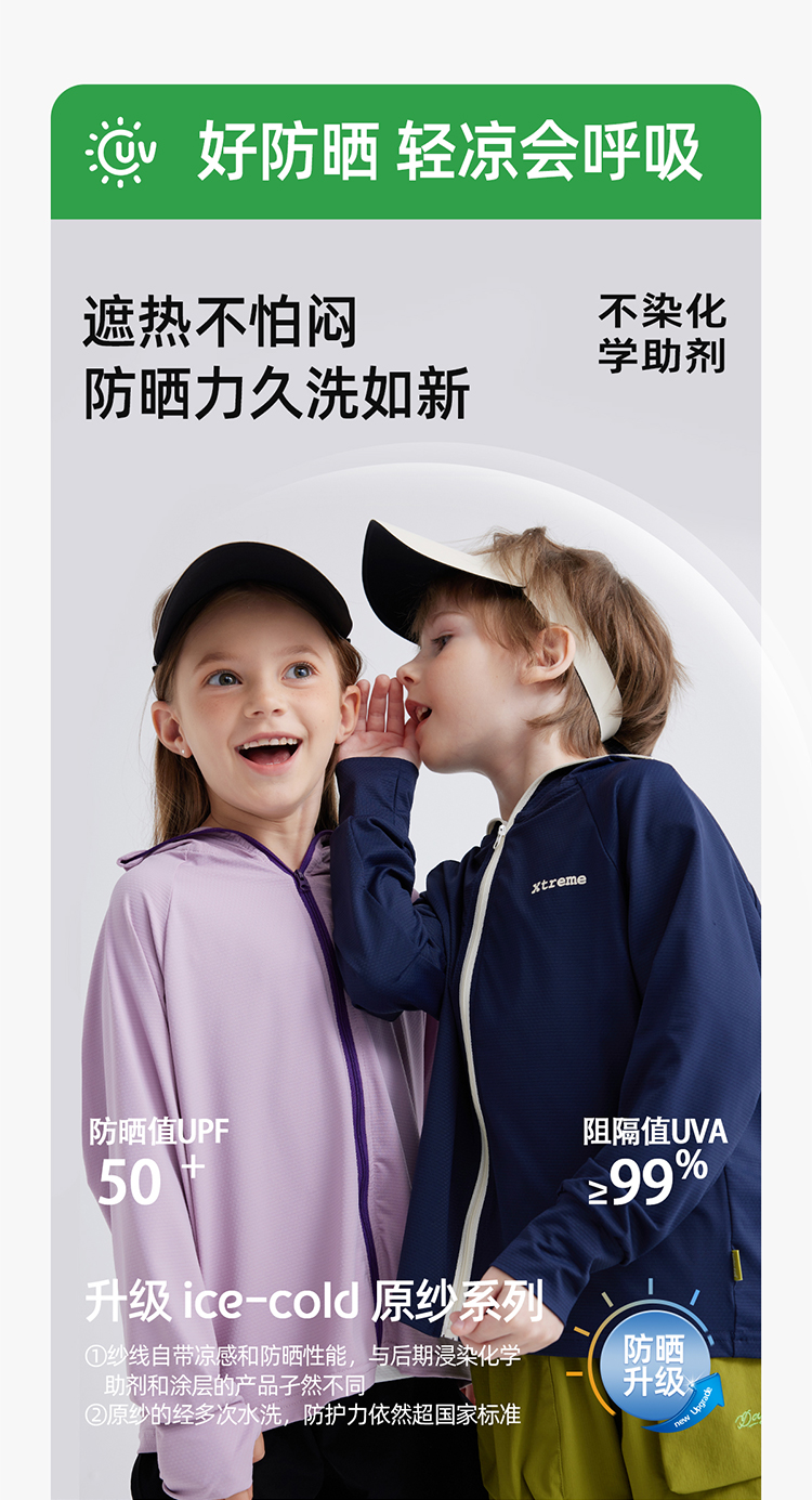 【凉感防晒冰丝面料 UPF50+】儿童撞色拉链防晒外套 PXW2408