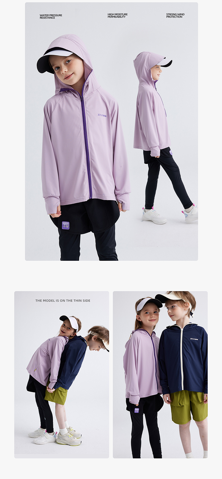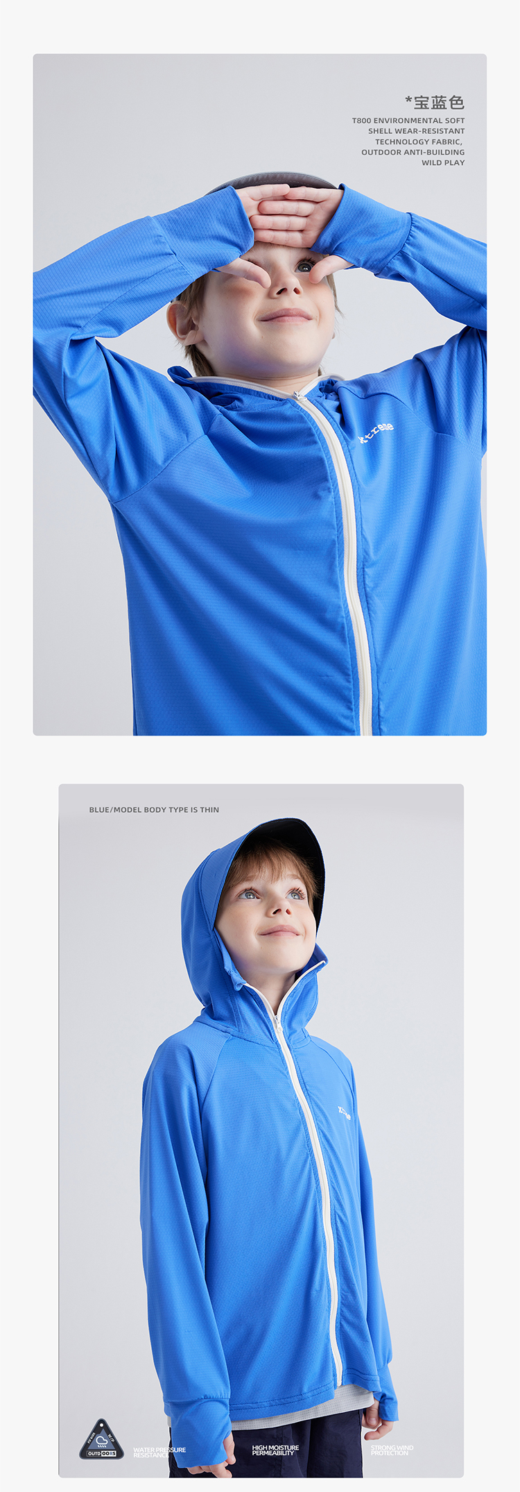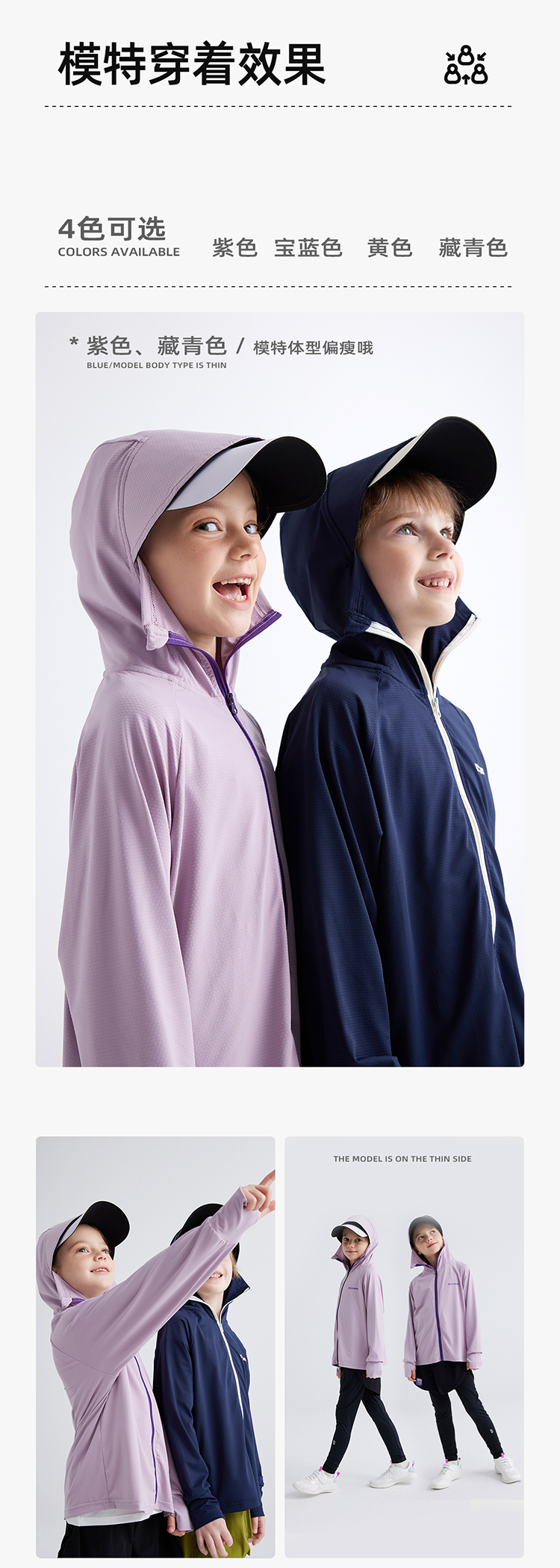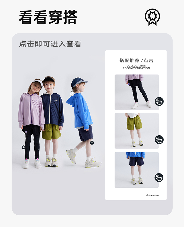 【凉感防晒冰丝面料 UPF50+】儿童撞色拉链防晒外套 PXW2408