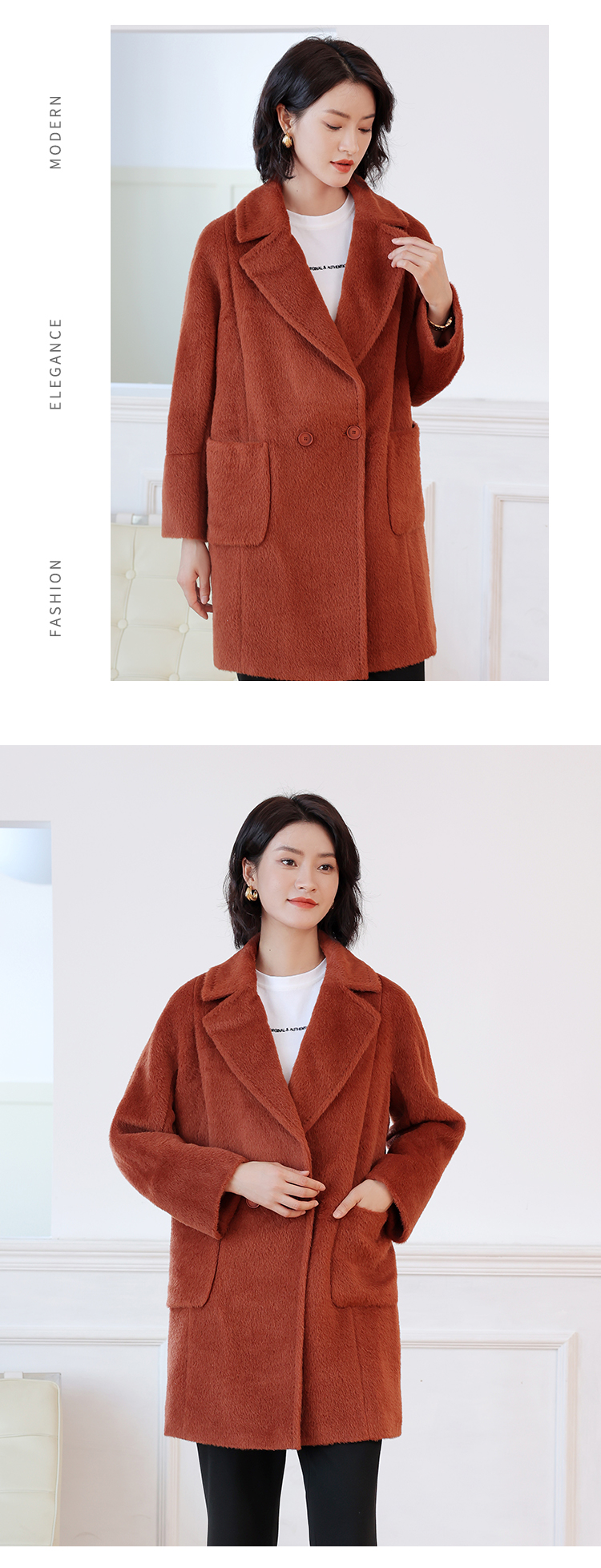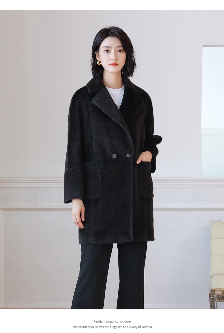 佐尔美秋冬新款 气质经典羊驼毛毛呢大衣女E24ZZ24