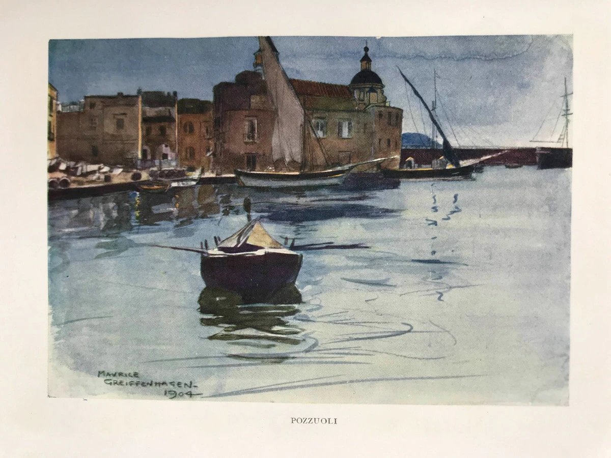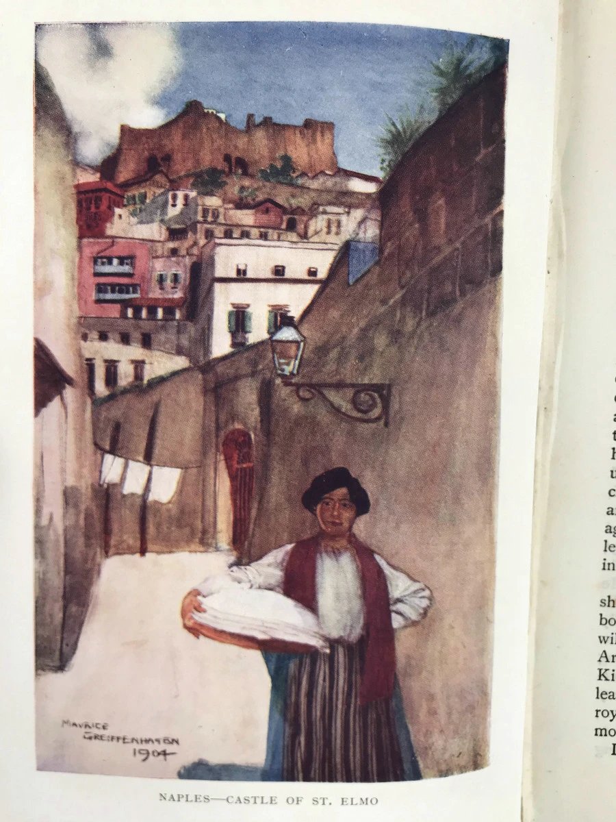 1909年 那不勒斯的过去与现在 25幅彩色插图 漆布精装32开