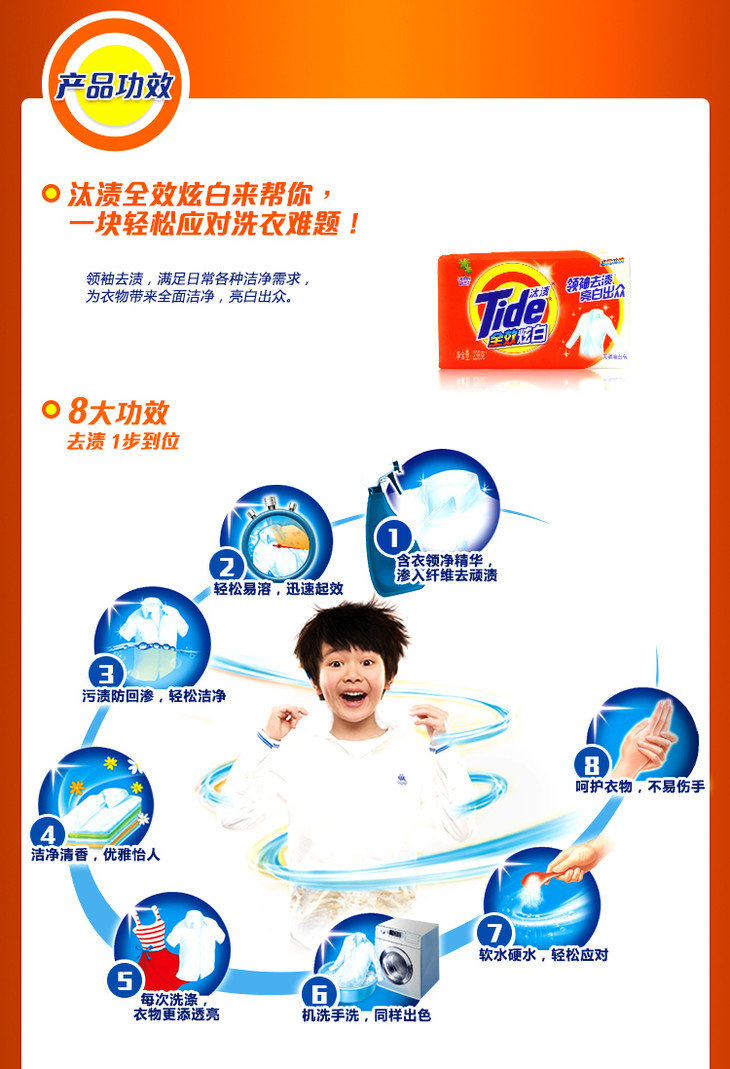 汰渍全效炫白洗衣皂218g三重功效无磷增白皂超强去渍清新香味耐用