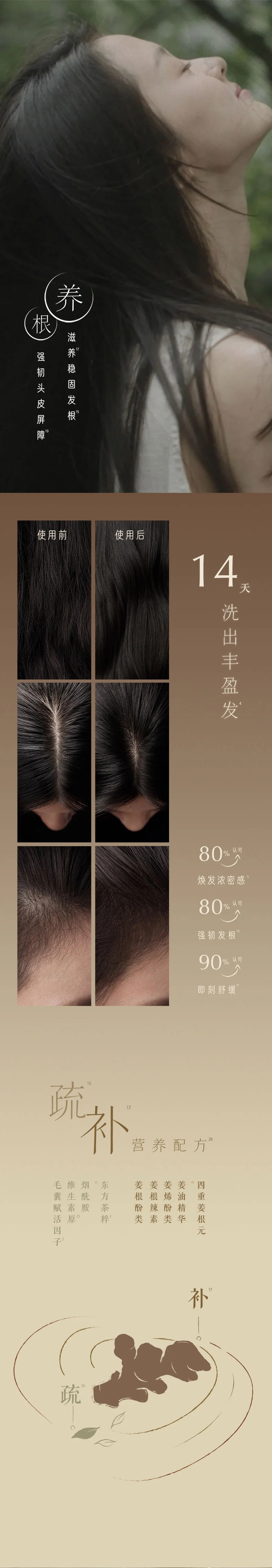 功效:精心配比的天然配方,主打一疏一补,将阴阳调和融入头皮护理,改善头皮状态发丝轻盈又水润!越洗越健康