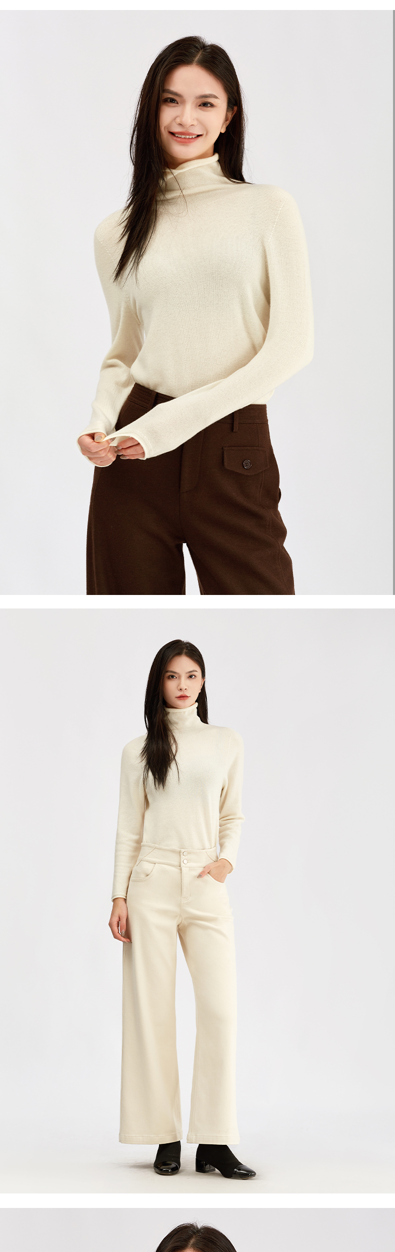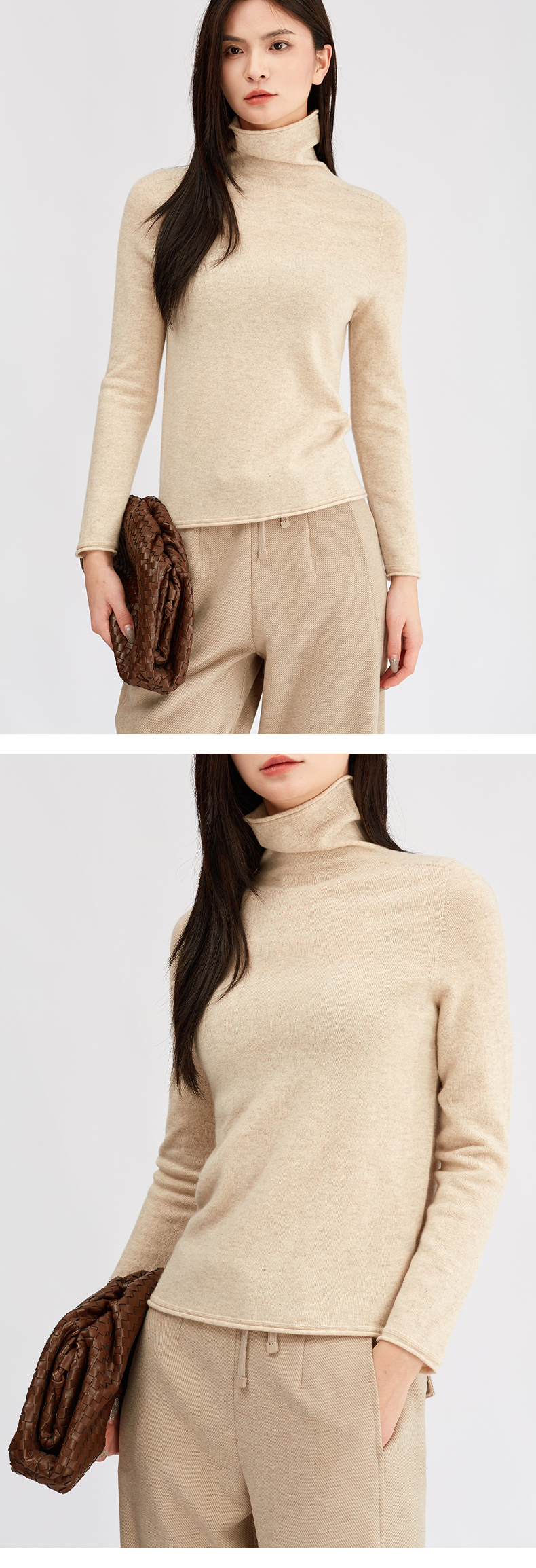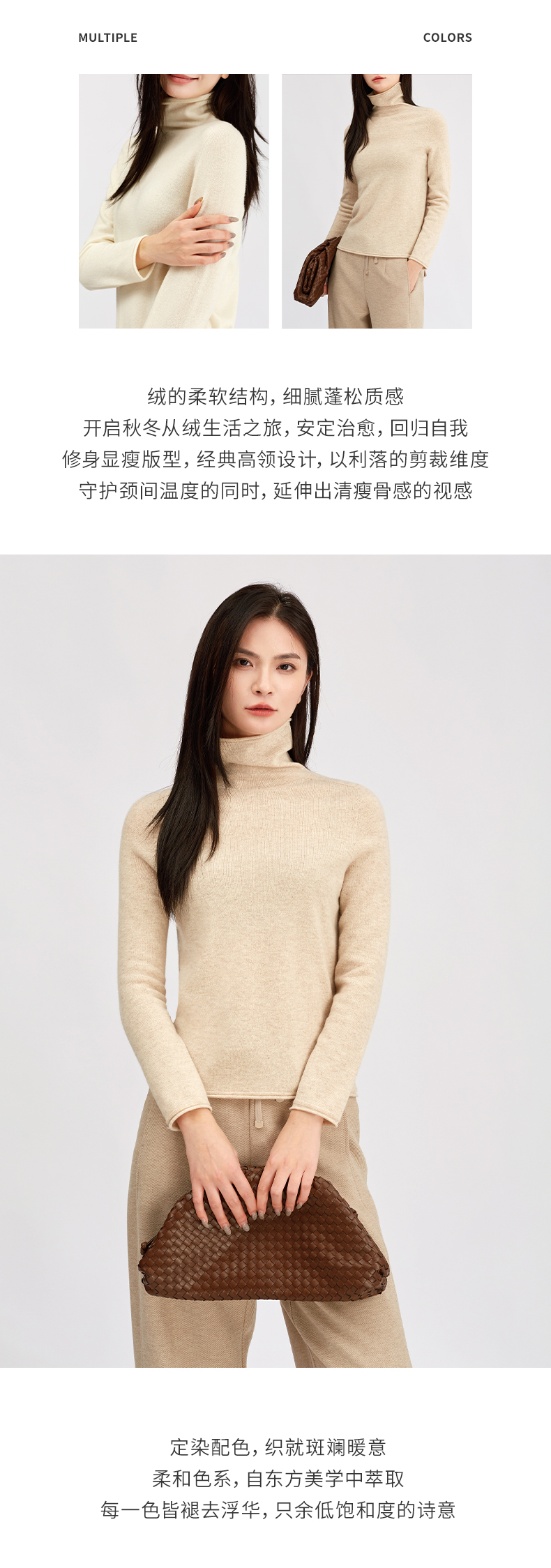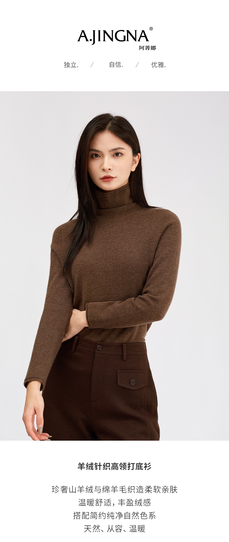 【珍奢羊绒衫】阿菁娜冬季新款治愈系珍奢山羊绒衫云触感绒面亲肤修身骨感廓形F30D301005