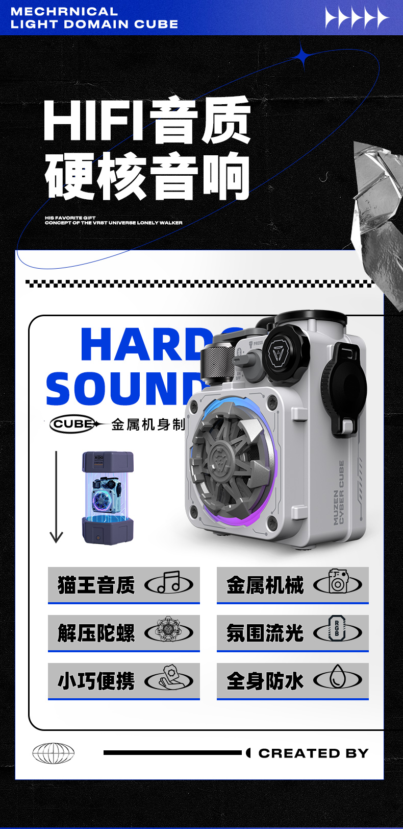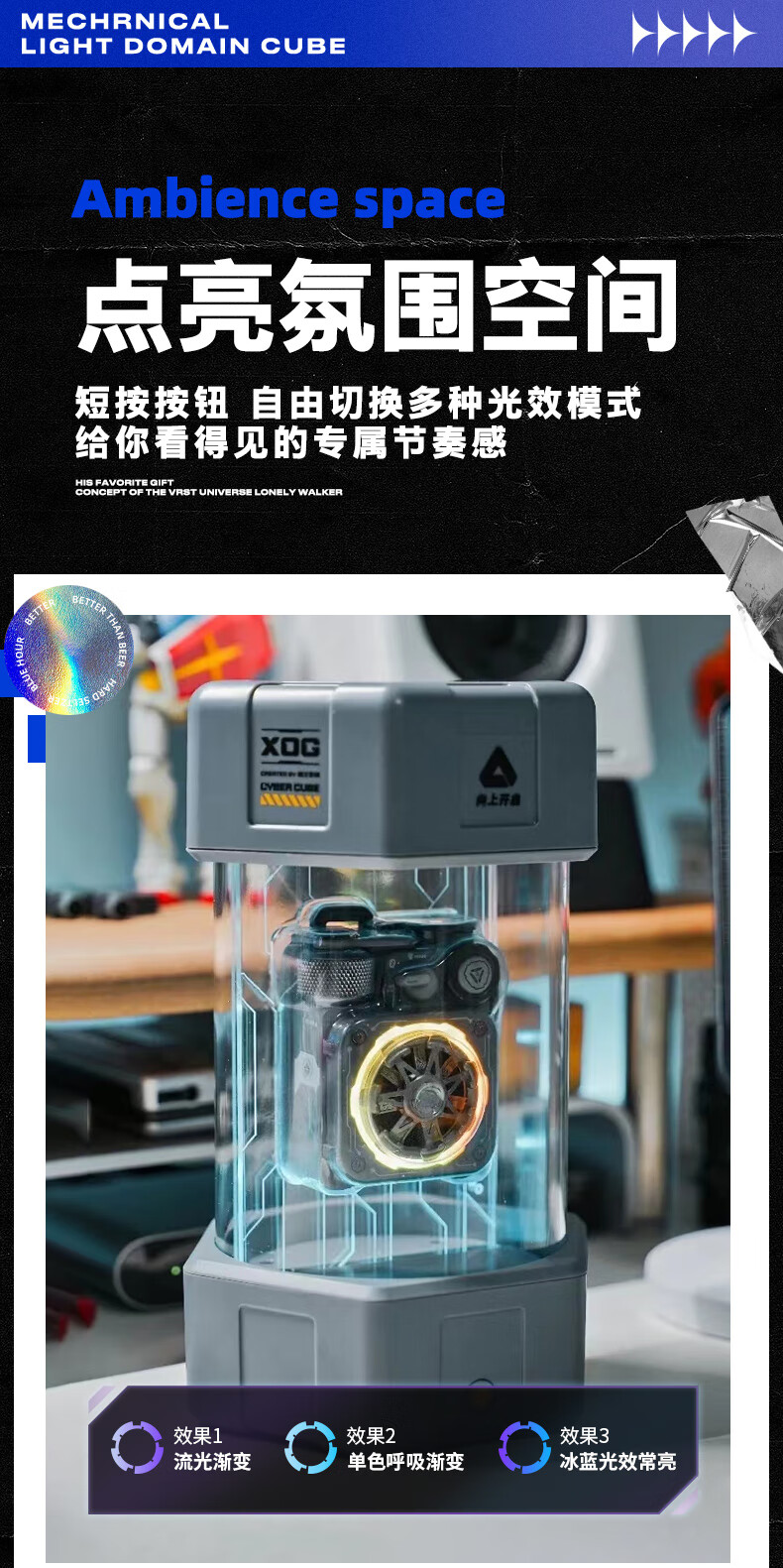 猫王收音机猫王音响 XOG机械光域Cube典藏版无线蓝牙音箱赛博风音响指尖陀螺七夕礼物送男友 星舰灰/原力白