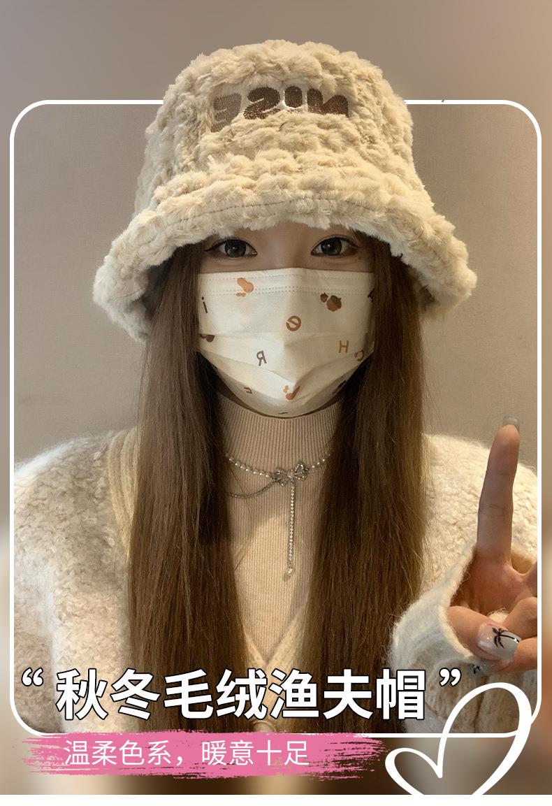 新款毛绒女帽秋冬百搭日系氛围感学生保暖防寒东北毛绒盆帽