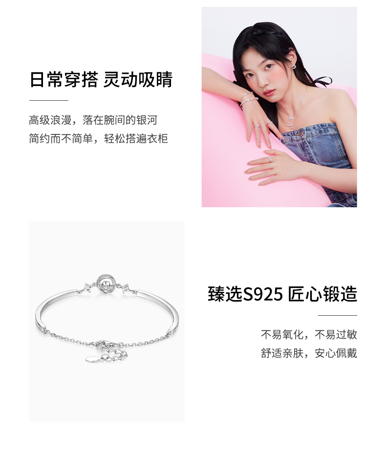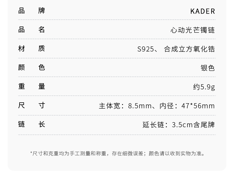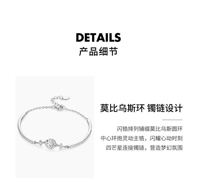 KADER卡蒂罗 莫比乌斯系列 心动光芒镯链 925银跳动的心经典浪漫可调节设计手饰 灵动吸睛闪耀配饰 女友礼盒520