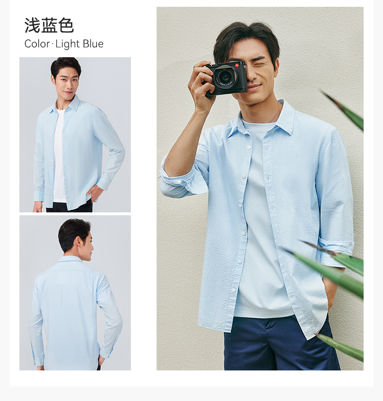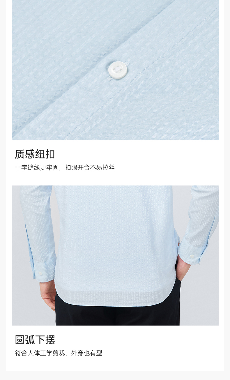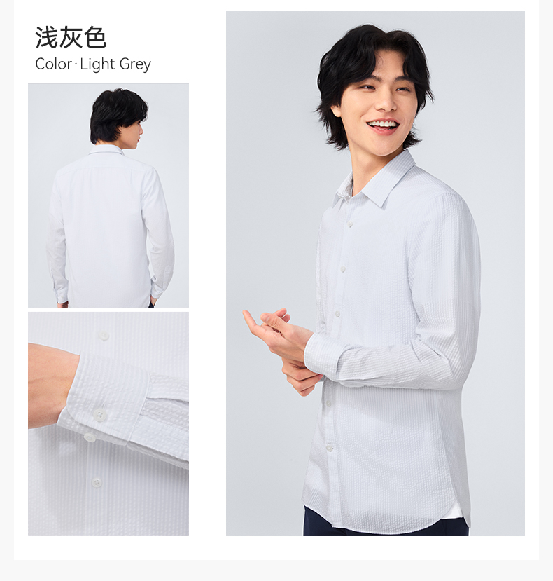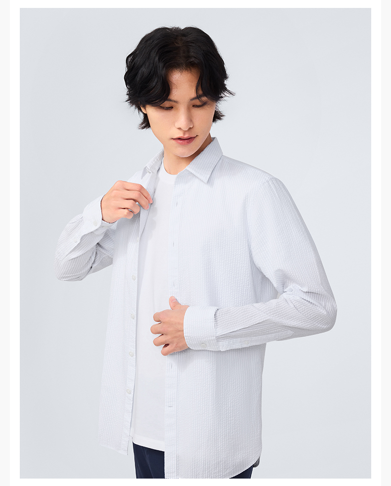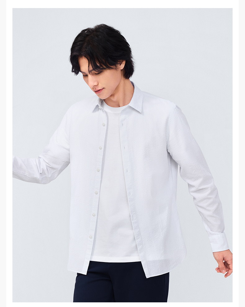 十如仕直尖领泡泡纱休闲长袖衬衫-SS04-01