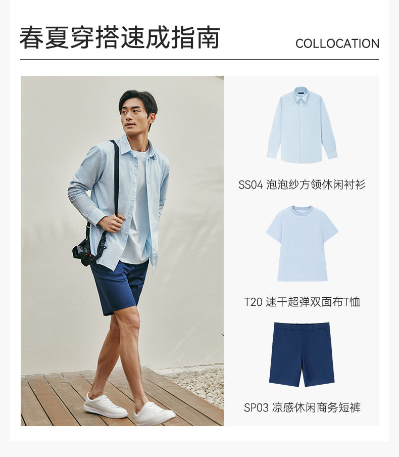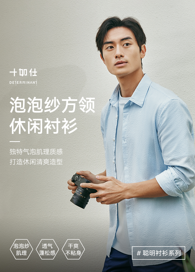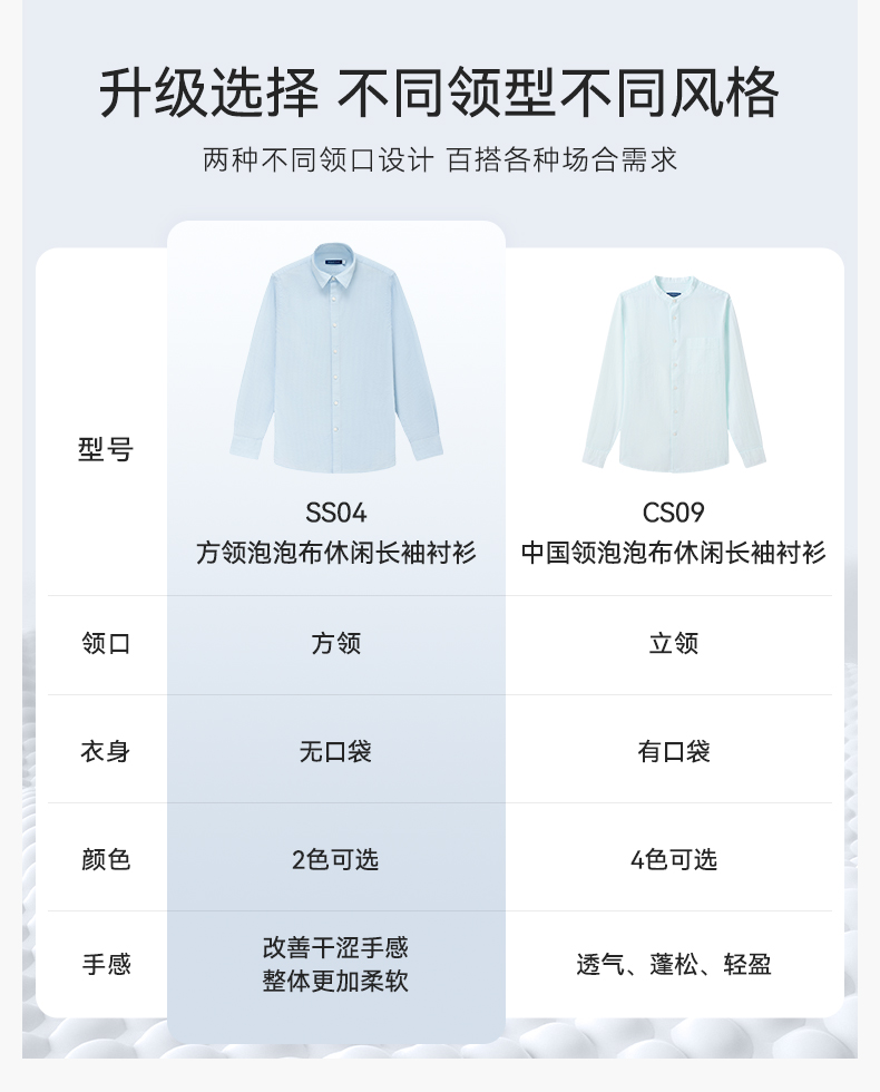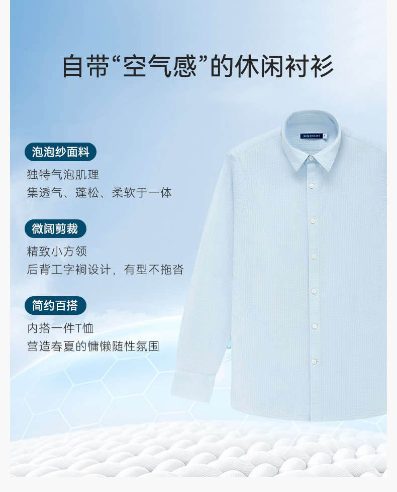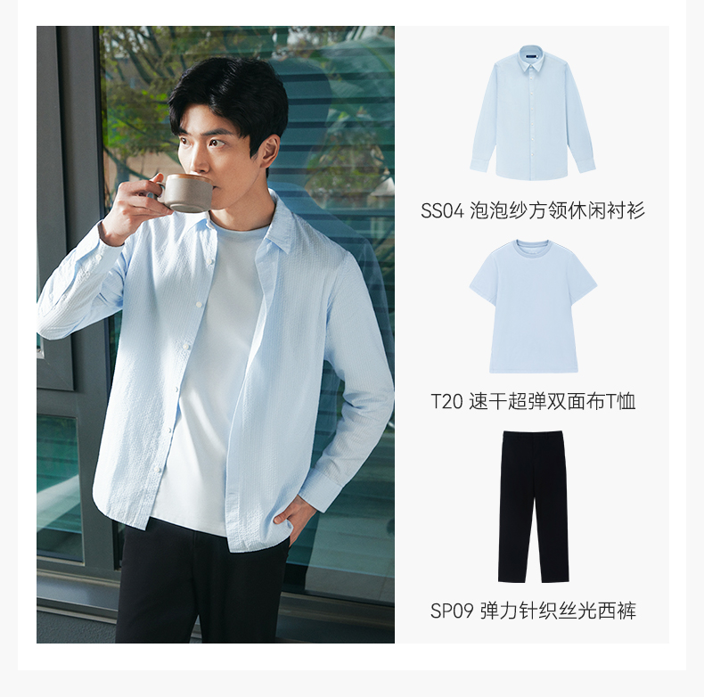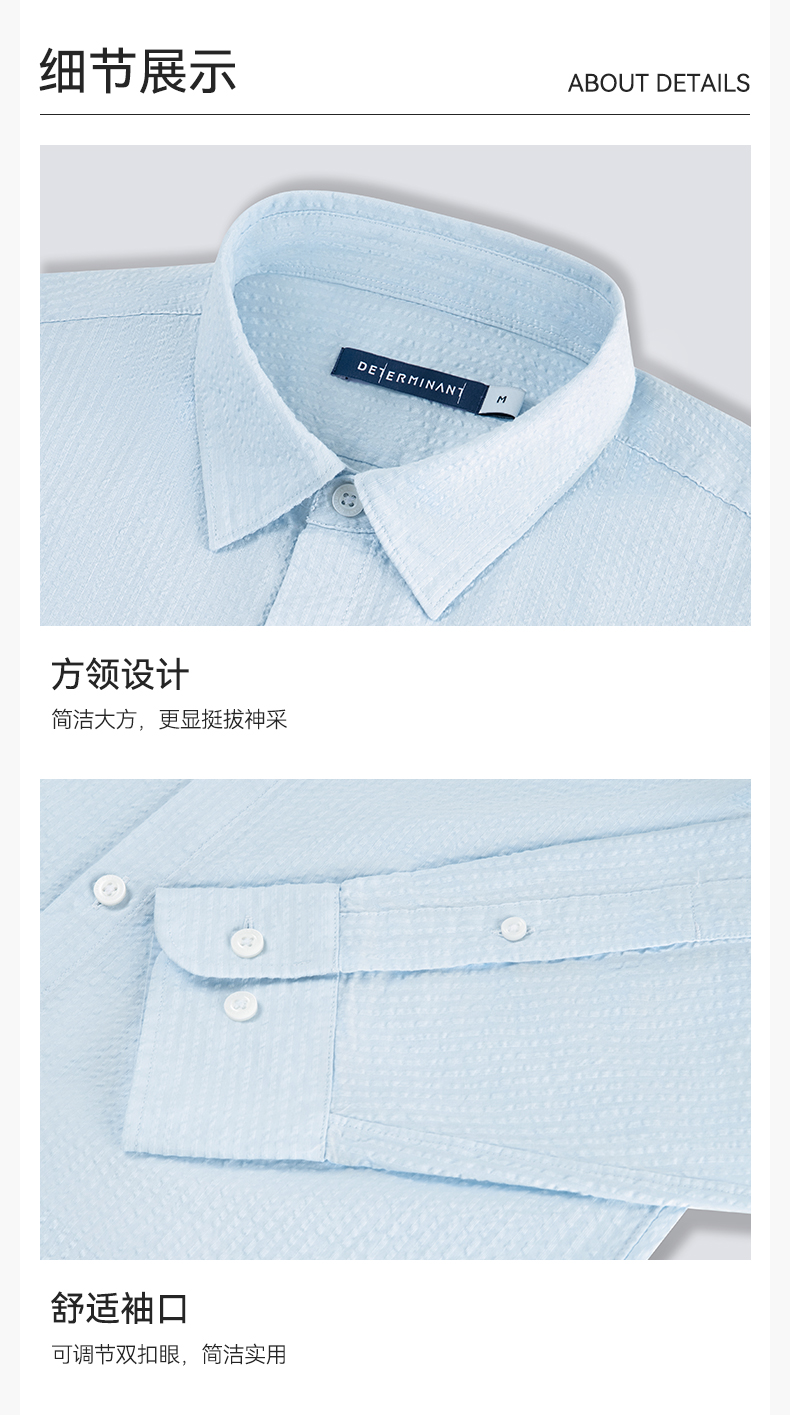 十如仕直尖领泡泡纱休闲长袖衬衫-SS04-01