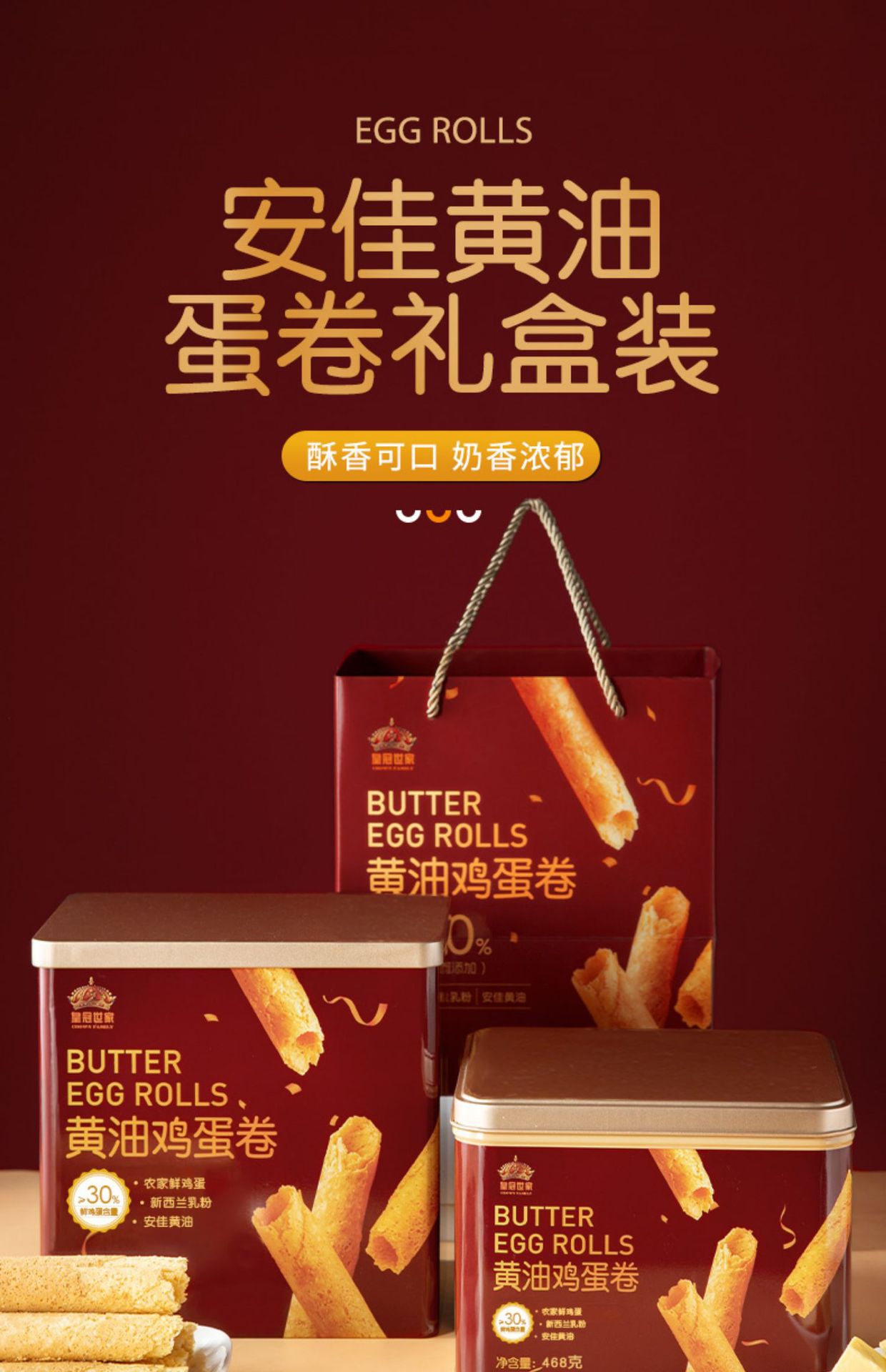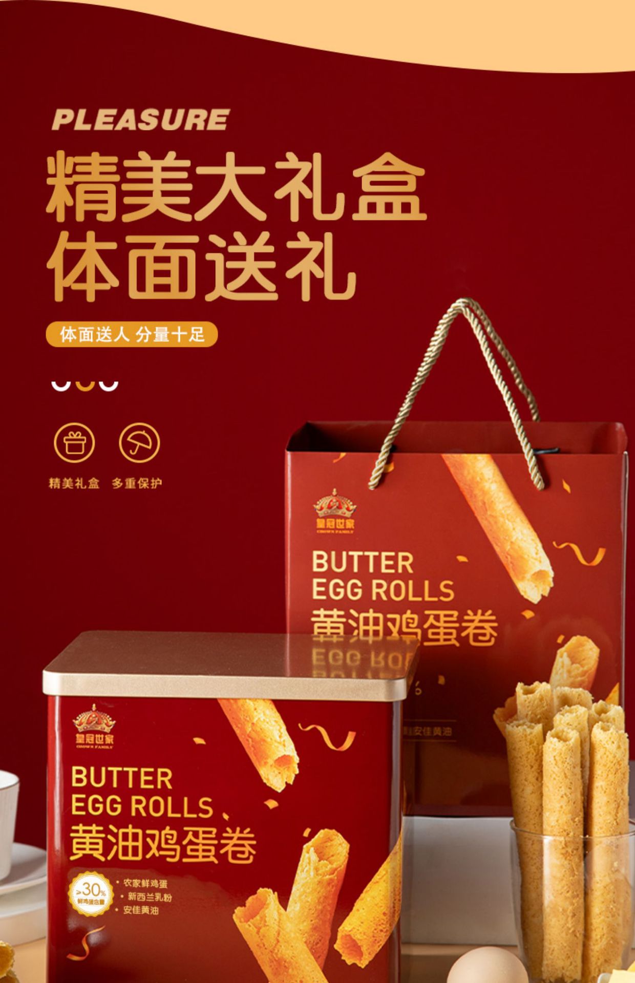 【皇冠世家❗黄油鸡蛋卷酥礼盒】甄选品质原料制作,浓浓黄油香「高于12%添加量」特别添加新西兰乳粉,用料讲究不添加防腐剂,老人小孩均可食用,儿童饼干小吃休闲零食品礼包整箱批发礼盒装L