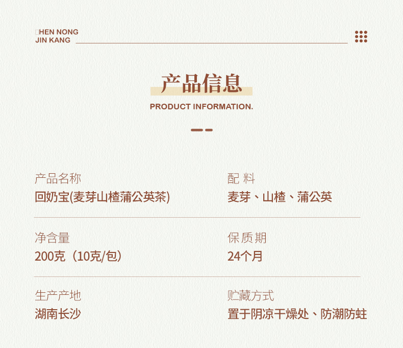 神农金康 回奶宝200g 大份量山楂麦芽蒲公英根 宝妈养生茶 原生态真滋补 喝护家人健康