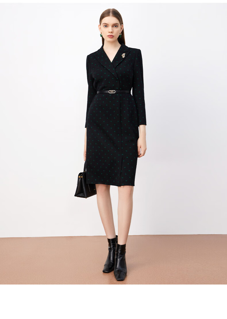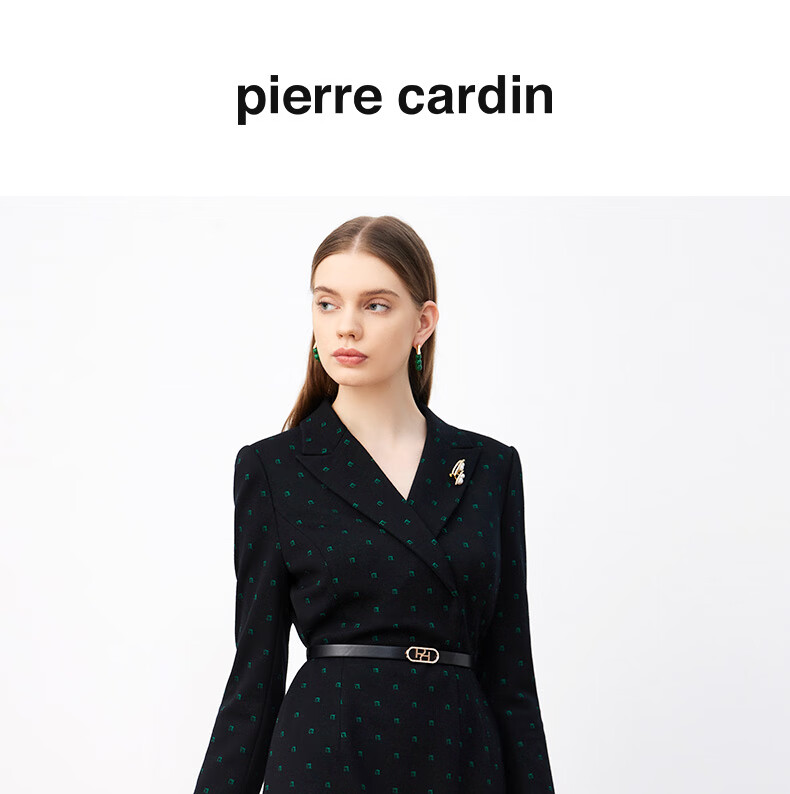 皮尔卡丹女装连衣裙羊毛长袖修身裙子商务通勤A字裙P3403E3871B3