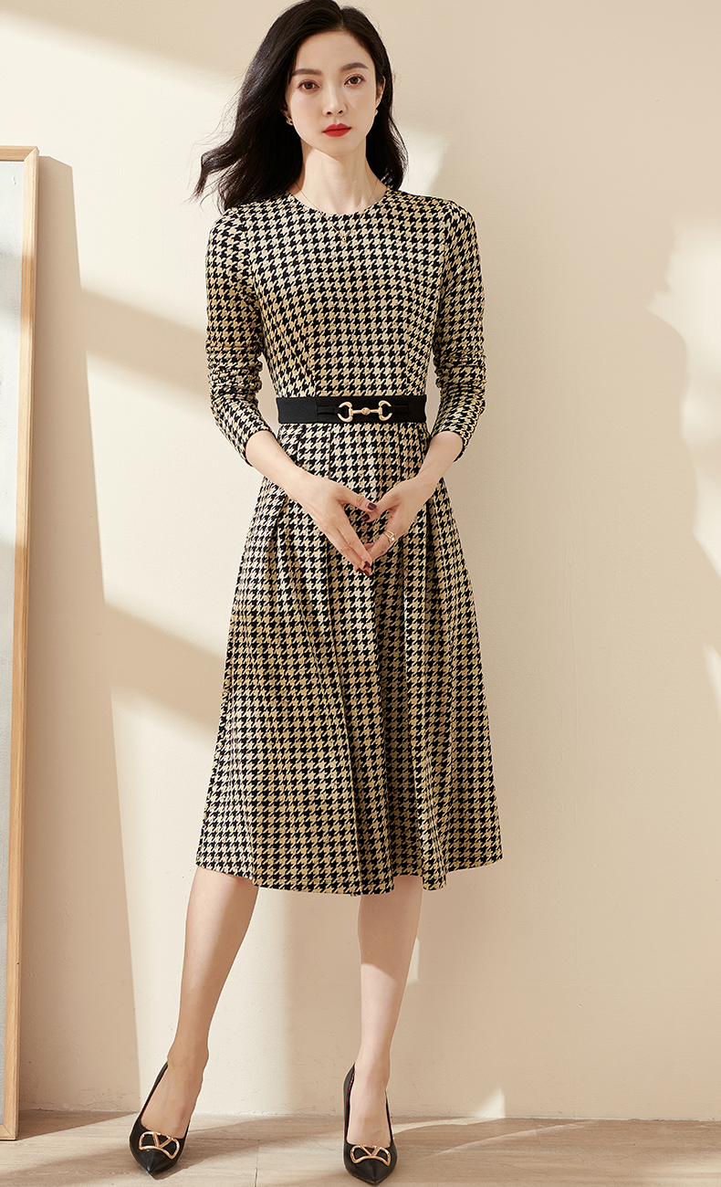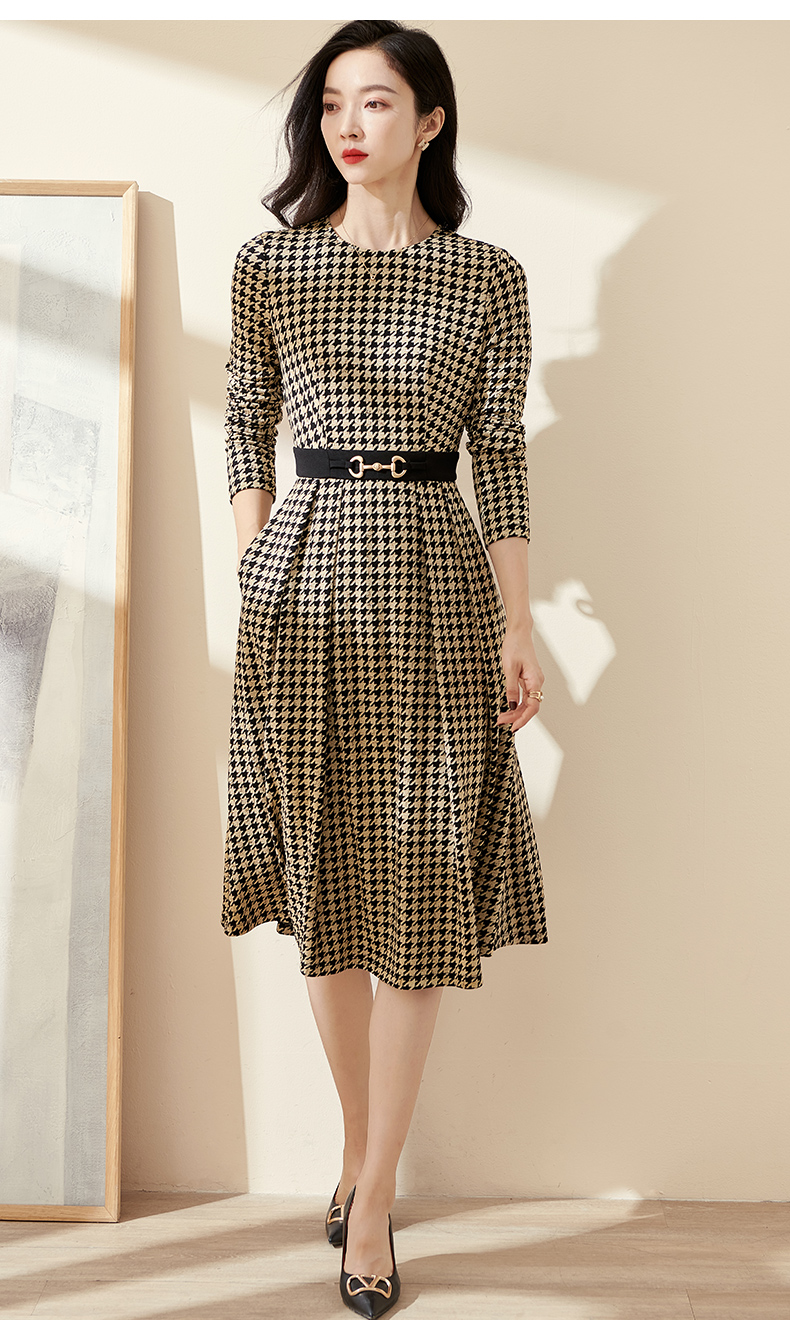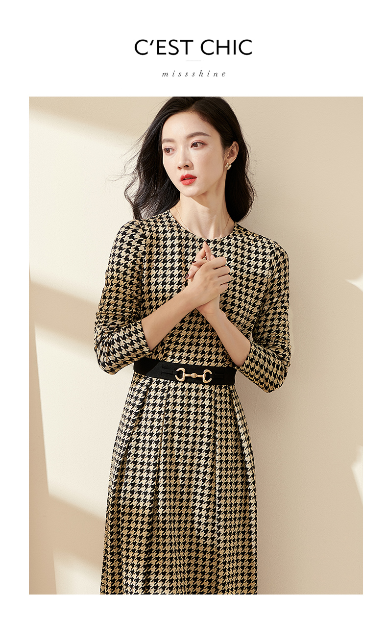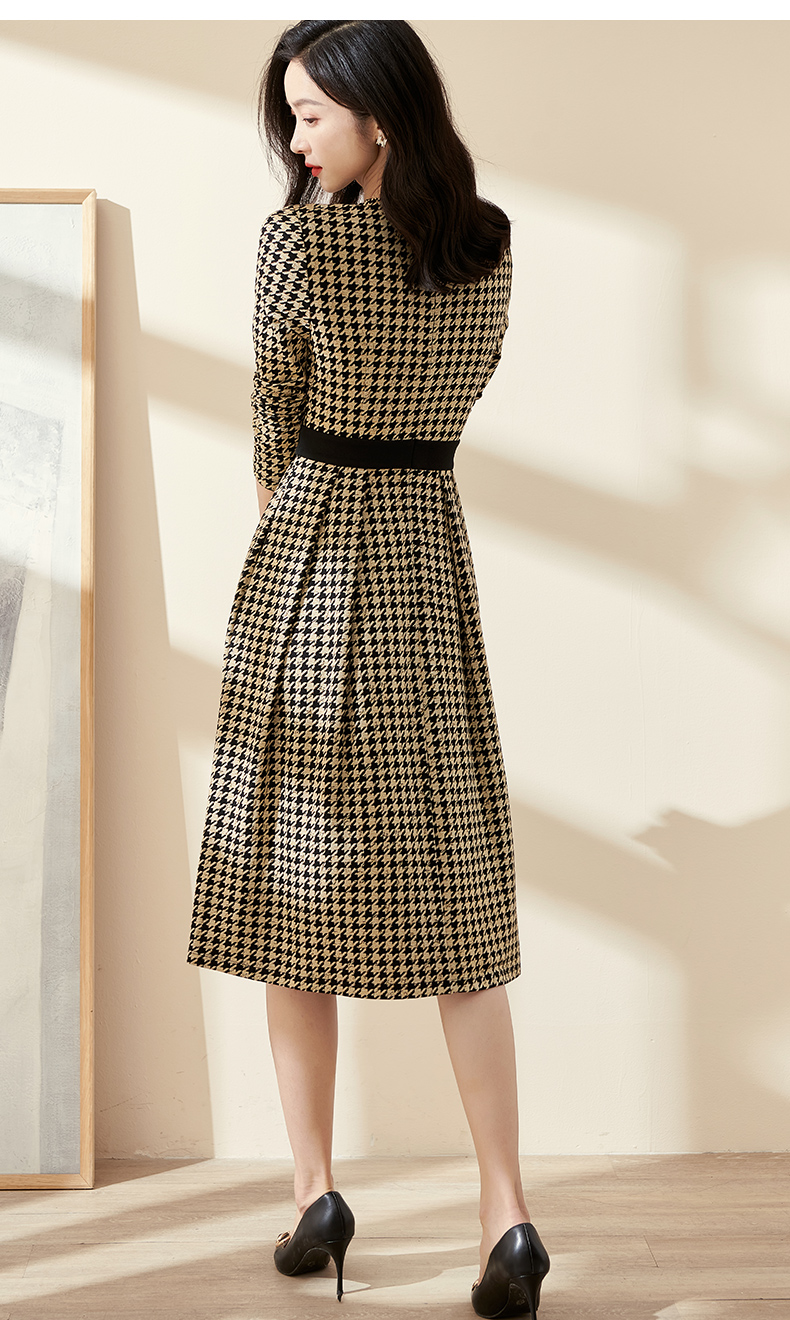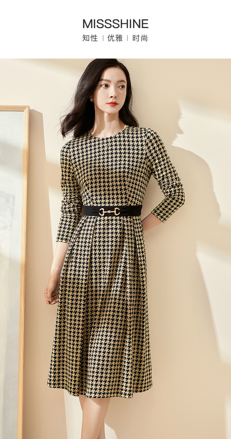 剩S 米思阳2025春季新款时尚千鸟格针织中长裙修身显瘦大摆连衣裙0297