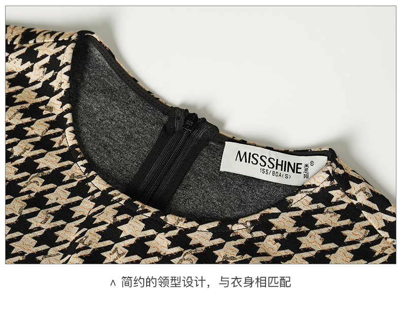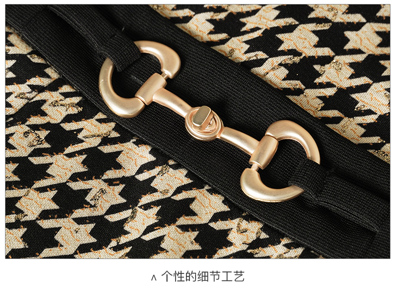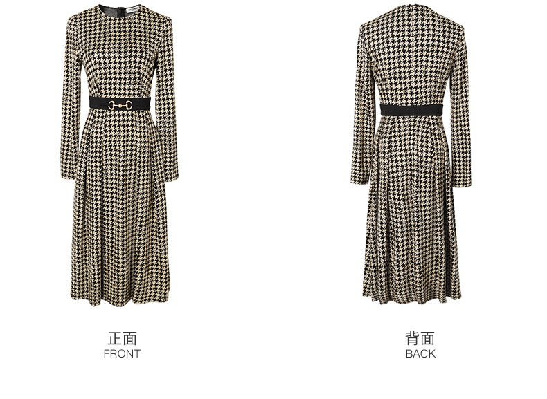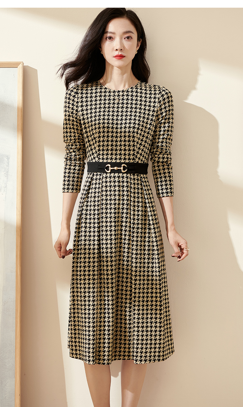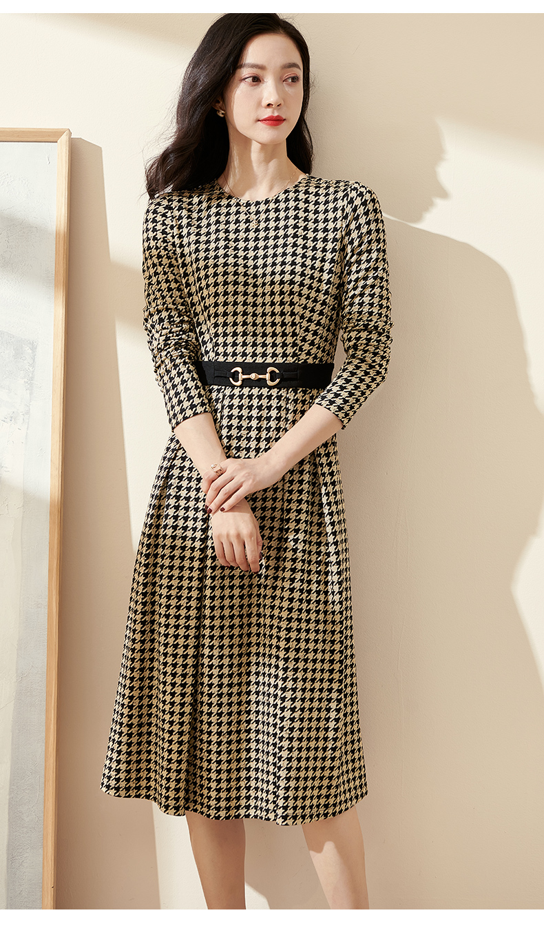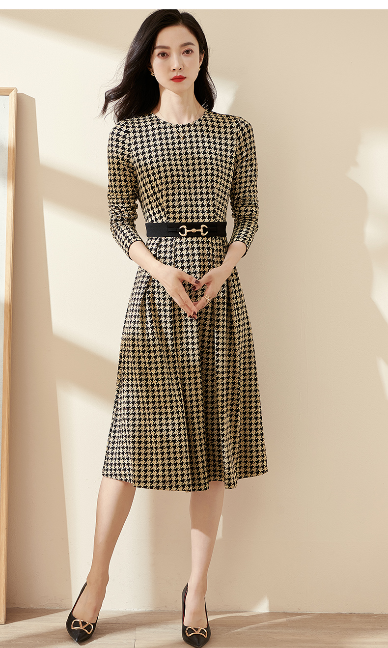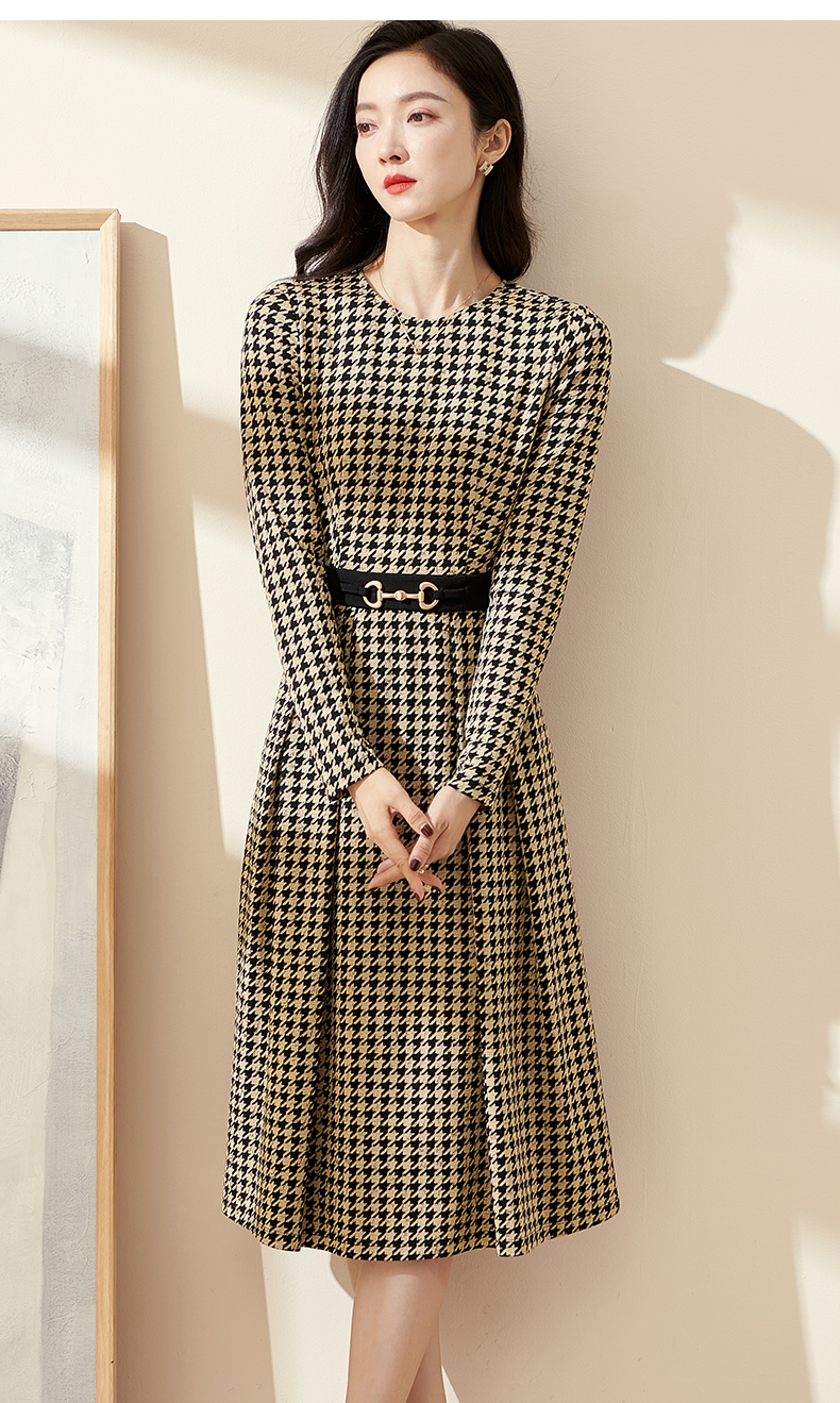 剩S 米思阳2025春季新款时尚千鸟格针织中长裙修身显瘦大摆连衣裙0297