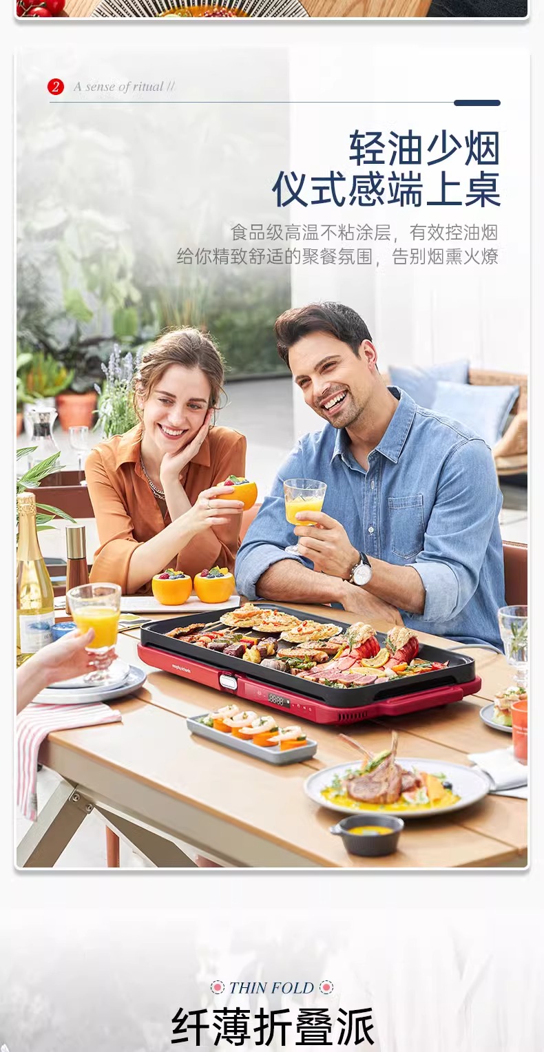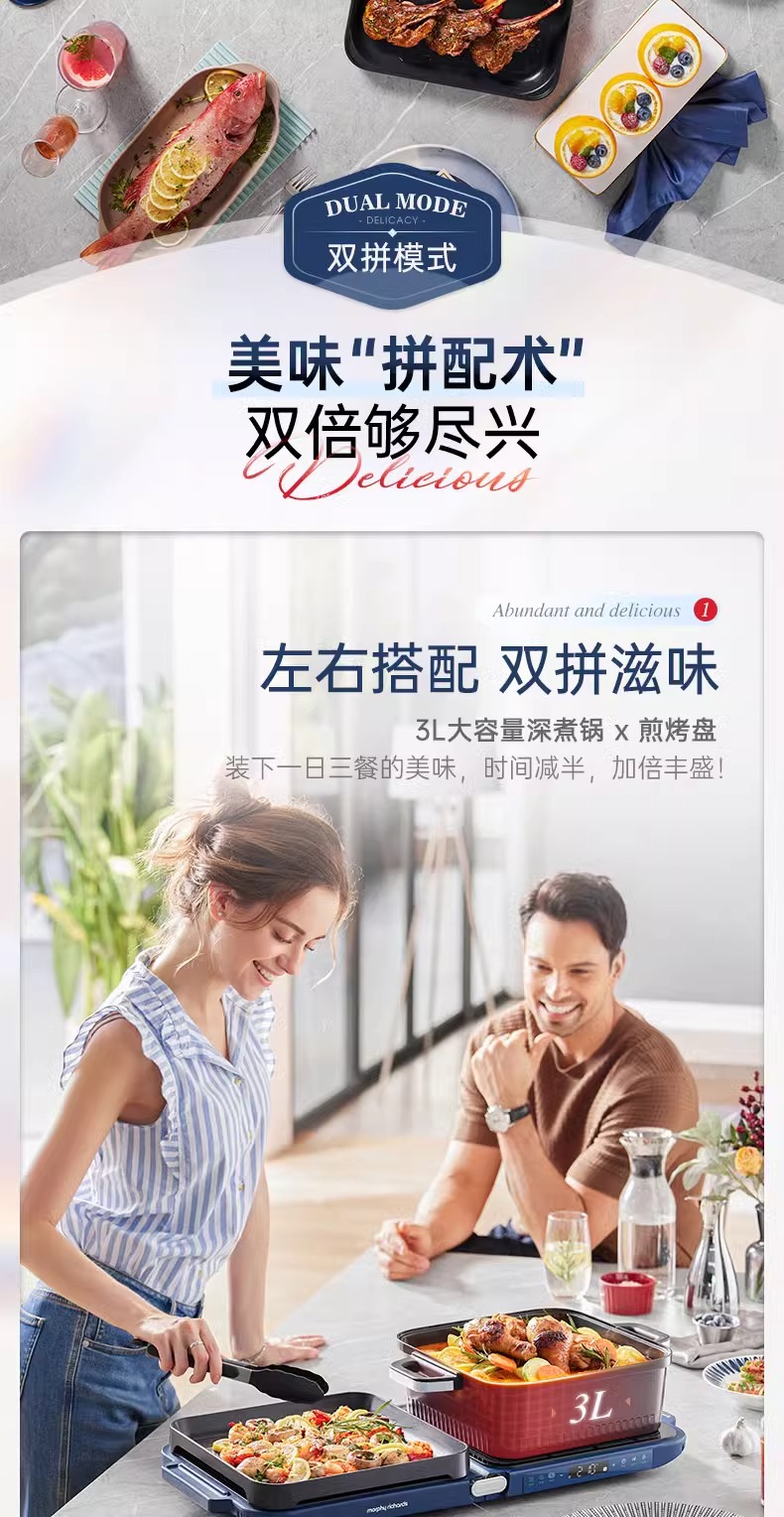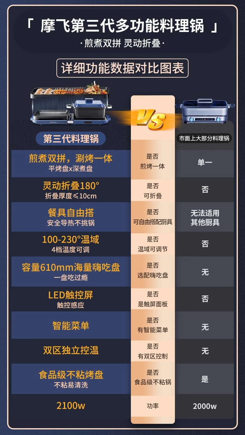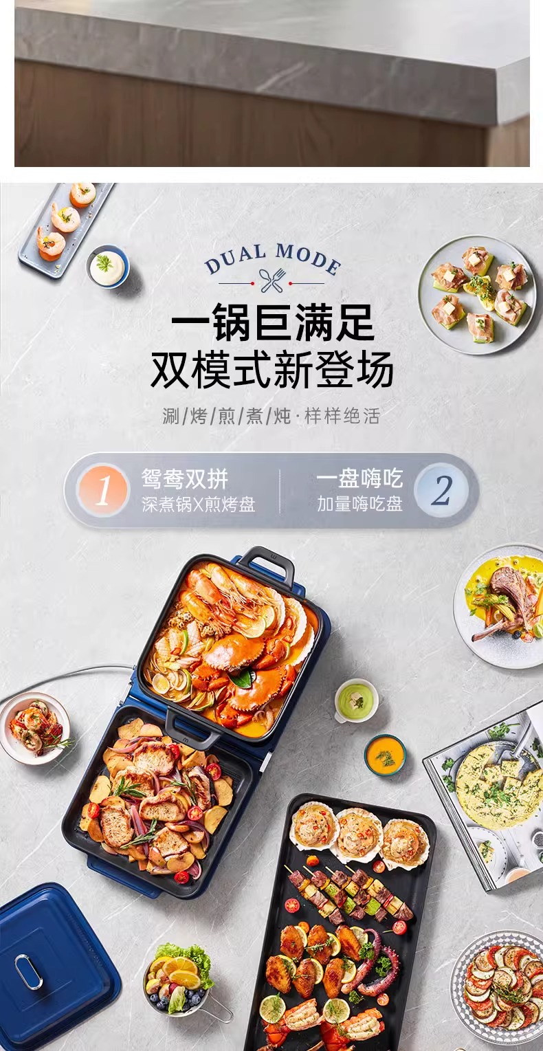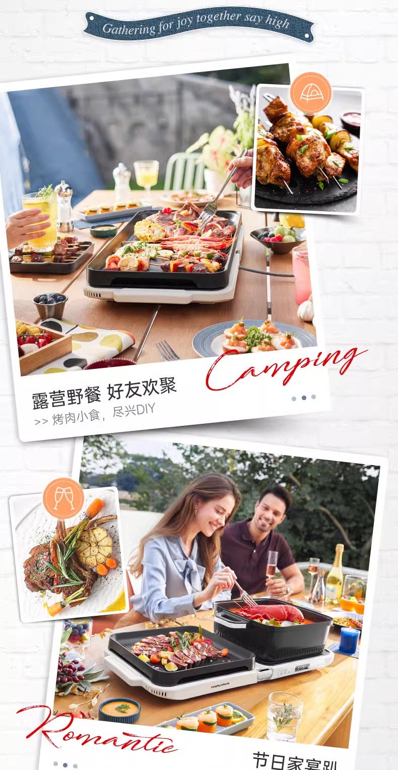 摩飞三代多功能料理锅折叠嗨吃锅烤肉涮一体电火锅蒸煮炒煎烤肉锅