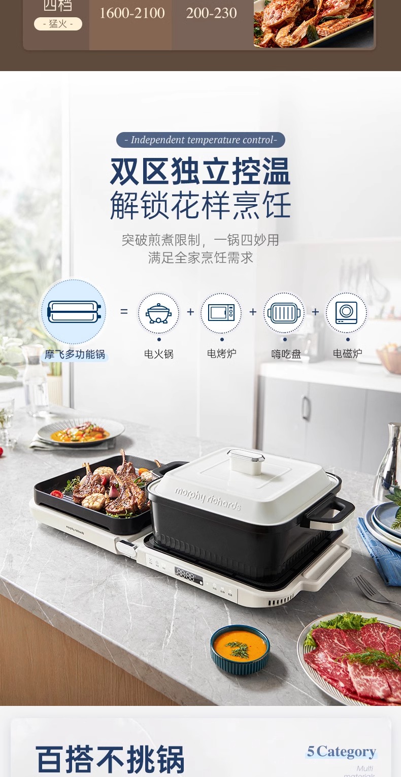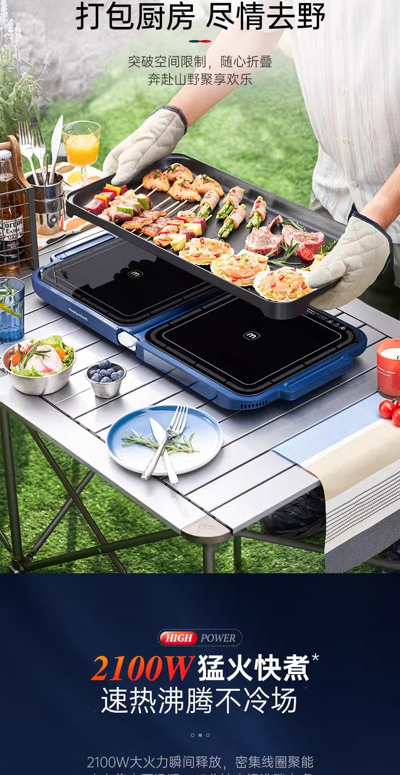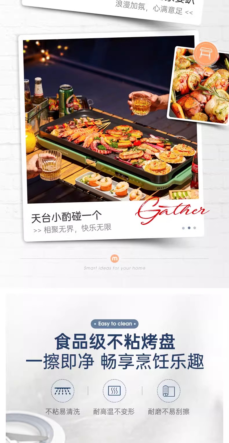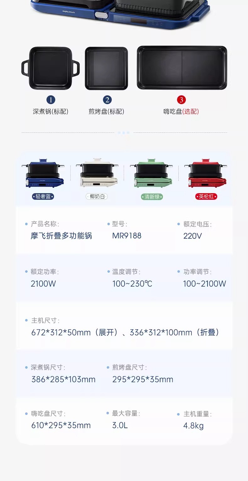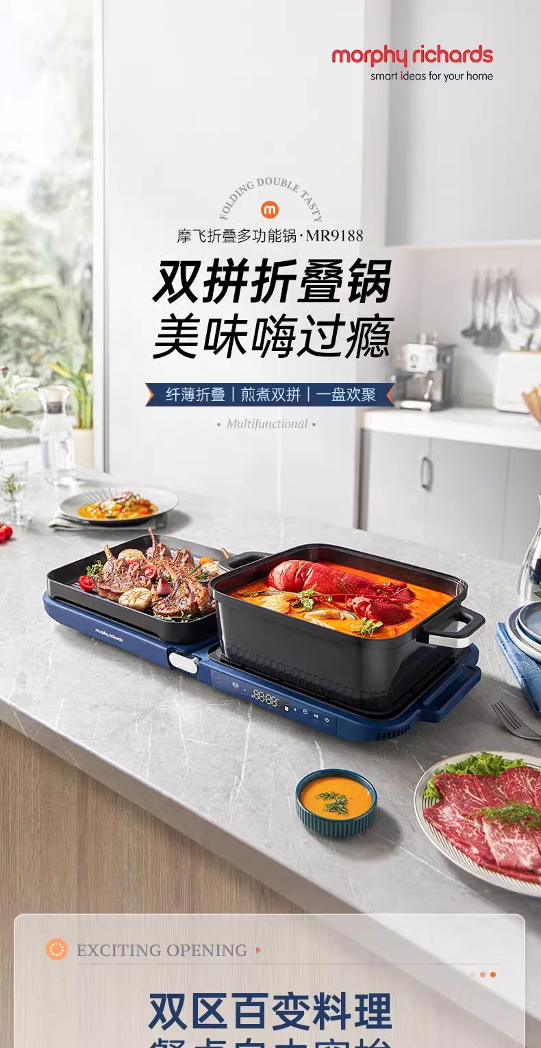 摩飞三代多功能料理锅折叠嗨吃锅烤肉涮一体电火锅蒸煮炒煎烤肉锅