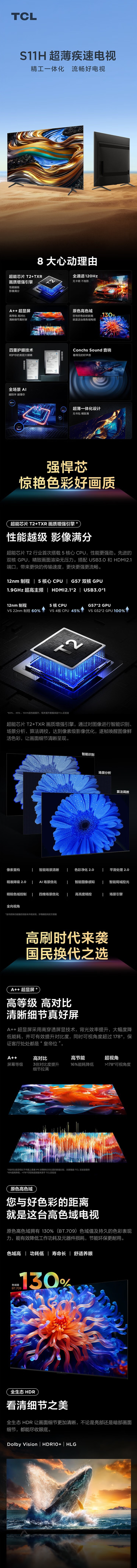 TCL(912675)电视机 75S11H 超薄一体化设计全通道 120Hz 75英寸 原厂标配 75S11H