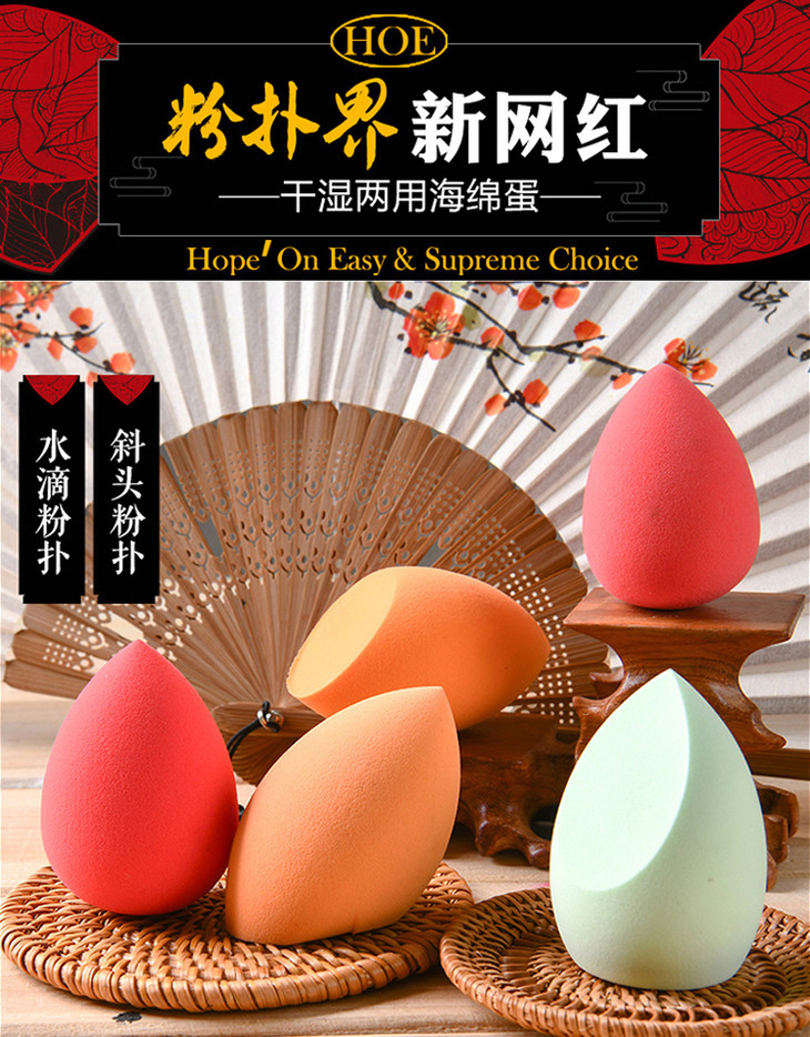 【官方授权】HOE禾一可授权干湿两用美妆蛋粉扑彩妆化妆蛋 3个粉扑/盒 颜色随机发货 送收纳盒+架子JPY带授权招加盟代理