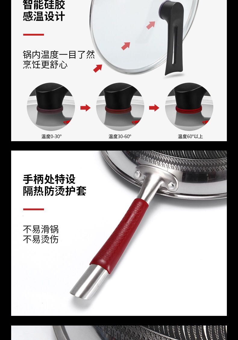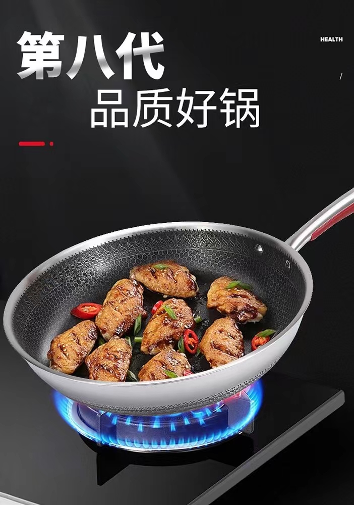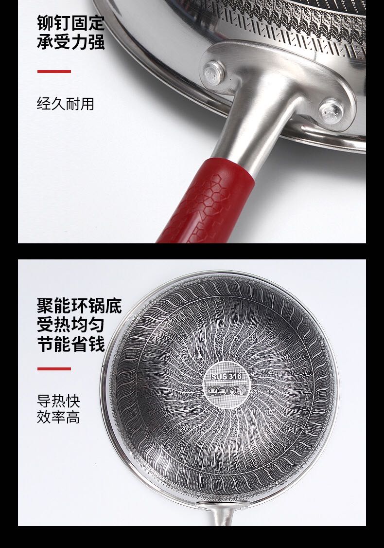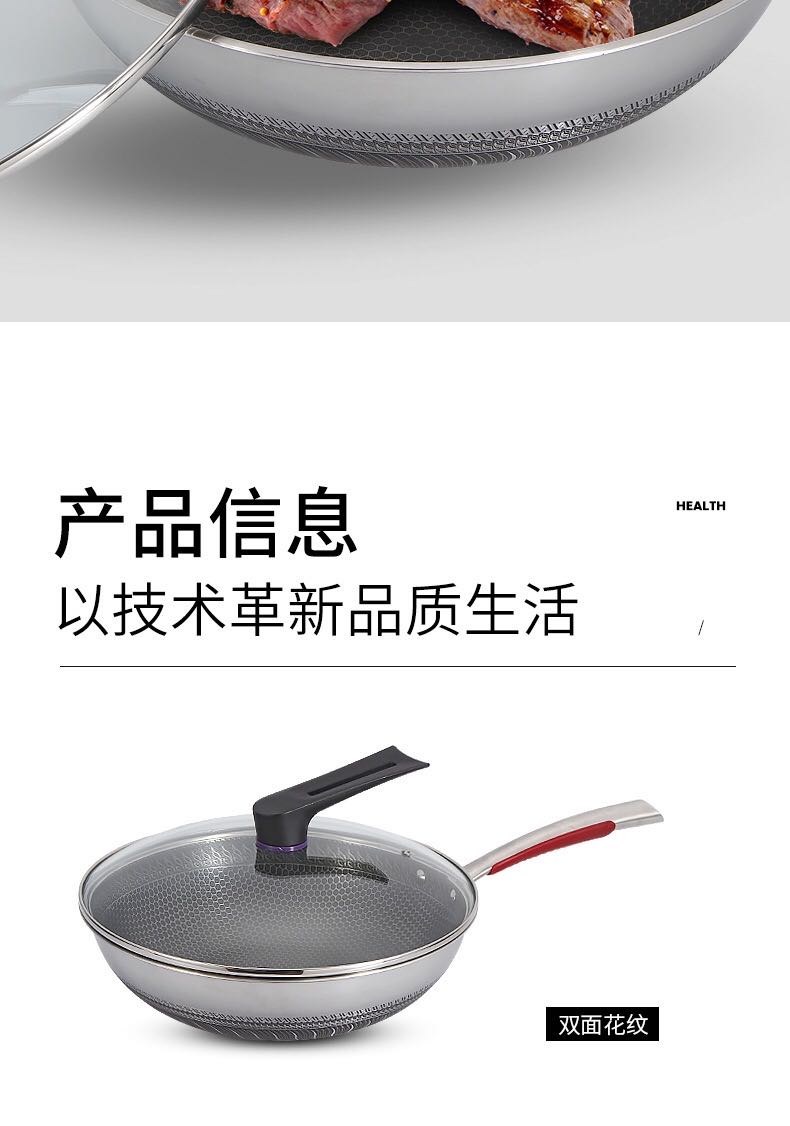 康尼菲蜂窝双面316不锈钢炒锅(护套柄)