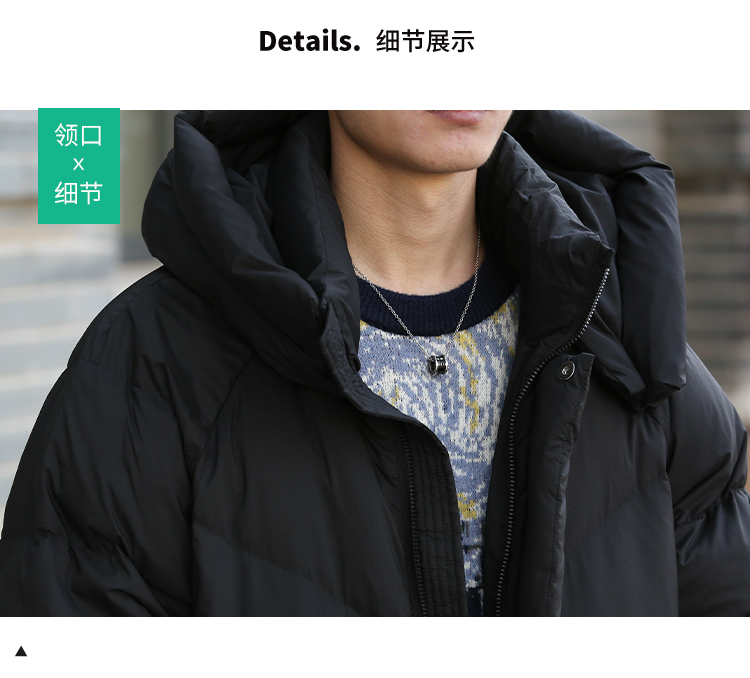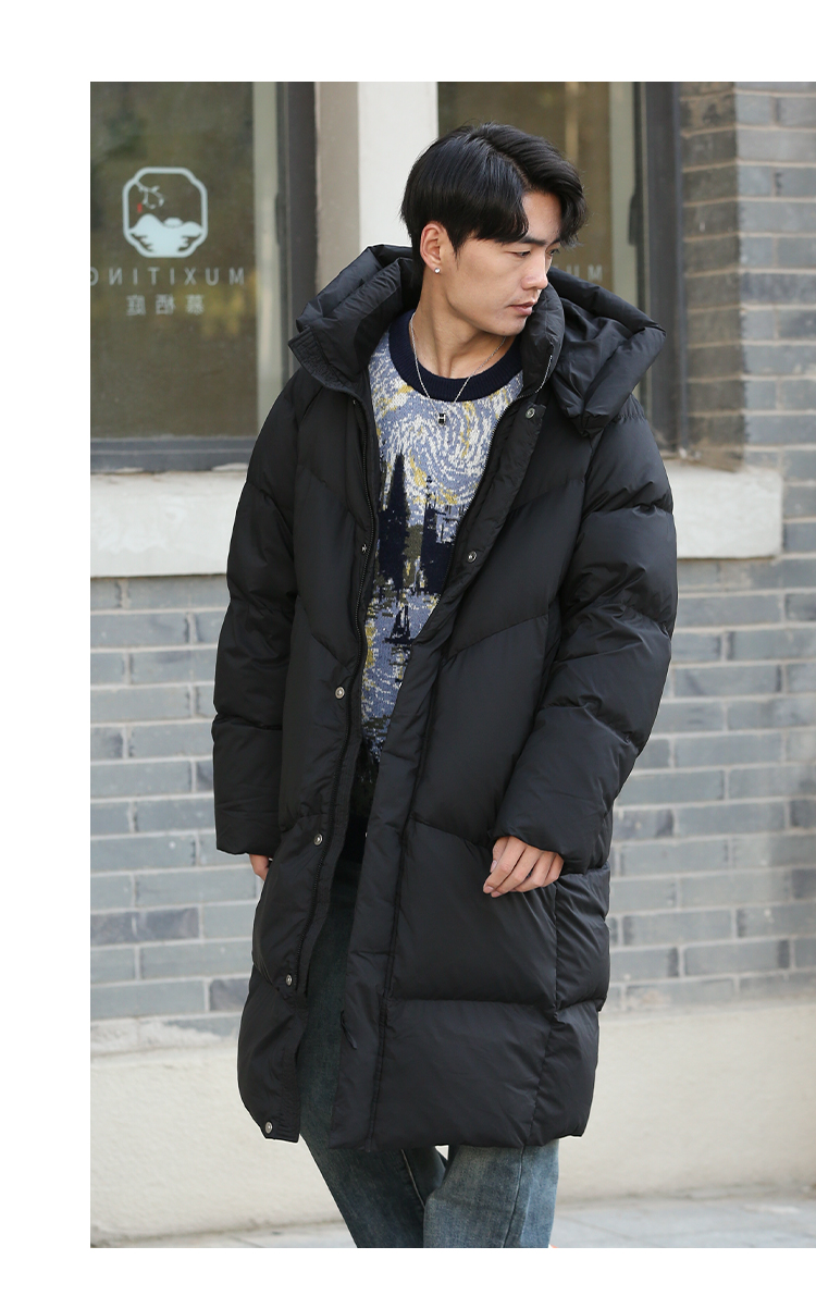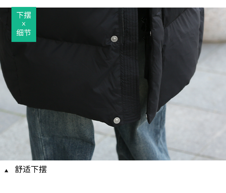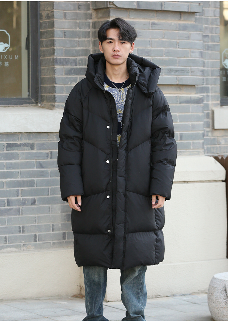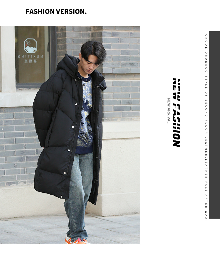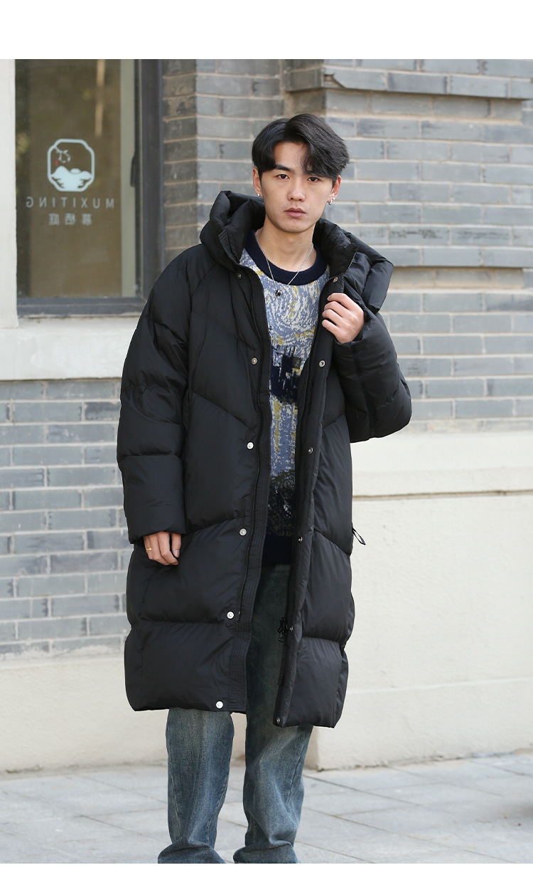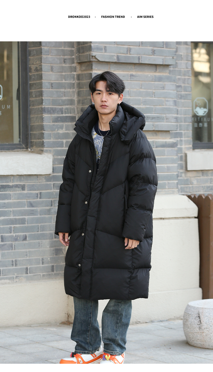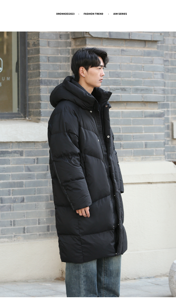 DRONKOO 2025 连帽后幅织带前斜绗线中长款厚羽绒服