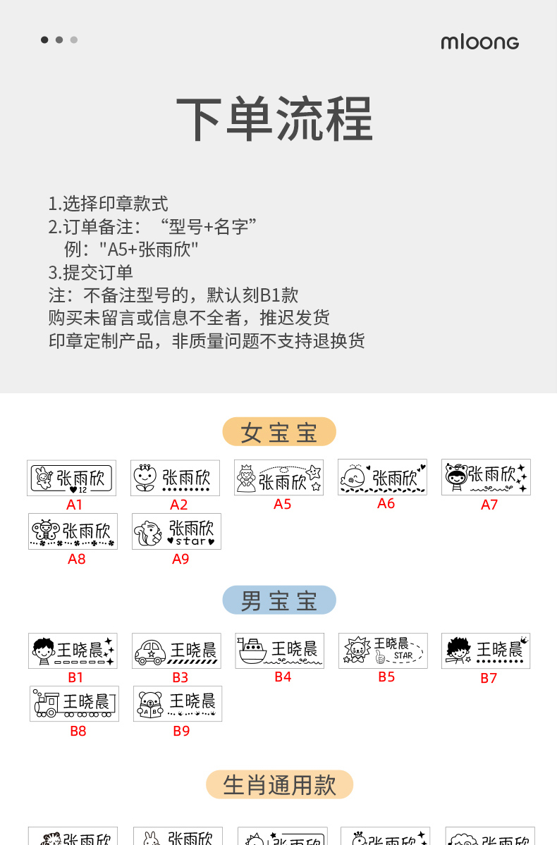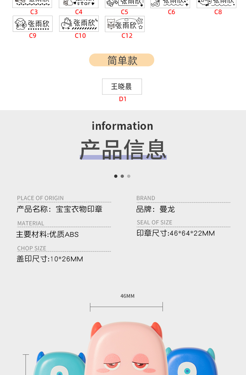 曼龙儿童名字印章防水姓名贴可水洗-小怪物(备注图案型号+名字)