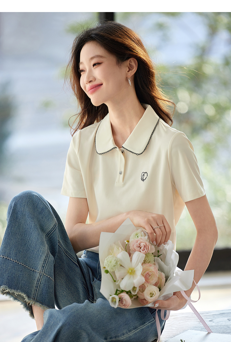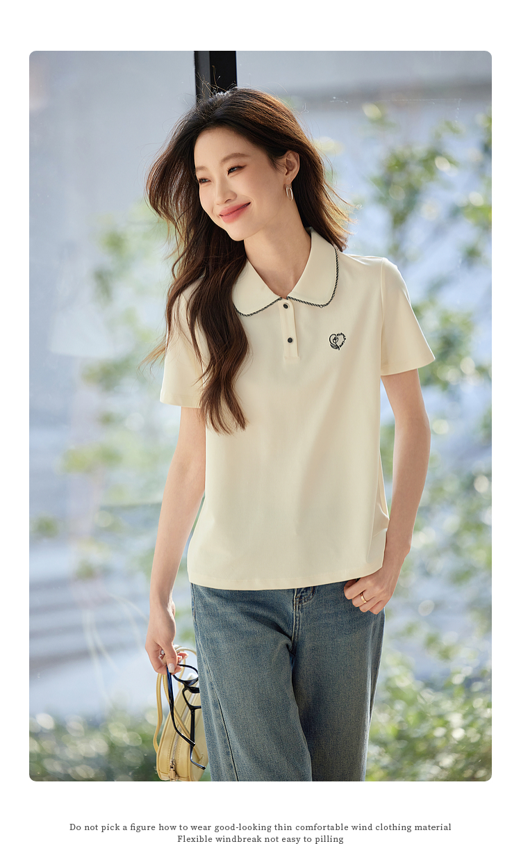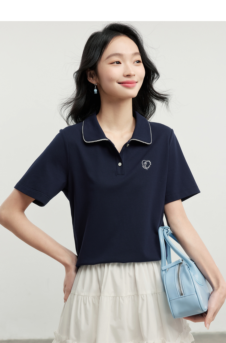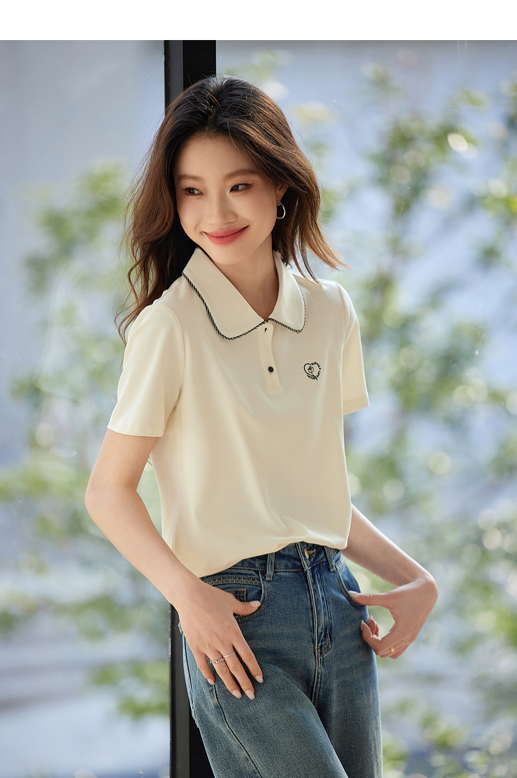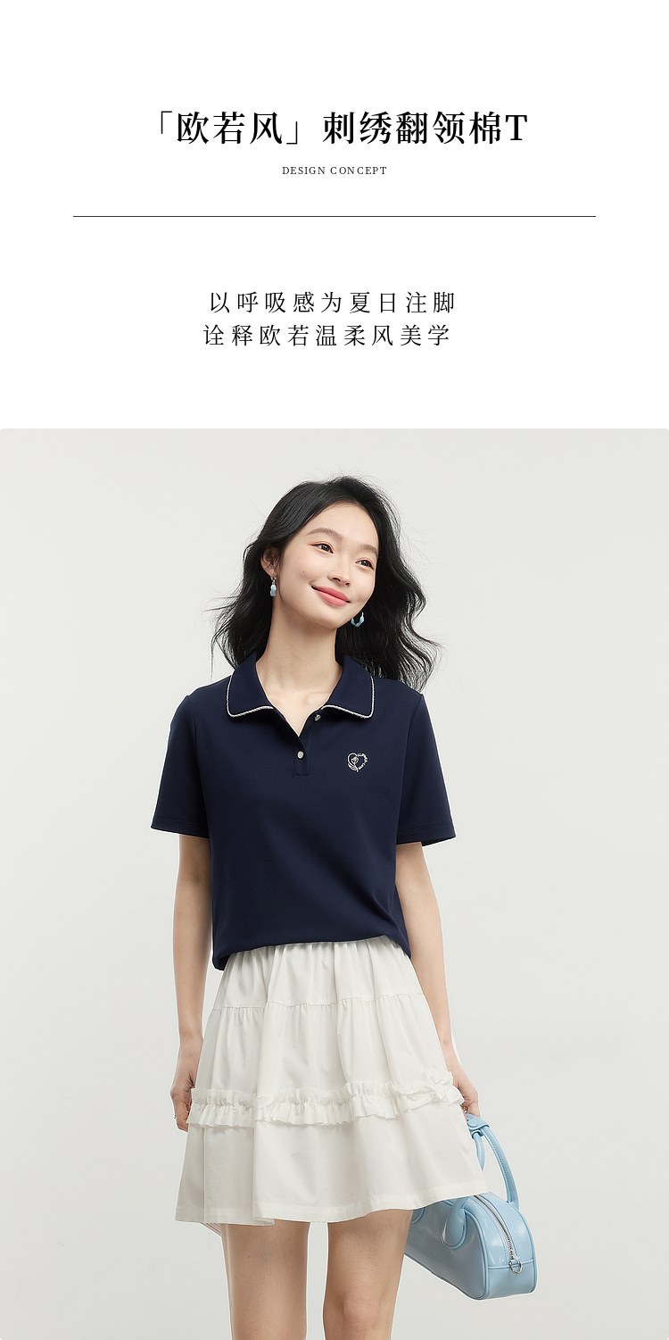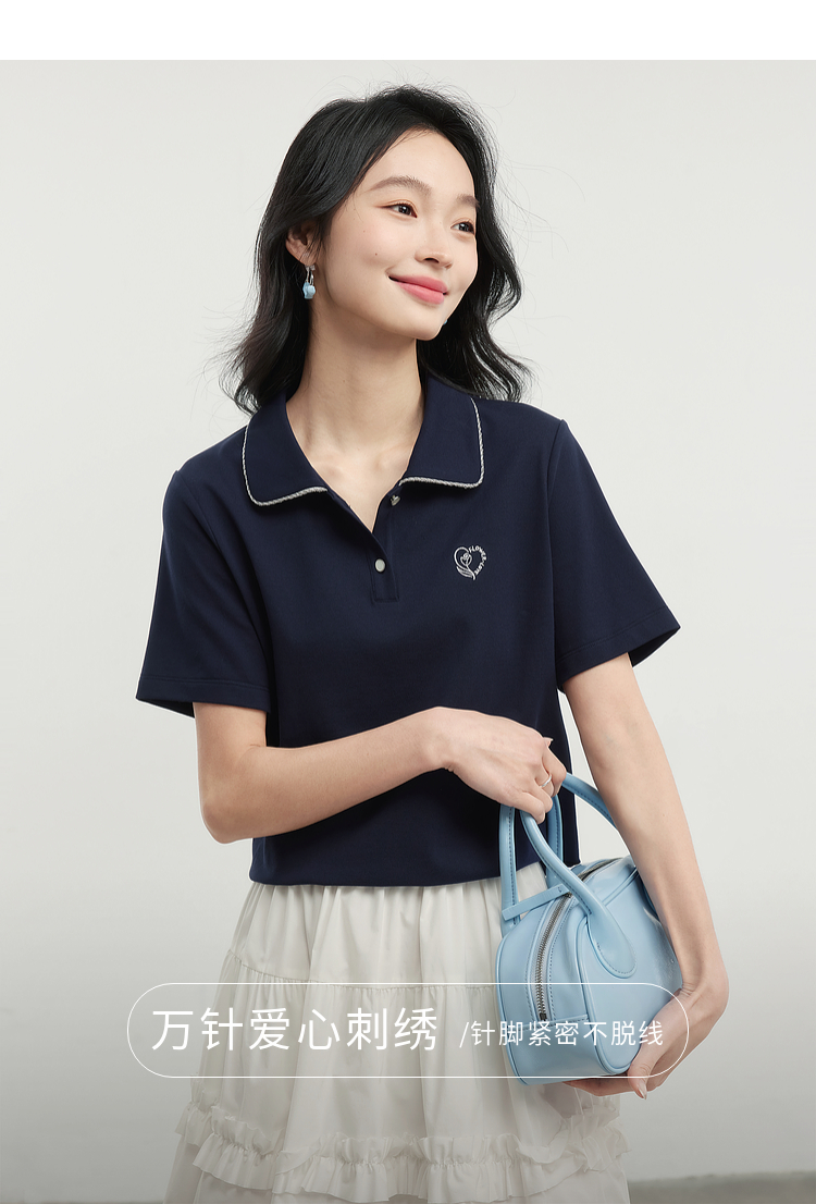 熙世界休闲通勤刺绣翻领T恤女设计感短袖Polo衫上衣2025夏季新款