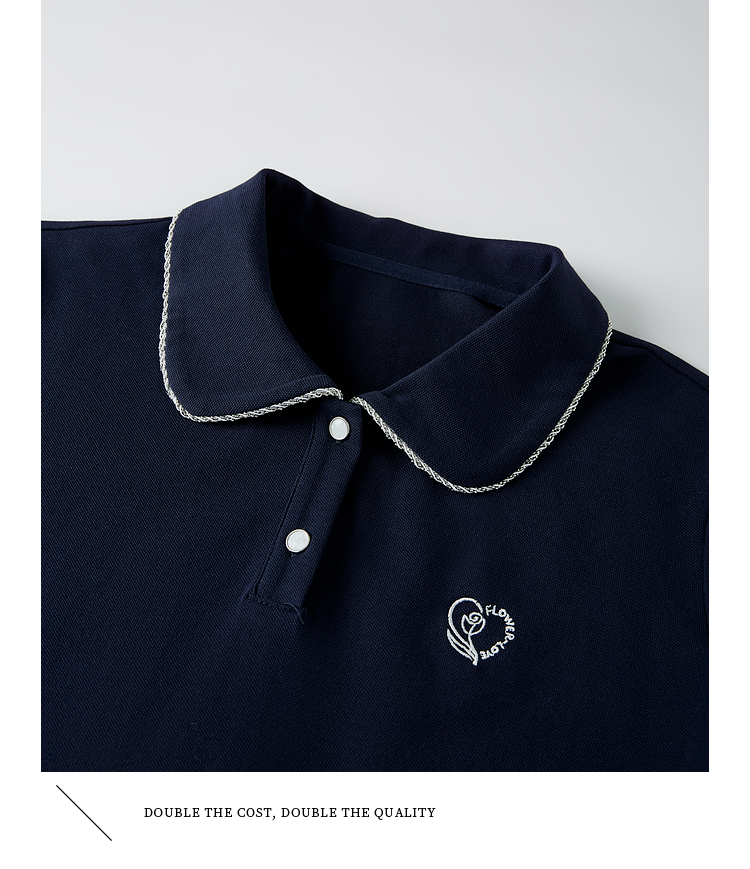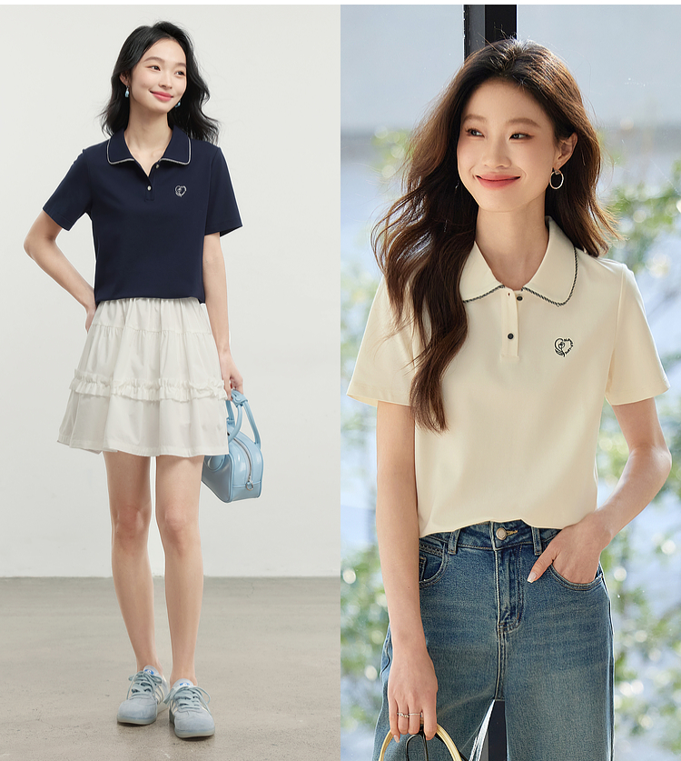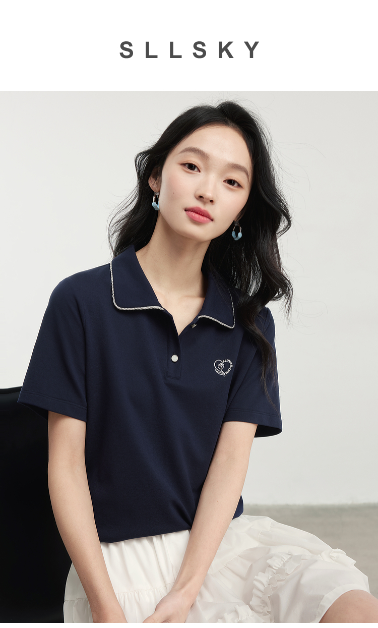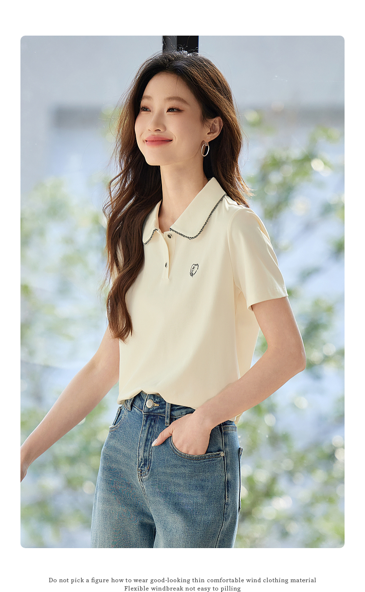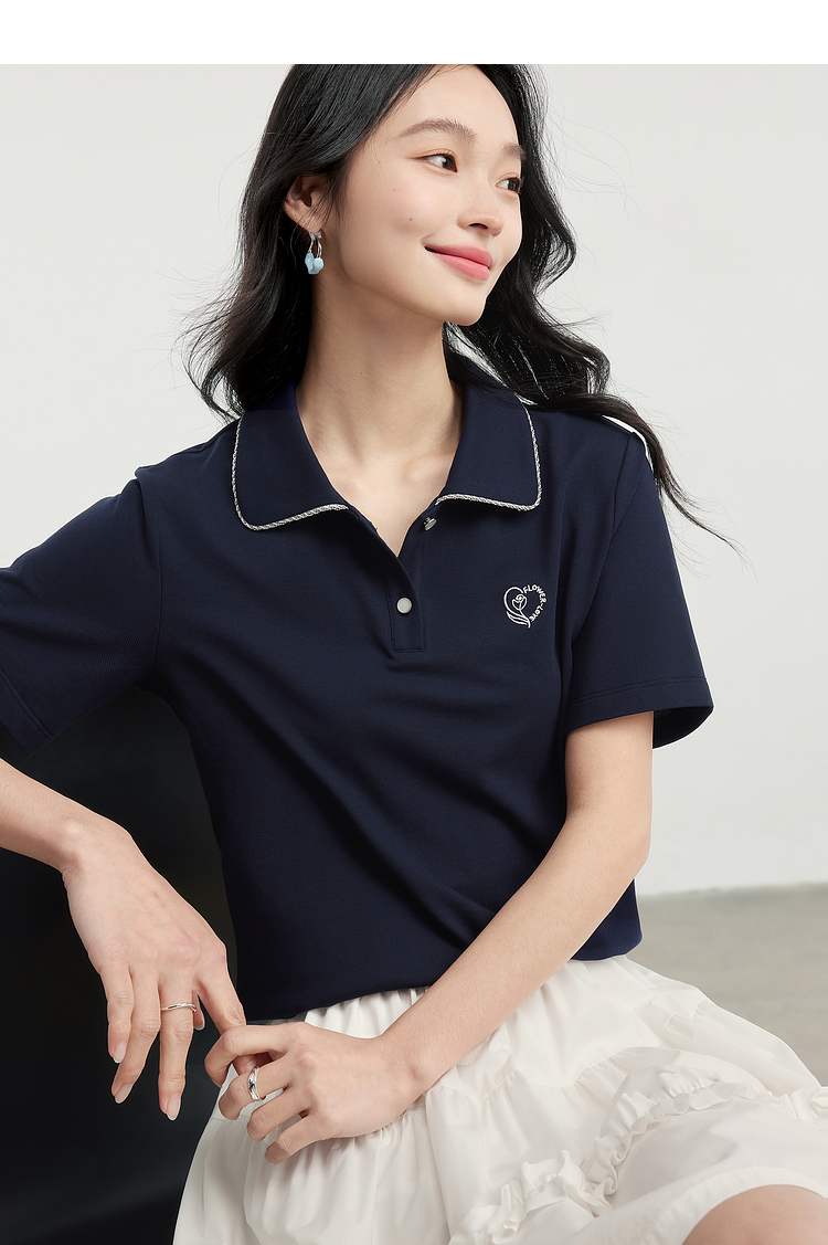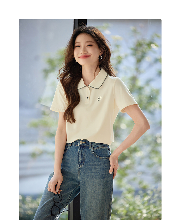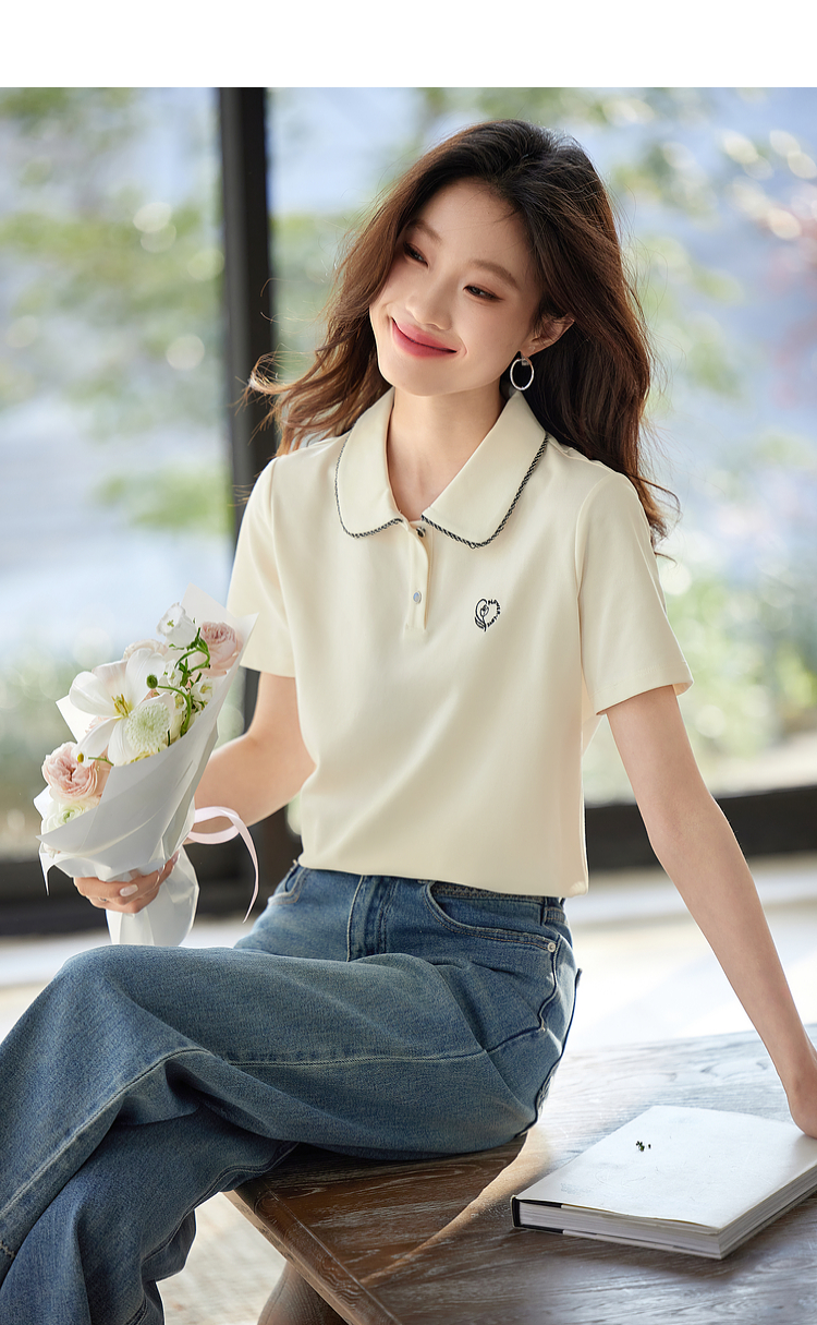 熙世界休闲通勤刺绣翻领T恤女设计感短袖Polo衫上衣2025夏季新款