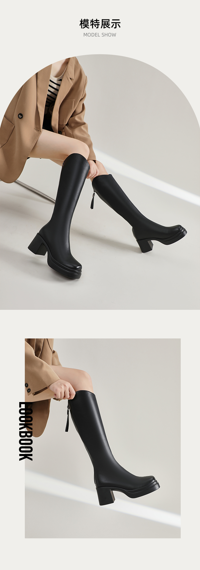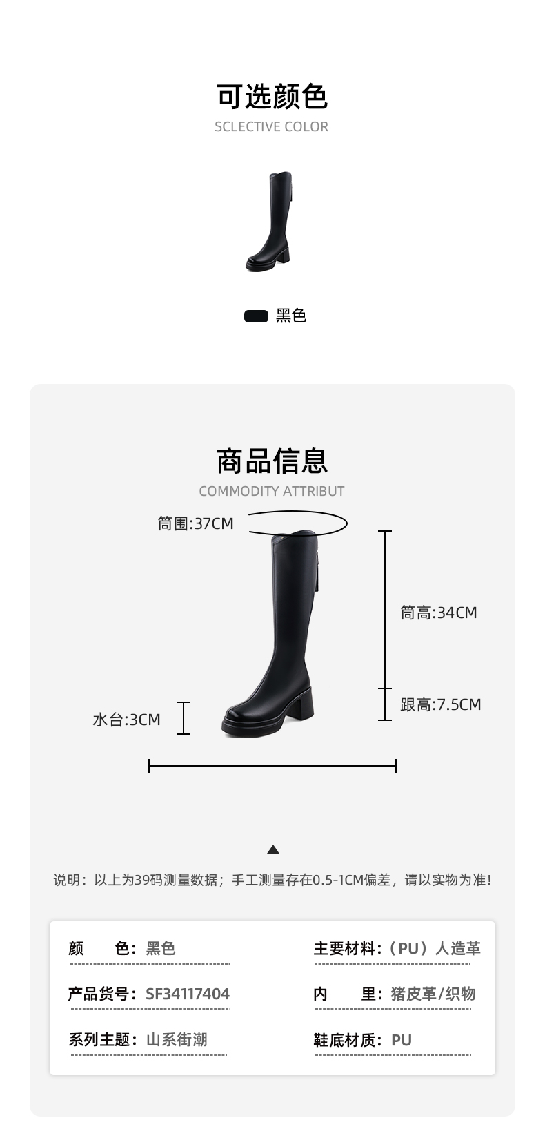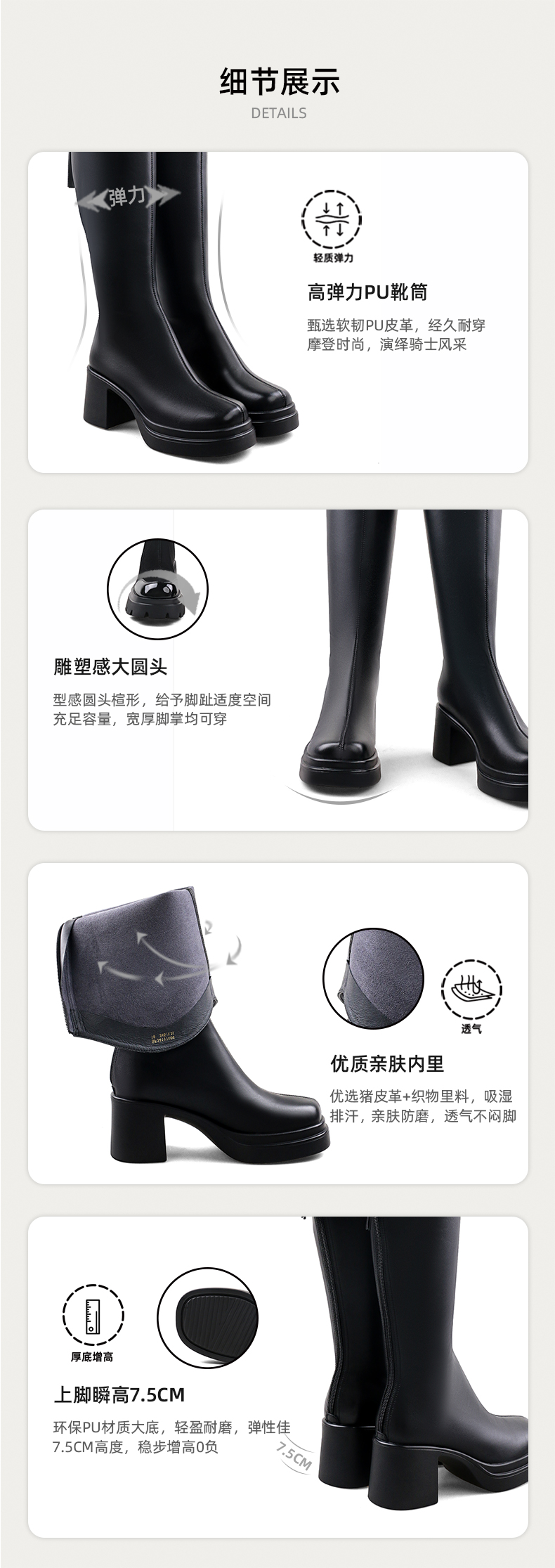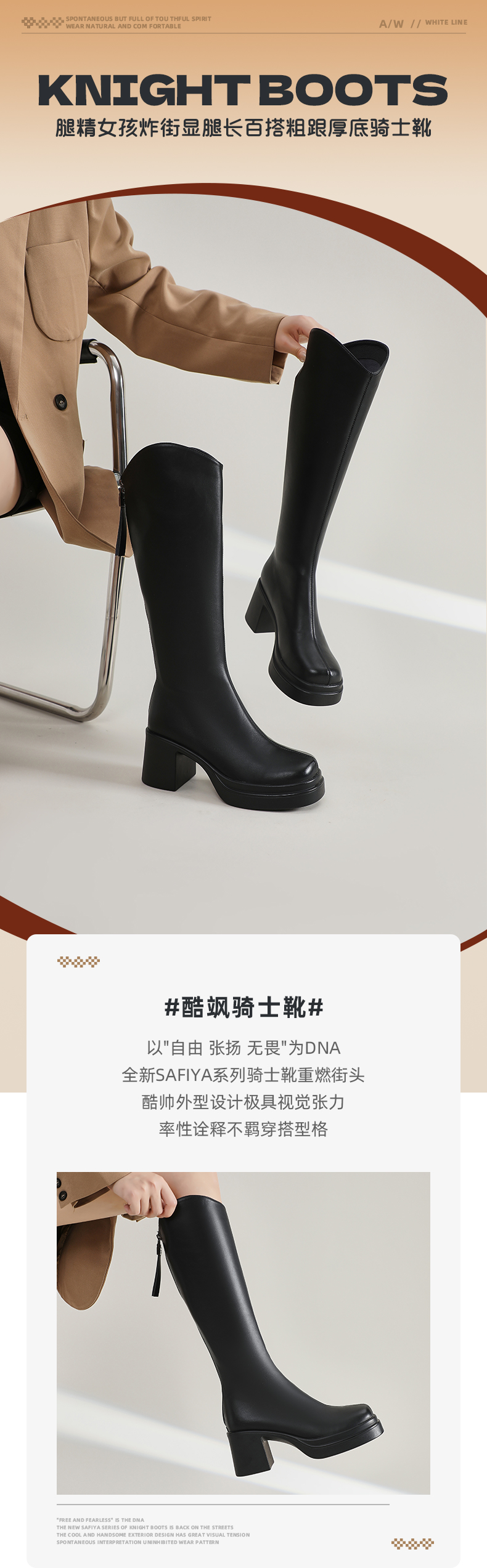 Safiya/索菲娅2023秋冬腿精女孩炸街显腿长百搭粗跟厚底骑士靴 SF34117404