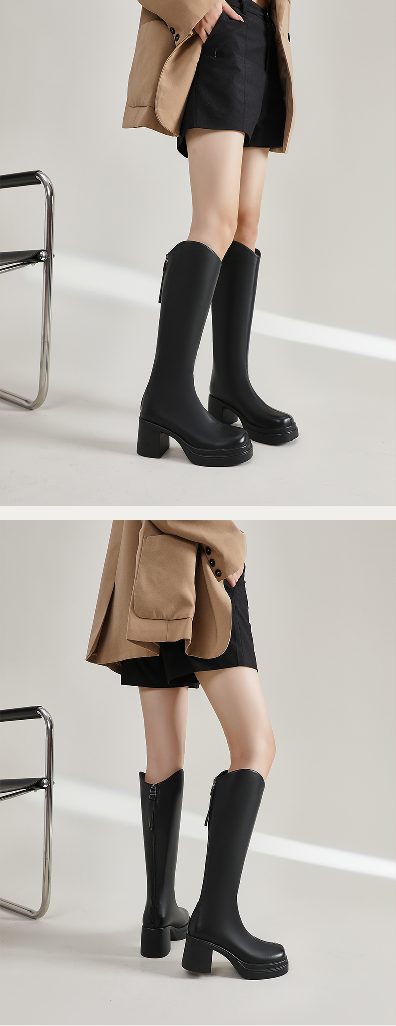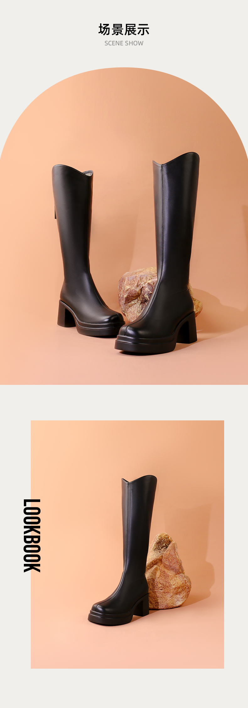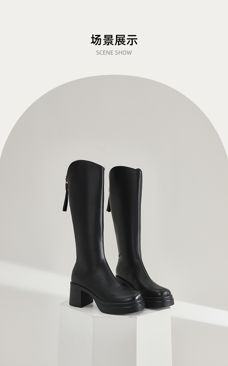 Safiya/索菲娅2023秋冬腿精女孩炸街显腿长百搭粗跟厚底骑士靴 SF34117404
