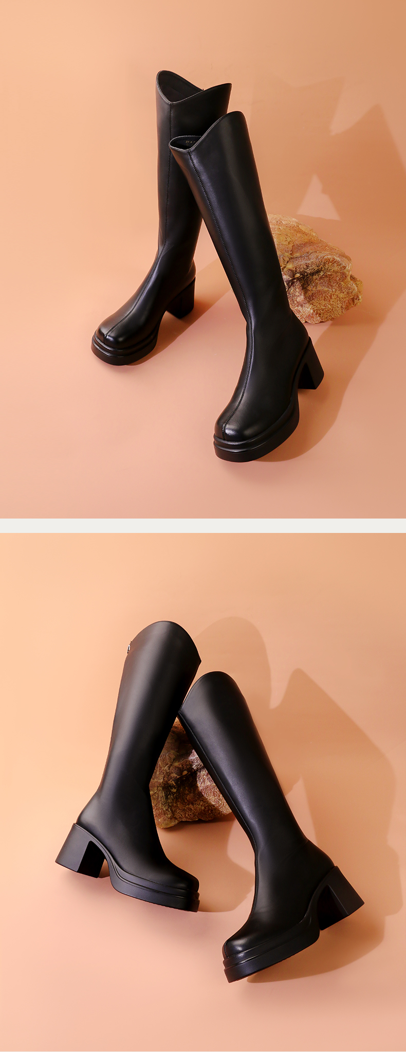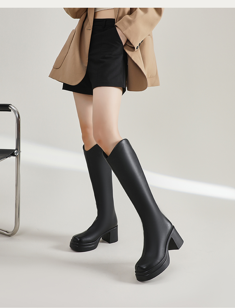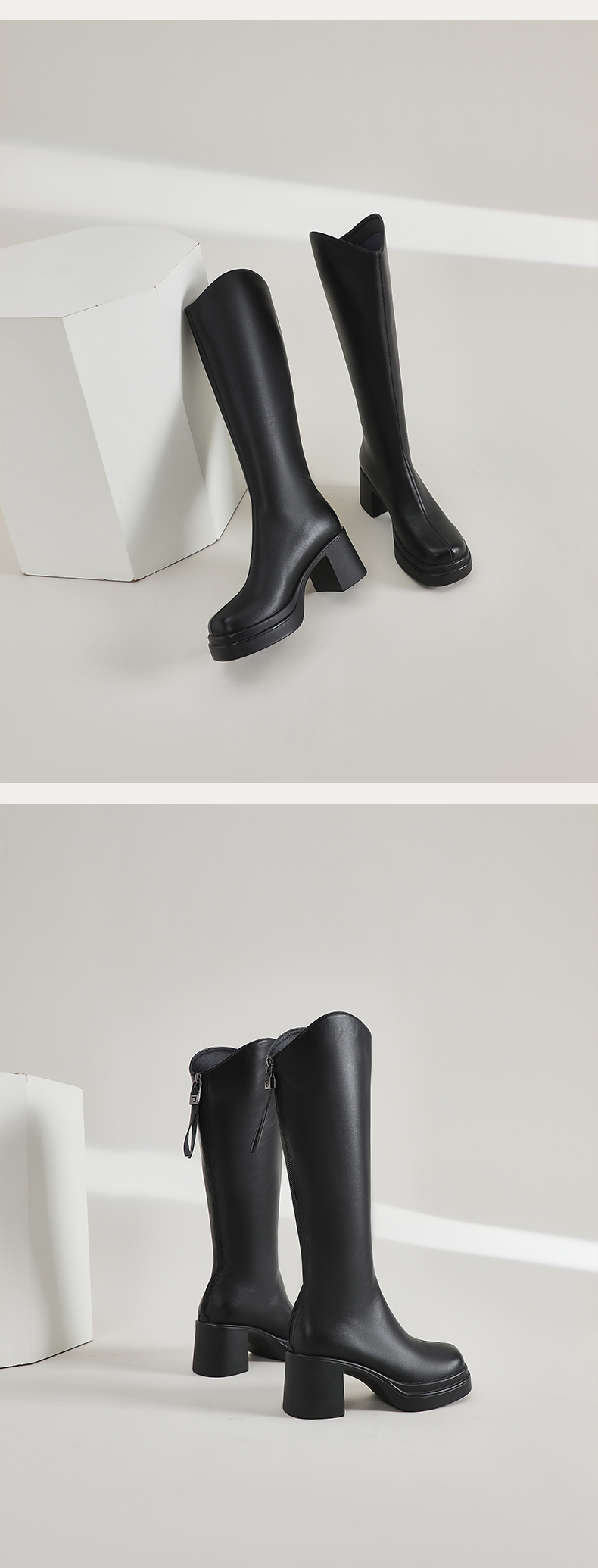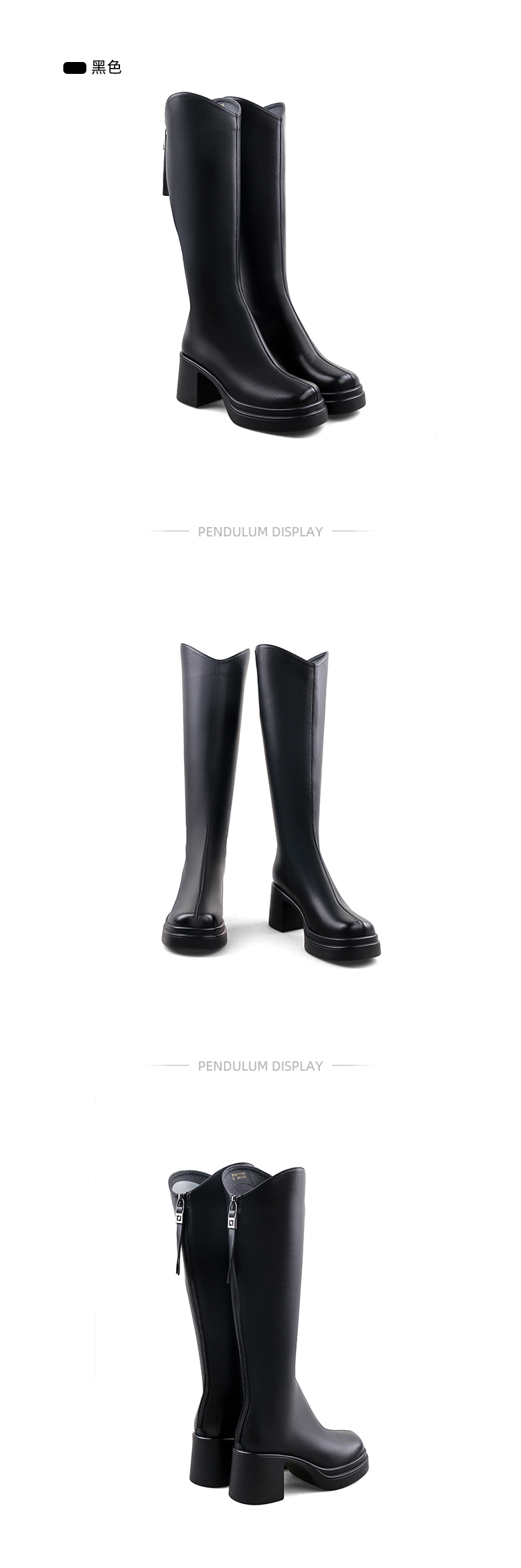 Safiya/索菲娅2023秋冬腿精女孩炸街显腿长百搭粗跟厚底骑士靴 SF34117404