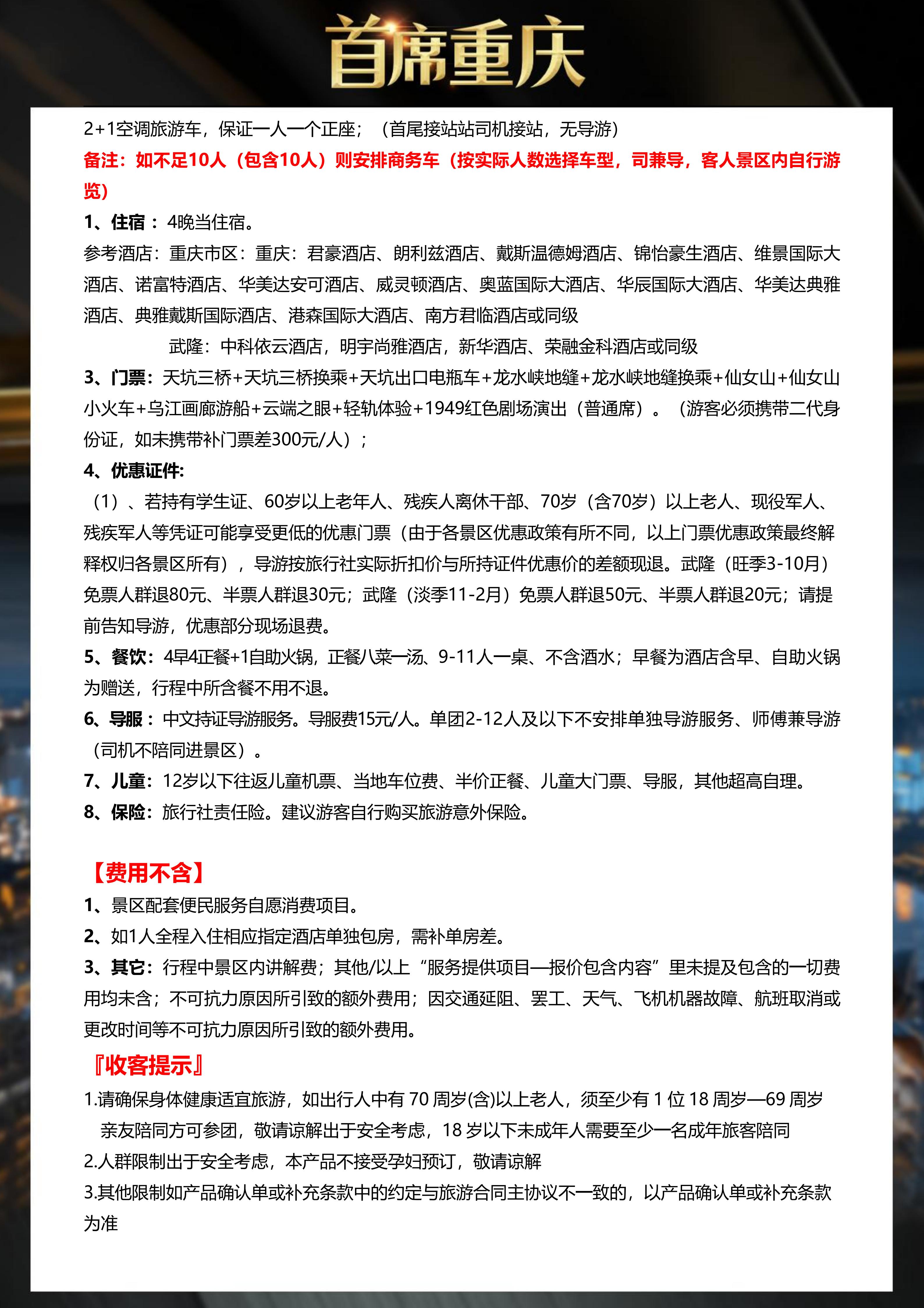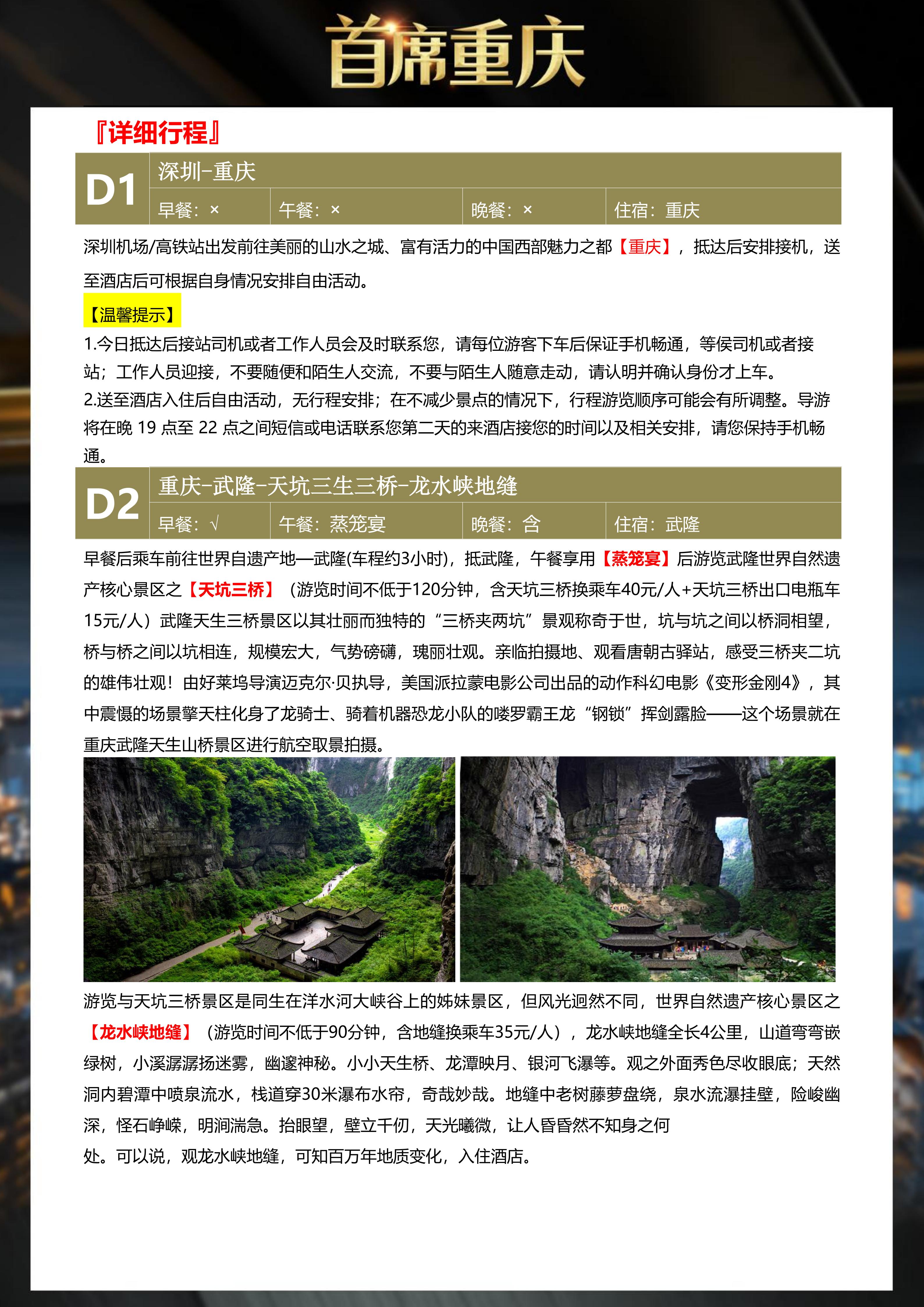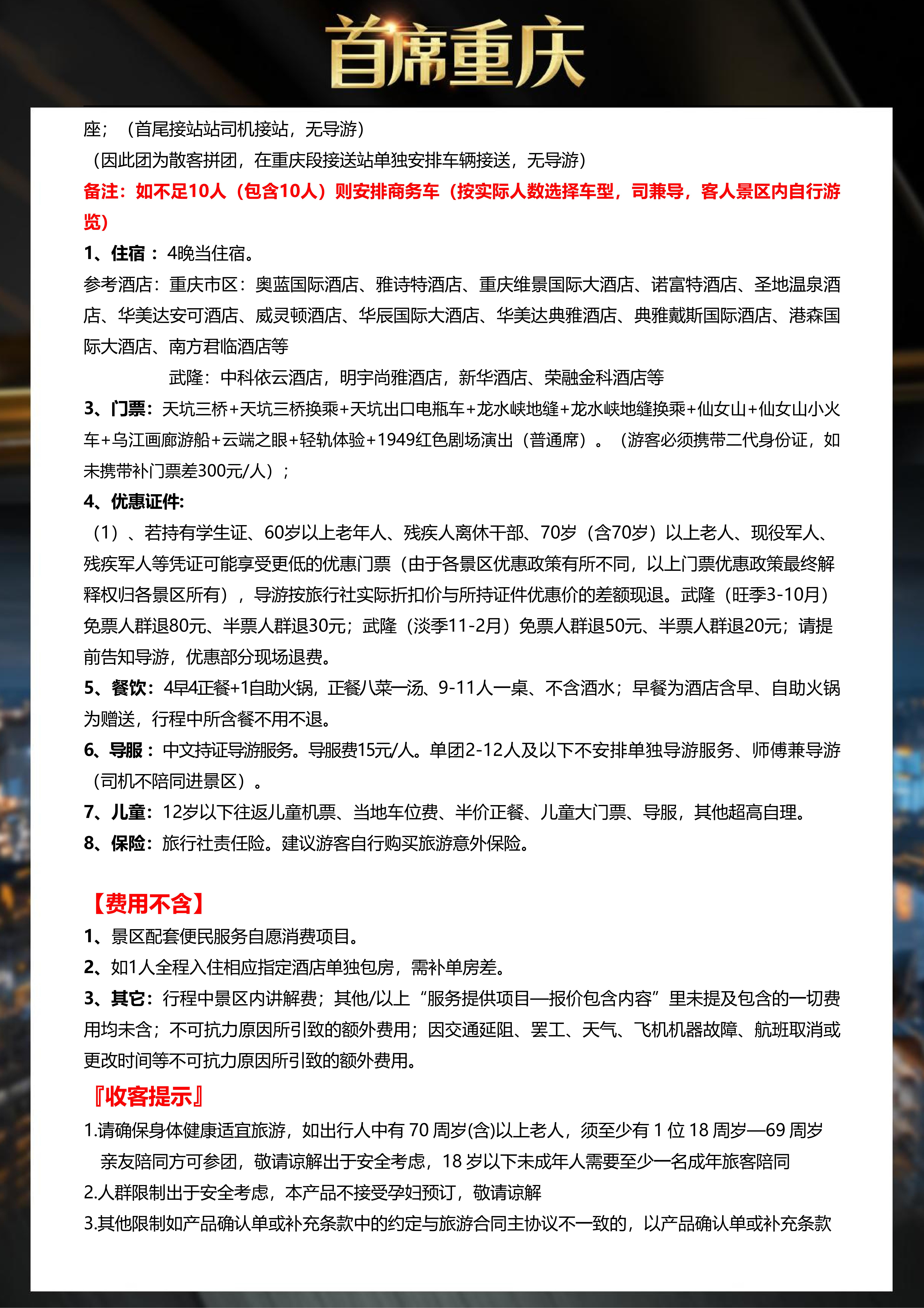 <重庆5天双飞纯玩团>武隆、天坑三桥、龙水峡地缝、仙女山、乌江画廊游船 重庆、磁器口、轻轨穿楼、洪崖洞、1949演出、重庆火锅