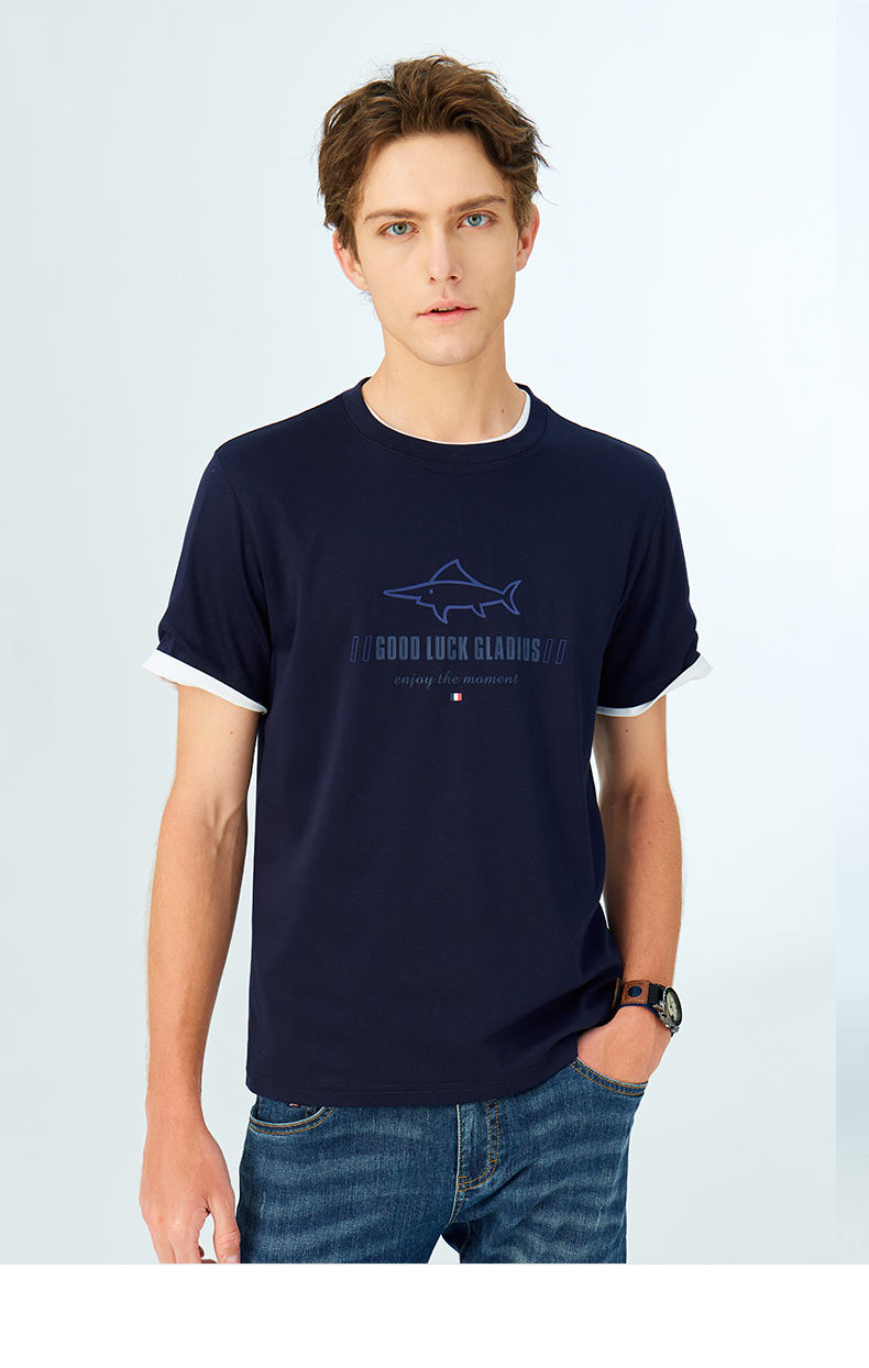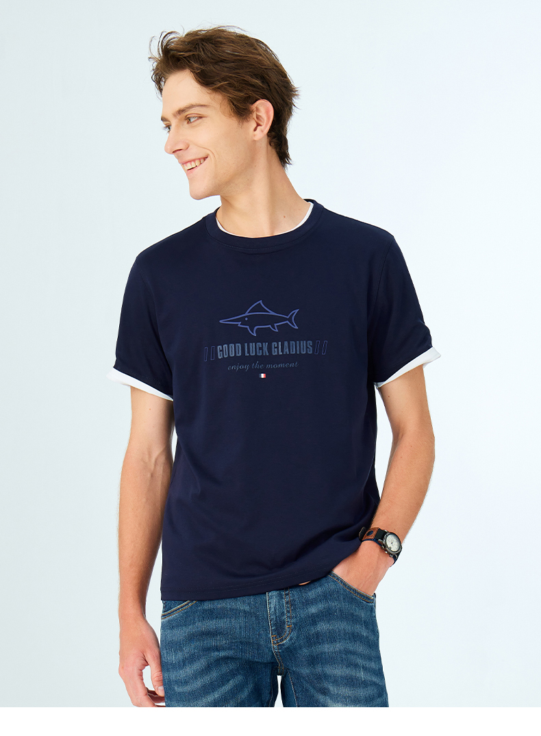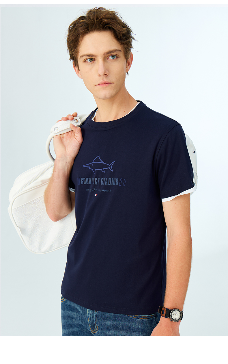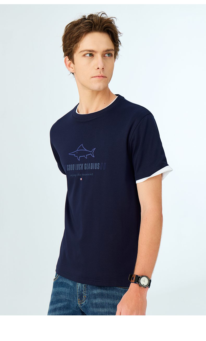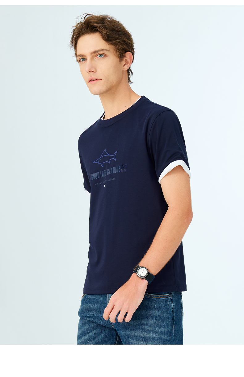 【纯棉】德鲨鲨鱼短袖圆领T恤男2025夏新款休闲上衣打底衫