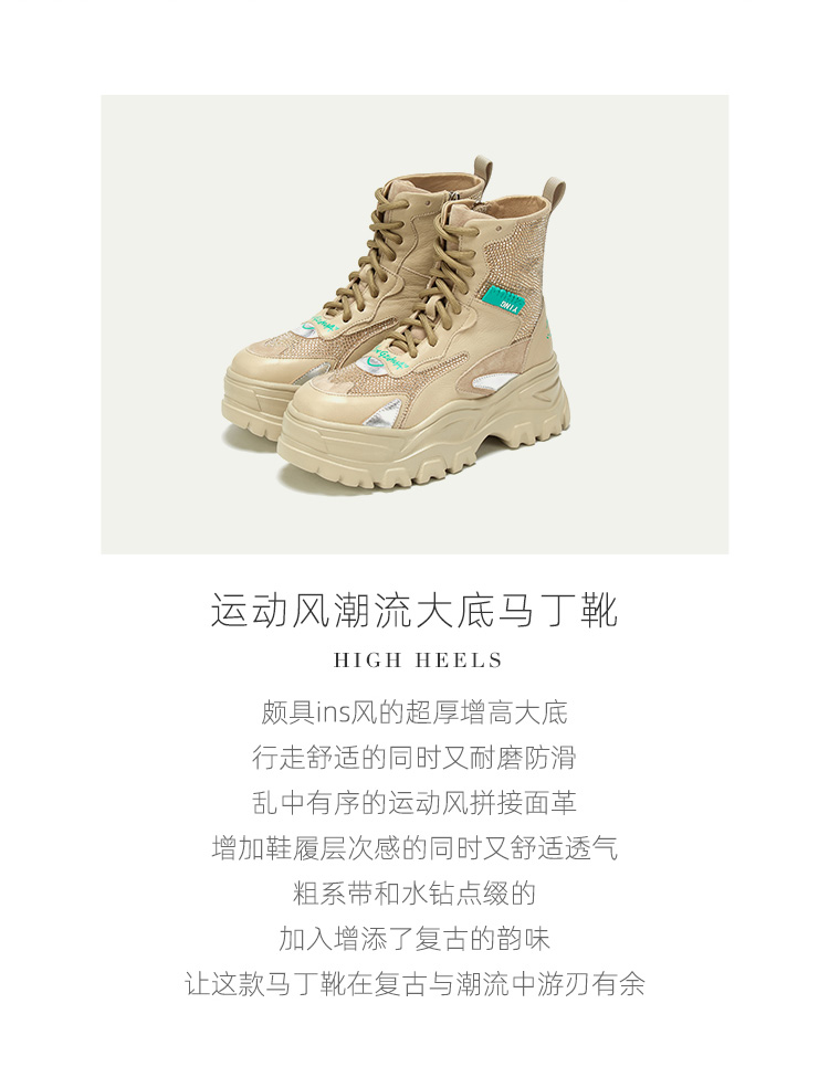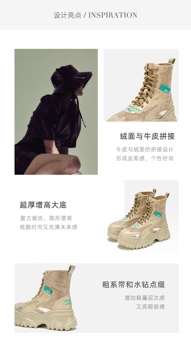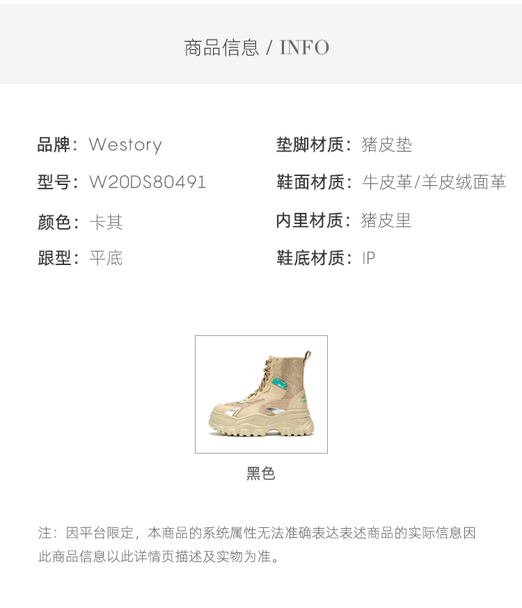 westory商场同款马丁靴女2020新款冬季英伦风短靴厚底内增高潮W20DS80491