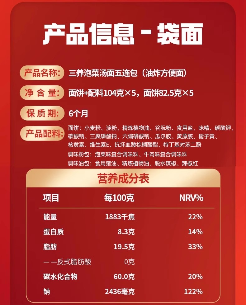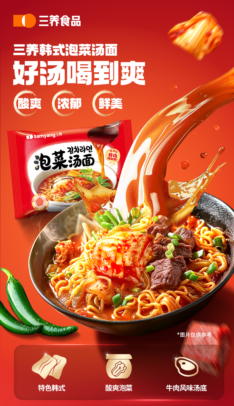 三养 韩式泡菜汤面104g*5 酸爽浓郁 地道风味 煮泡皆可 48小时发货