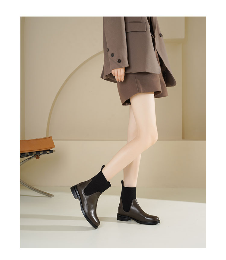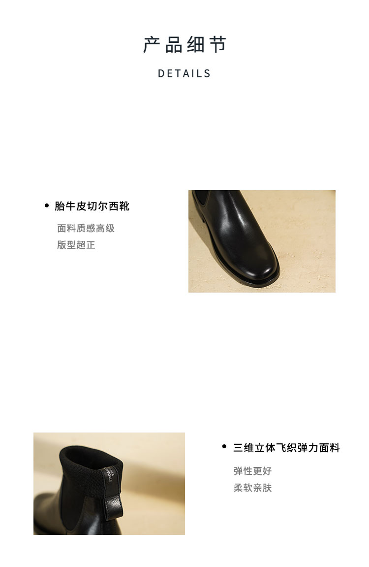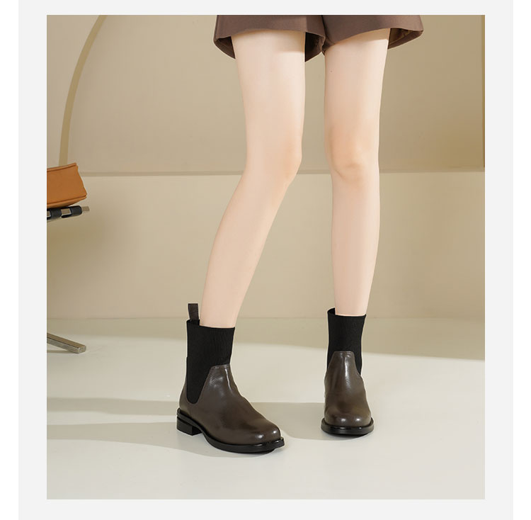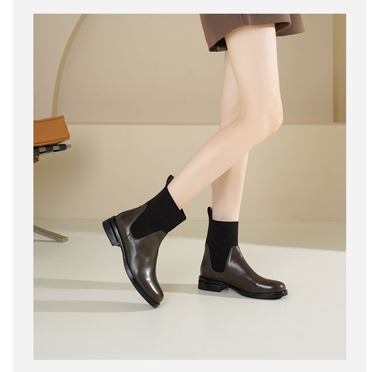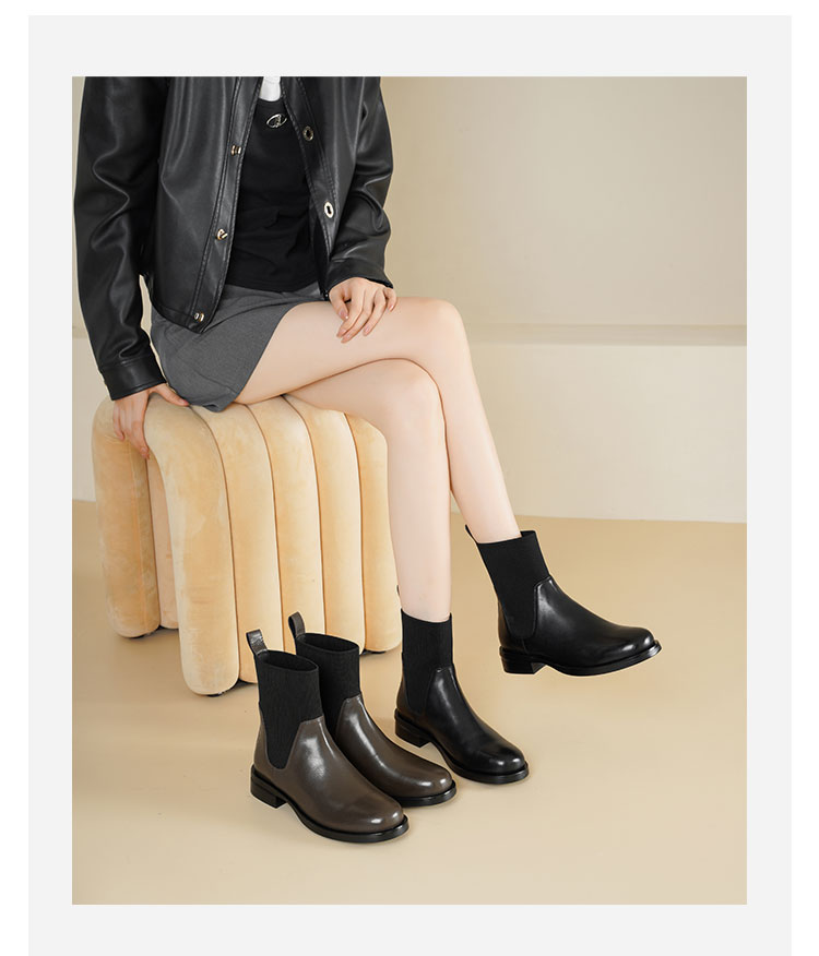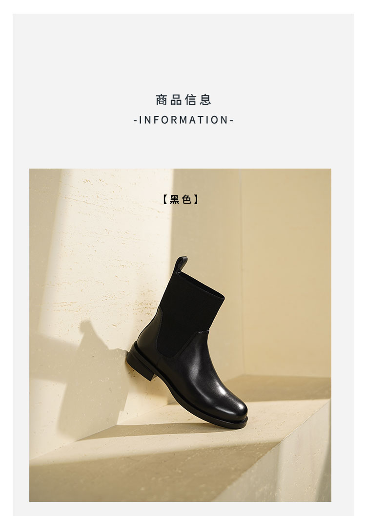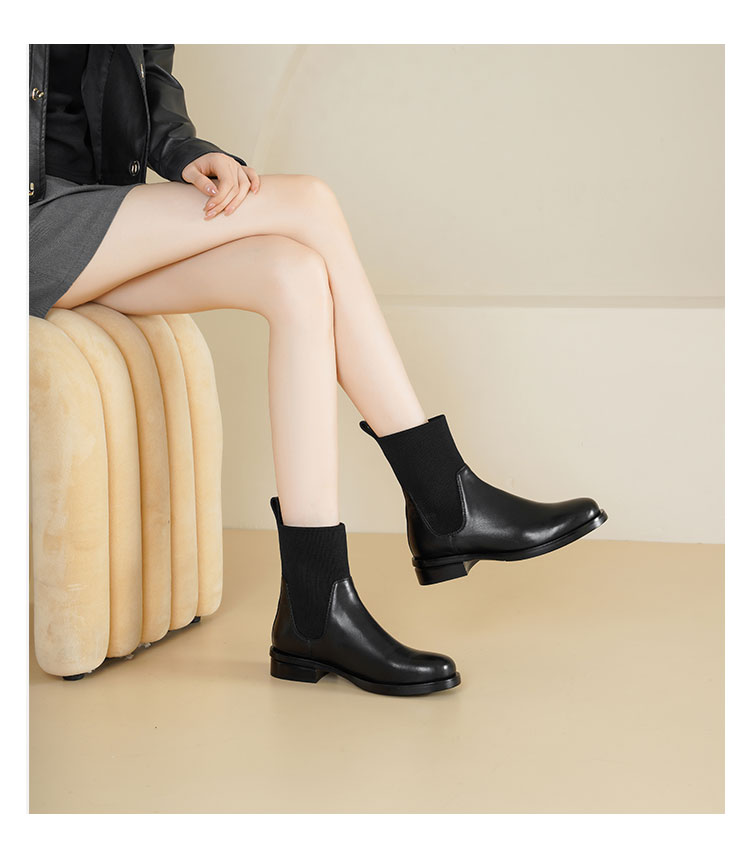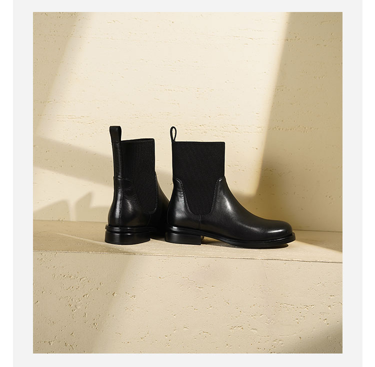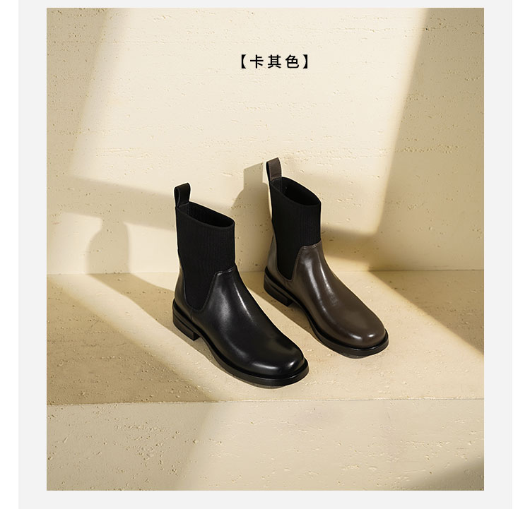 Westory2025年冬季方头平跟收腿切尔西靴休闲百搭弹力短靴S25DS85761