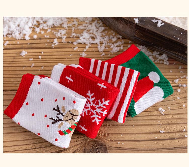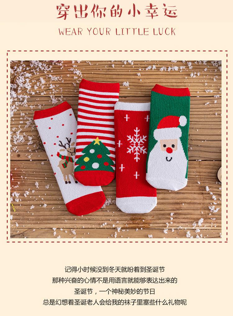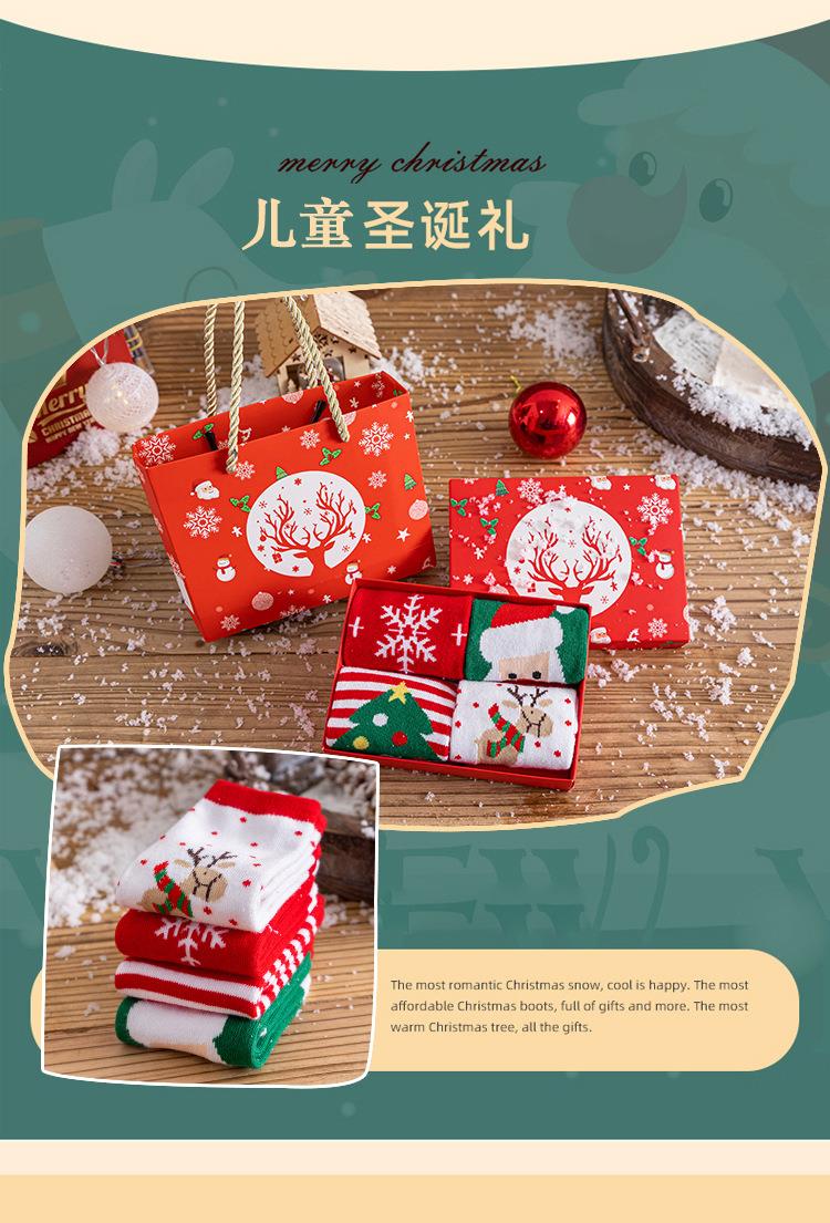 Merry Christmas 【秋冬礼盒圣诞袜4双装】儿童袜子圣诞节礼物新年圣诞袜子礼盒中筒秋冬小学生小孩盒装棉袜