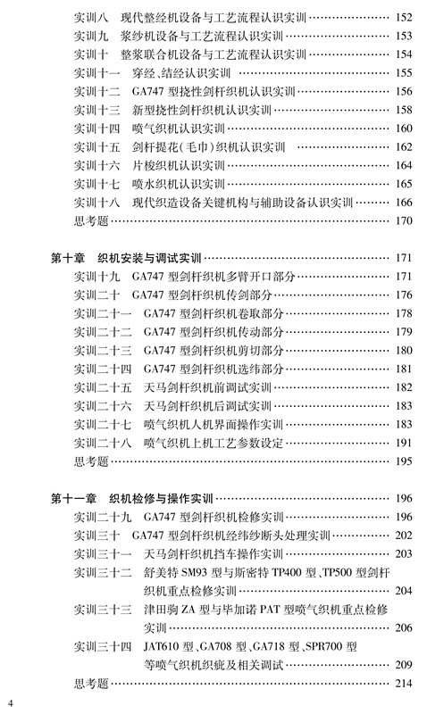 本书供纺织高职高专院校在实验、实训、实习教学中使用,也可供纺织企业的试验、工艺设计、生产管理、设备维护等工程技术人员和管理人员参考。