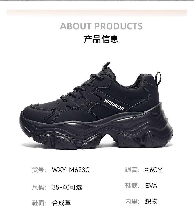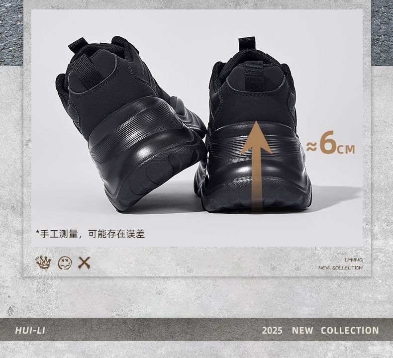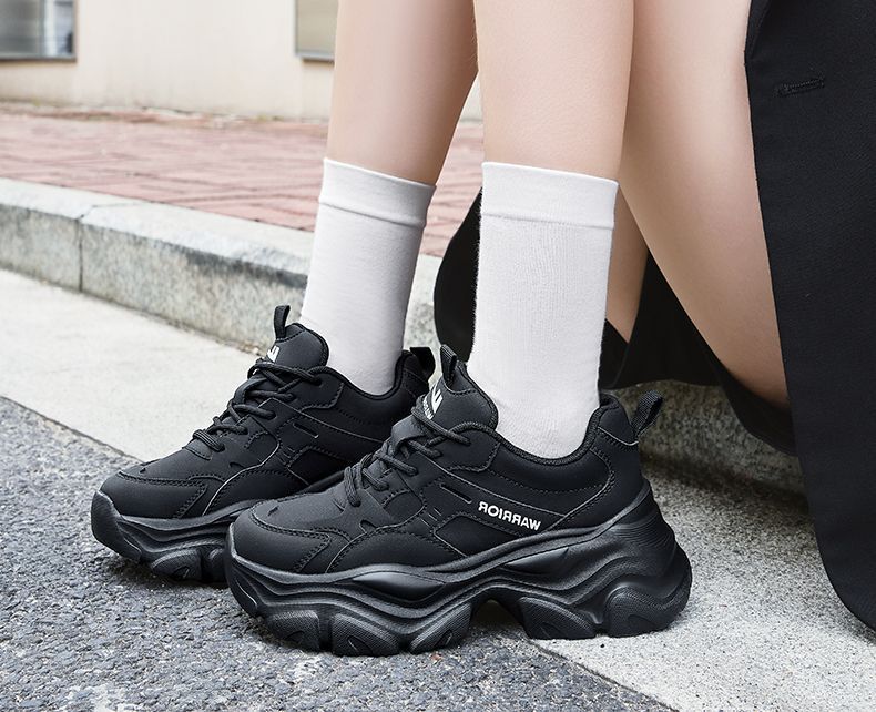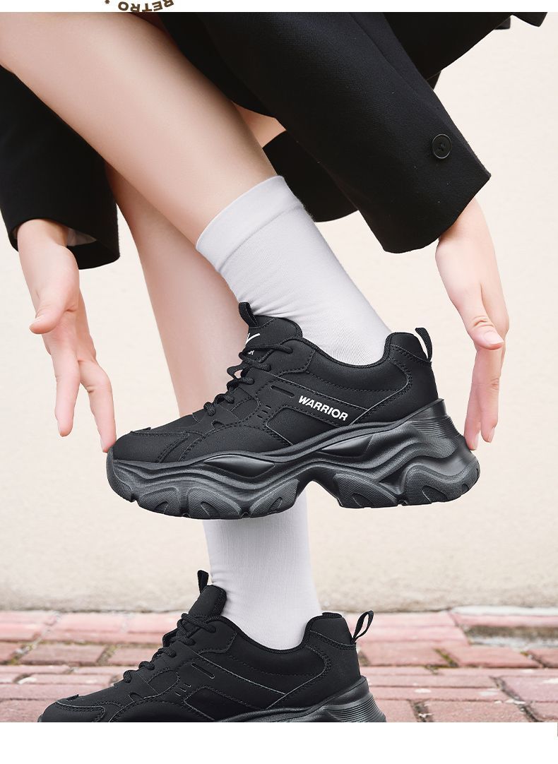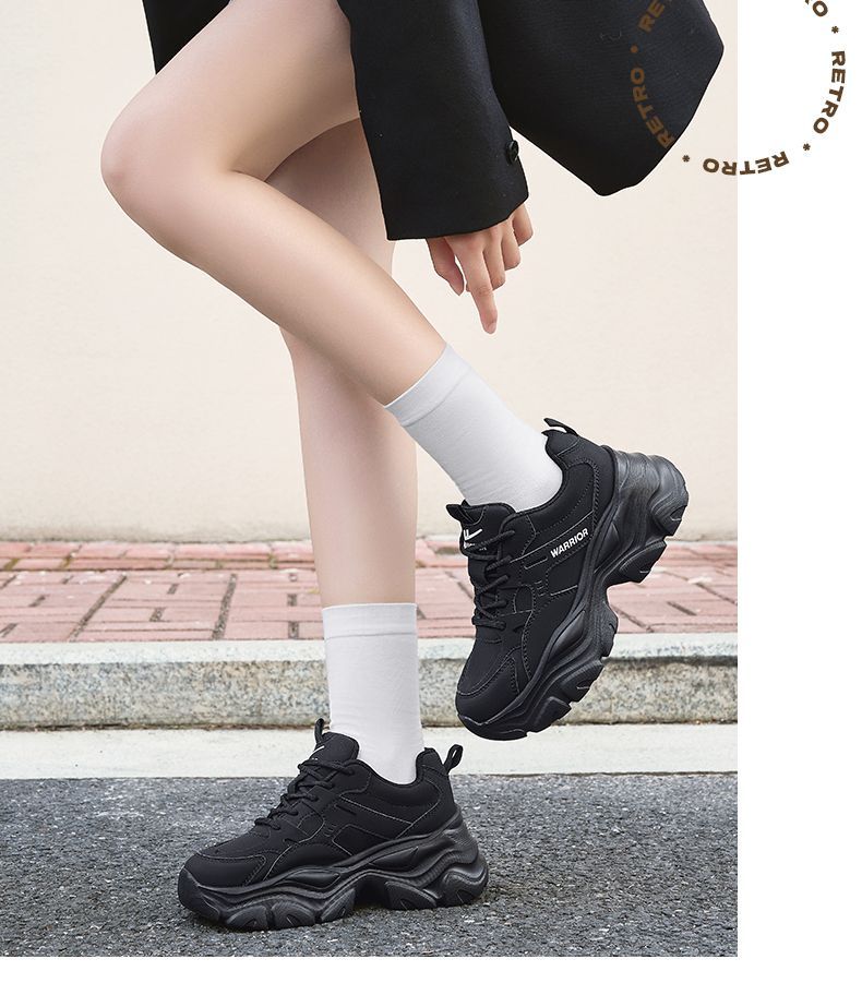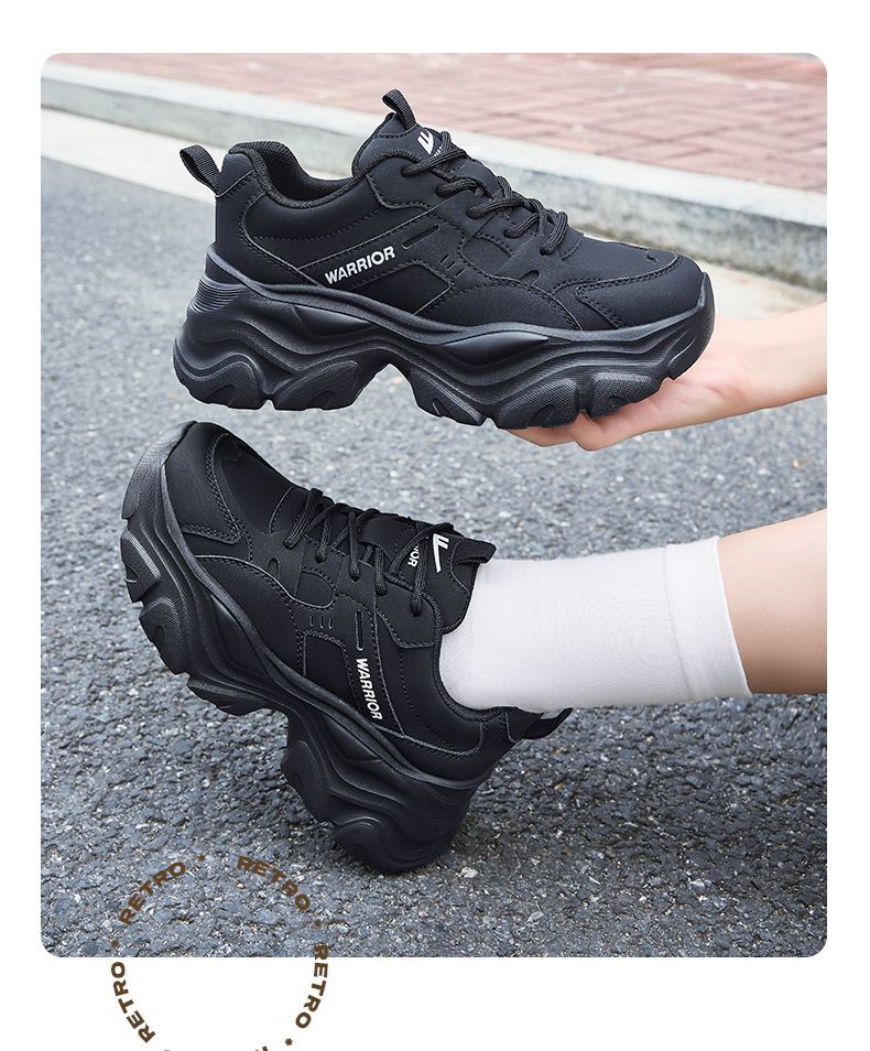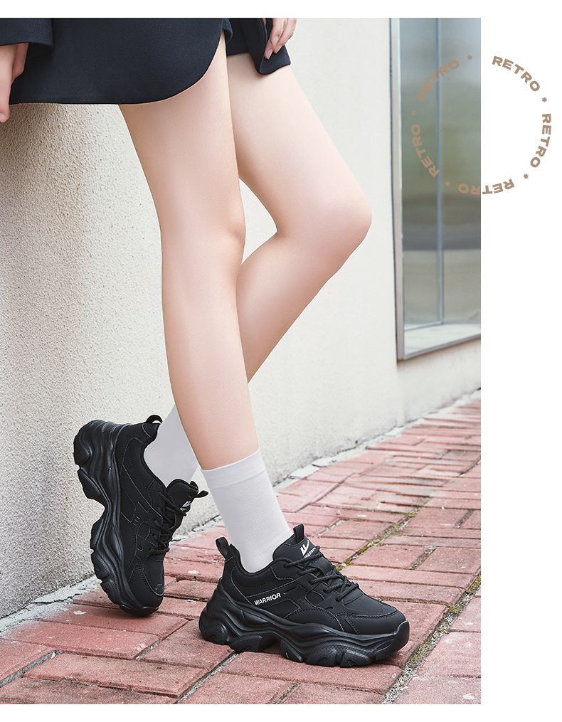 回力女鞋黑色老爹鞋2025秋冬新款厚底运动鞋小个子增高百搭休闲鞋